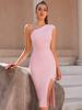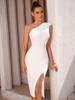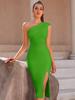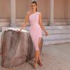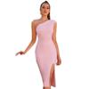 Amazon Comercio Exterior Vestido Nuevo Moda Simple Sexy Falda Vendaje Hombro Inclinado Ajustado Abertura Vestido de Fiesta