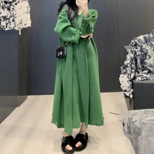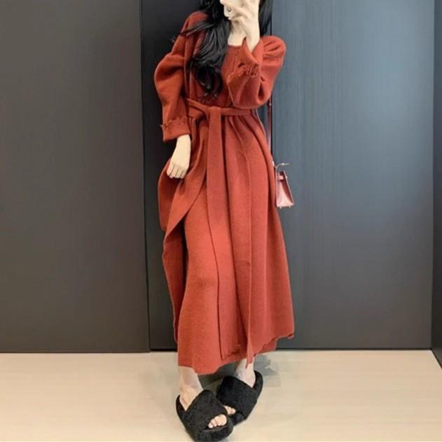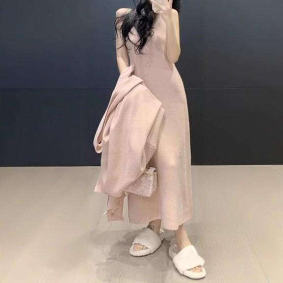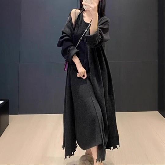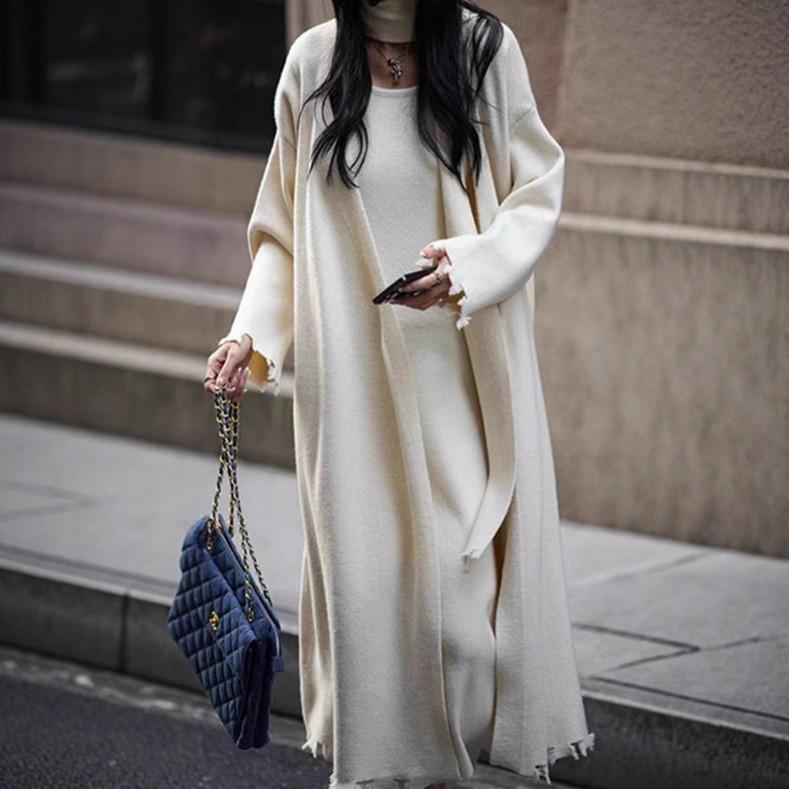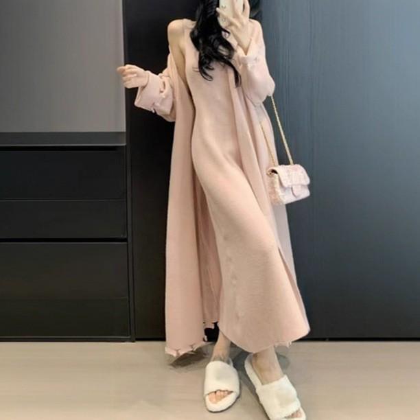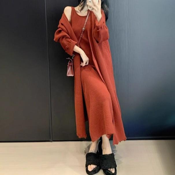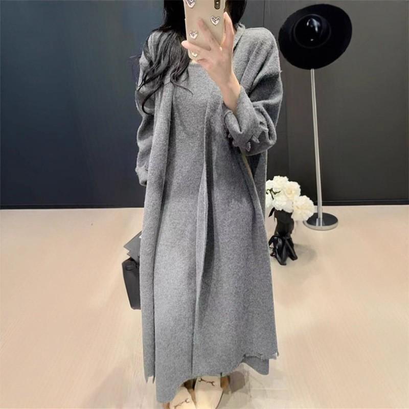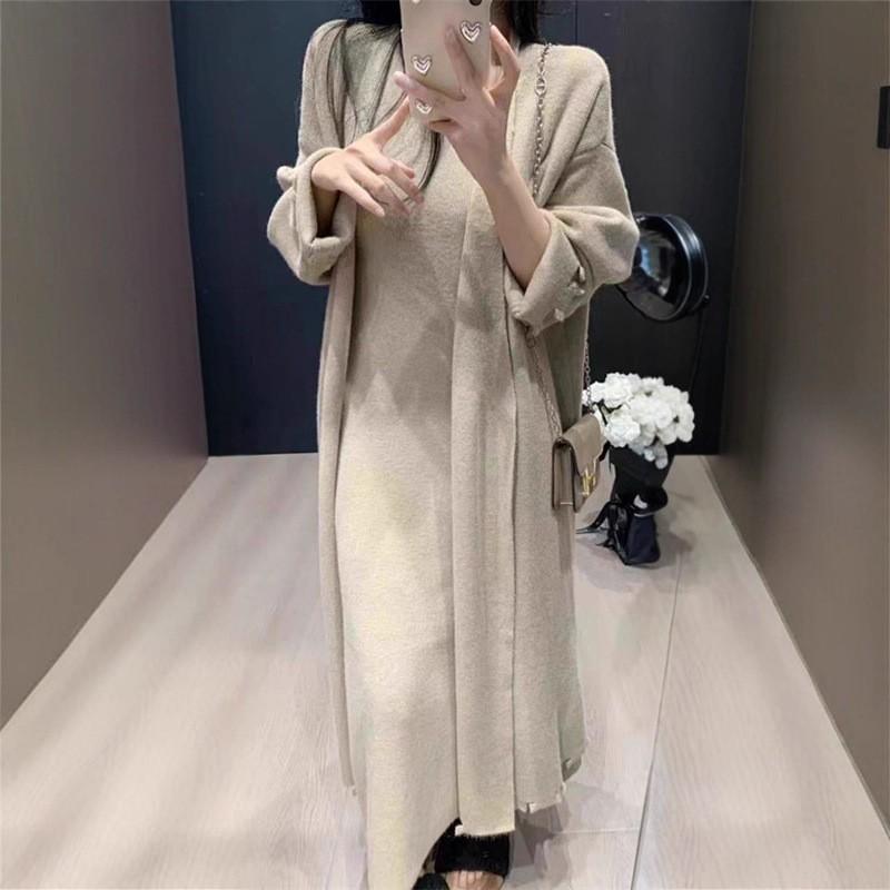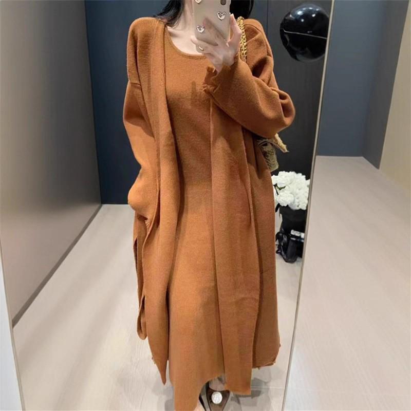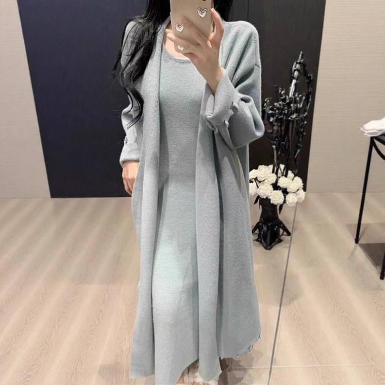 2025 Nuevo Estilo Transfronterizo Comercio Exterior Color Sólido Moda Cárdigan Vestido Ajustado Cárdigan Abrigo Conjunto de Dos Piezas Conjunto de Suéter