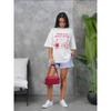 Camiseta de Manga Corta de Algodón 100% Estilo Casual Retro Americano Estilo Ins Estampada Verano 2025 Nuevo Estilo Ropa de Trabajo Top