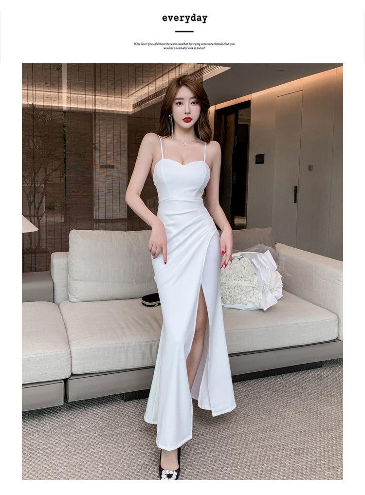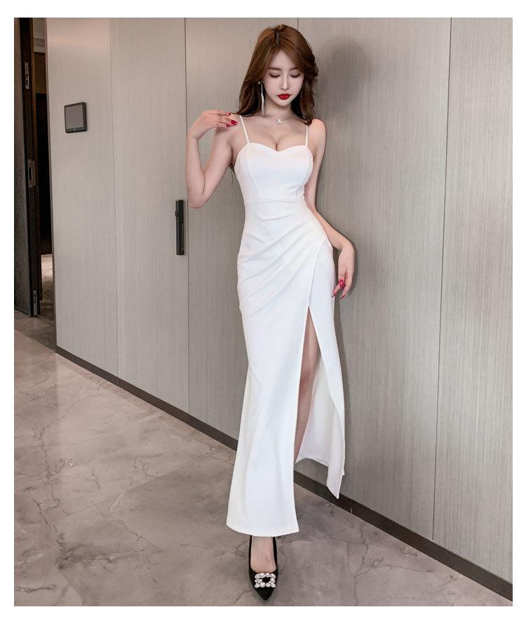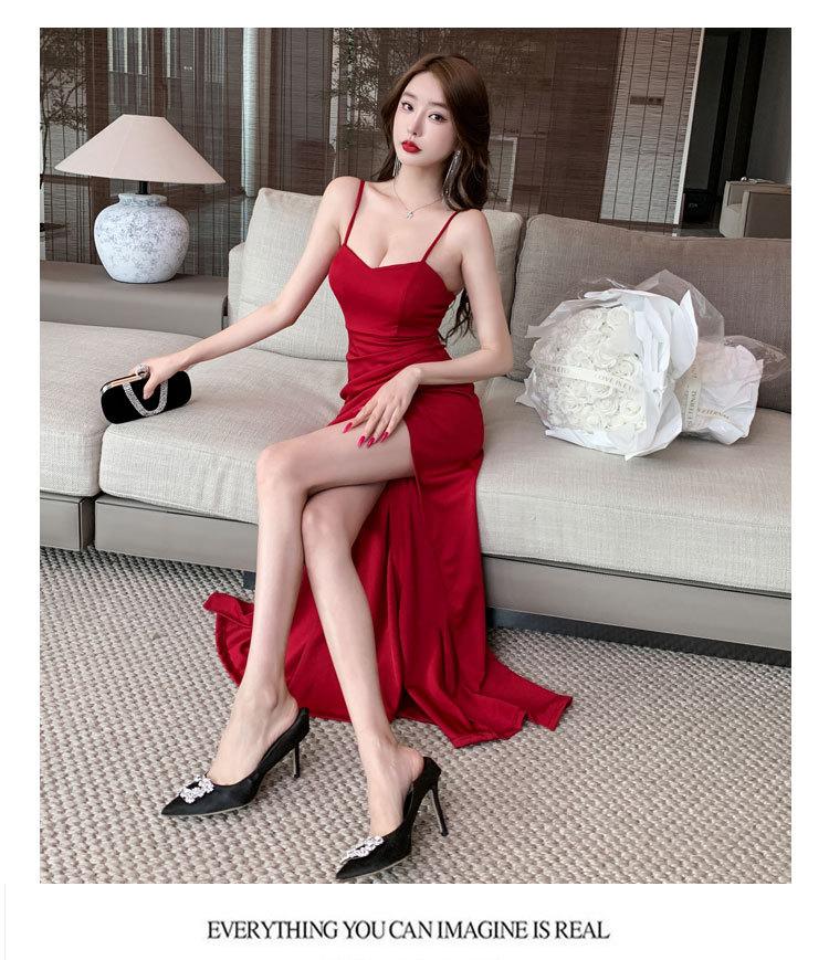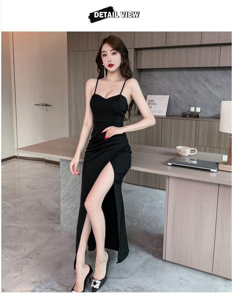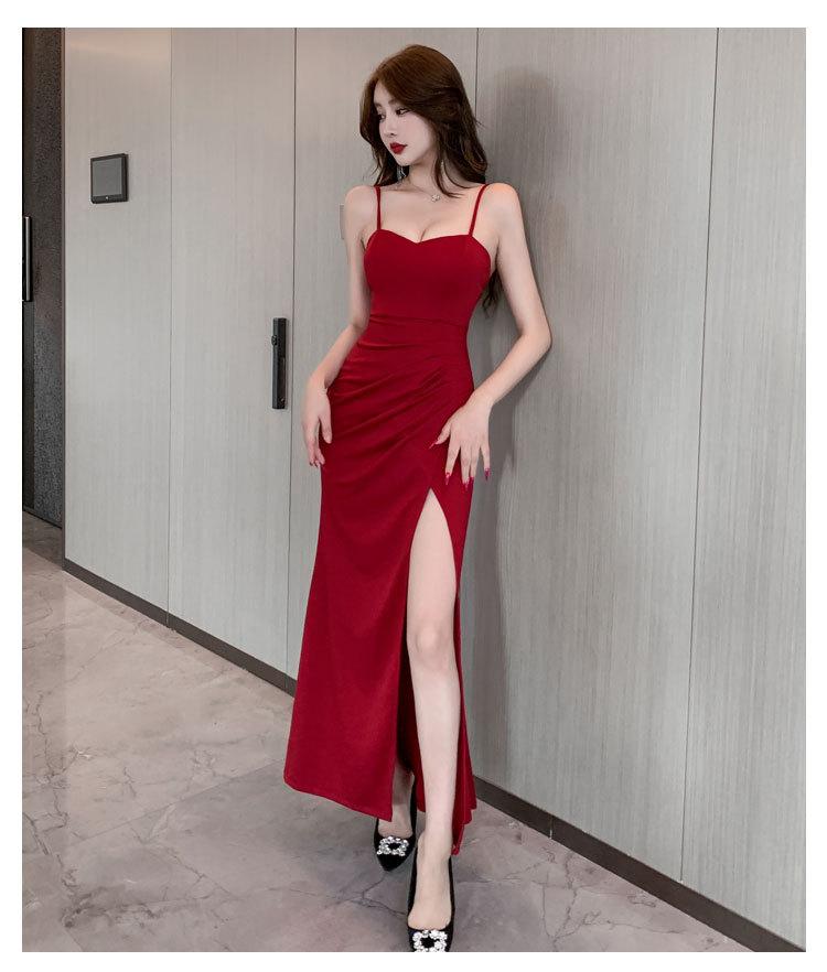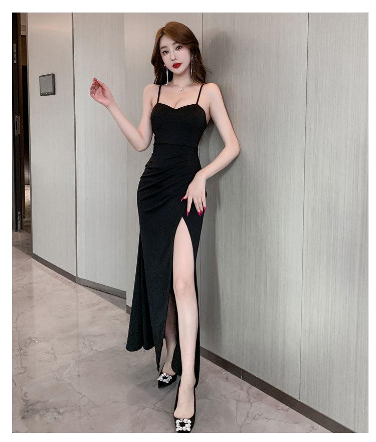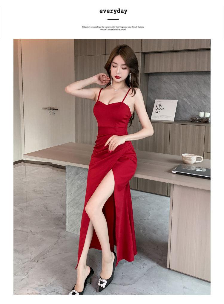 Vestido Largo de Fiesta con Tirantes, Abertura Alta, Adelgazante, Escote Bajo, Vestido de Noche, Ropa de Trabajo, Vestido Sexy, Ropa de Trabajo para Discoteca