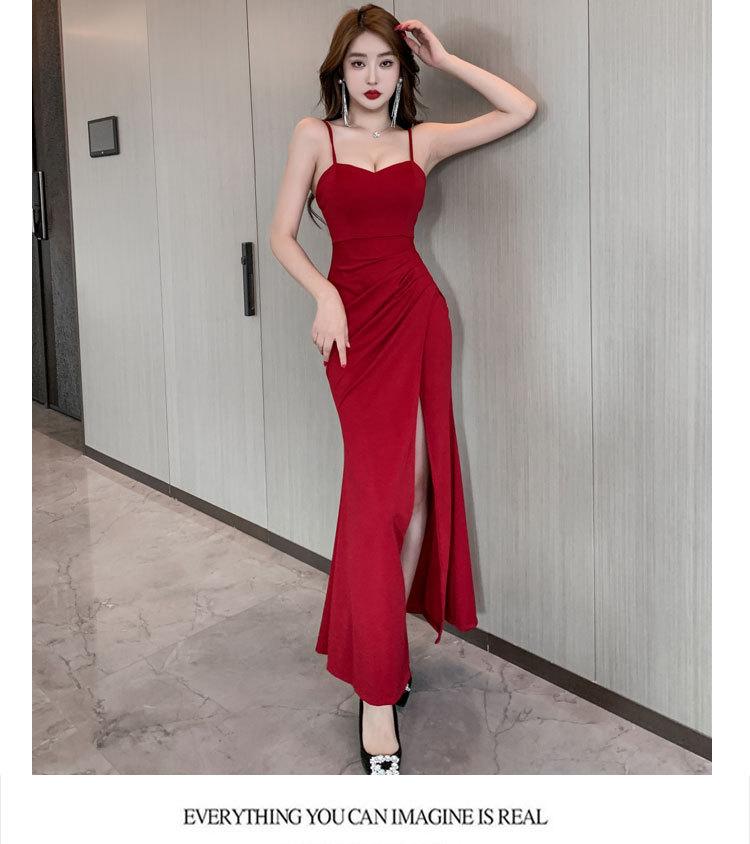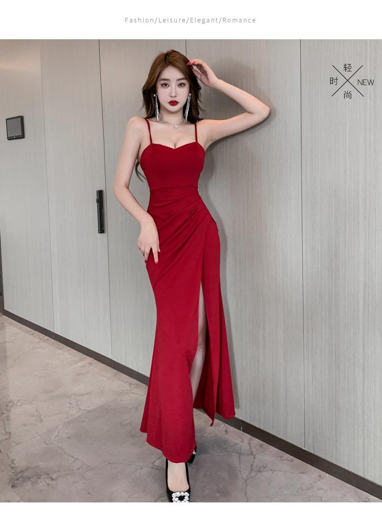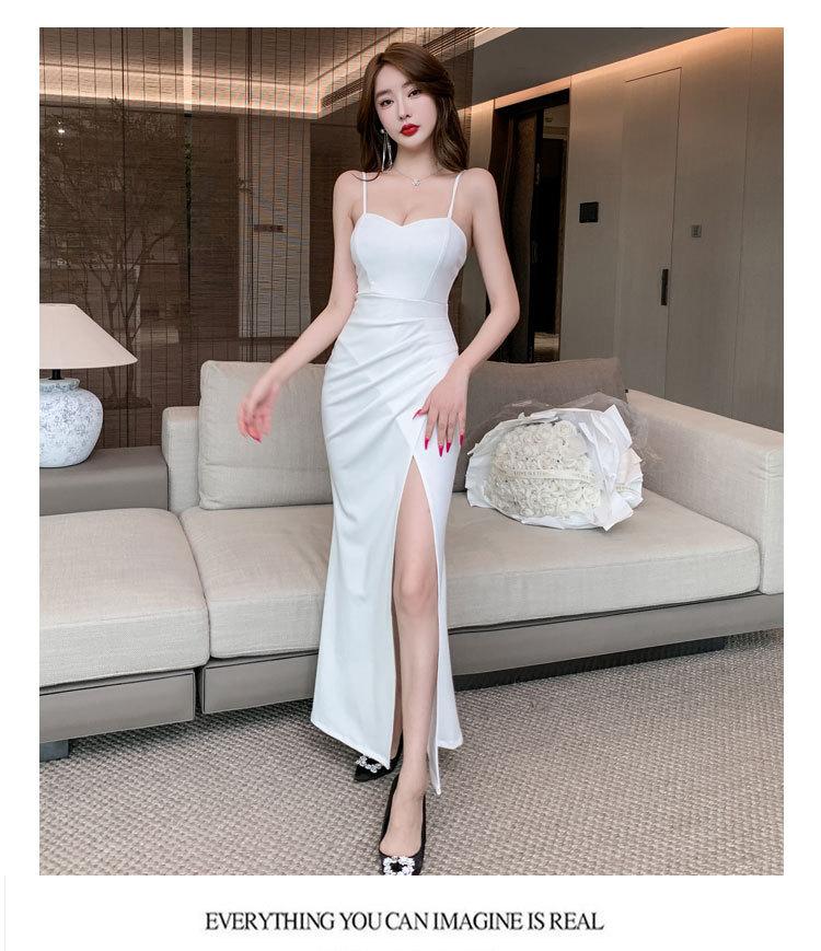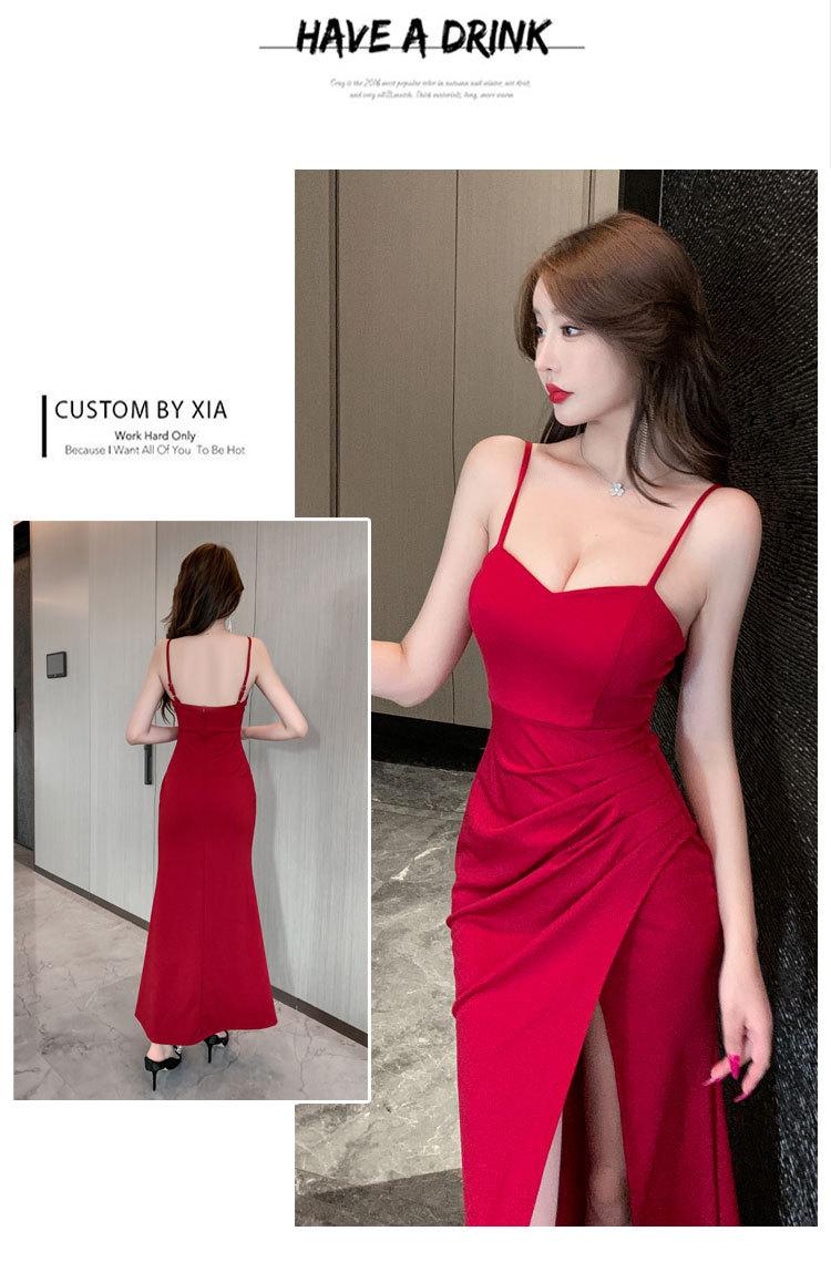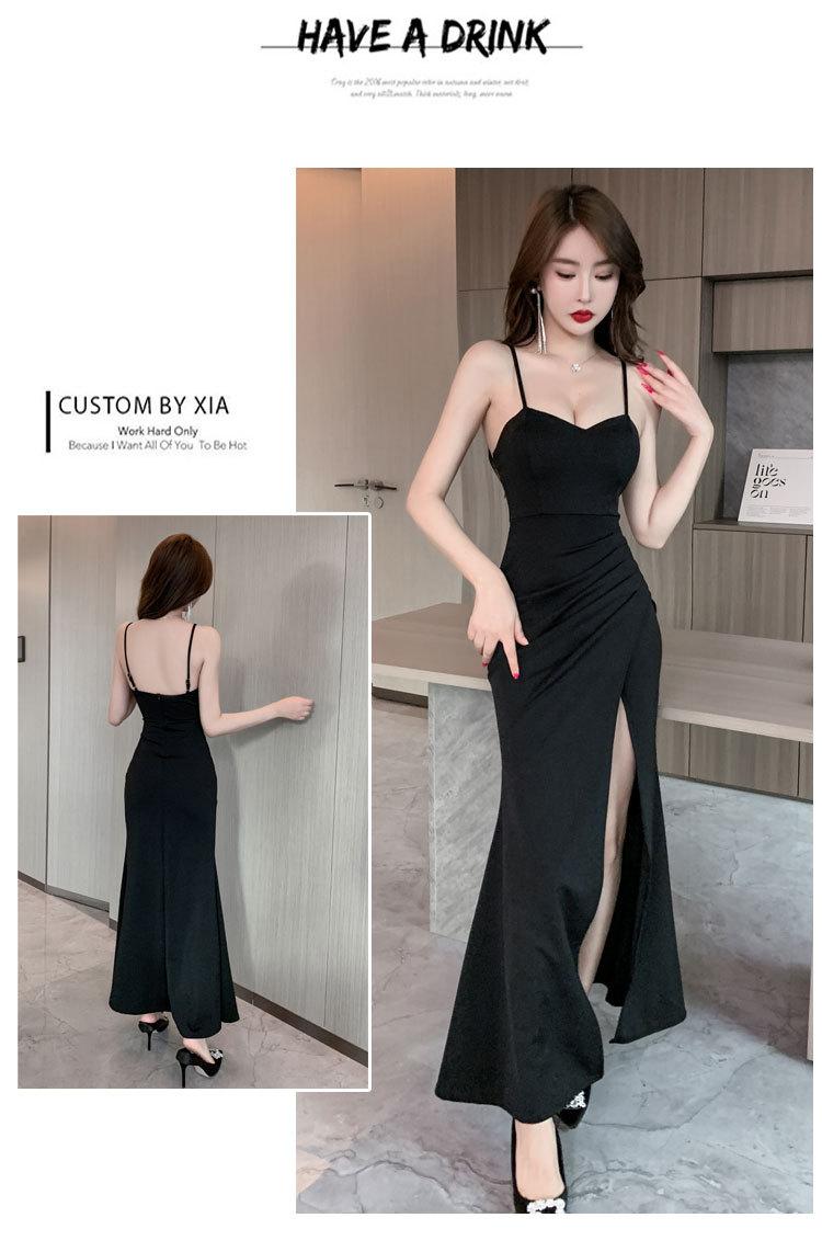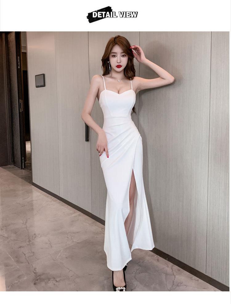 Vestido Largo de Fiesta con Tirantes, Abertura Alta, Adelgazante, Escote Bajo, Vestido de Noche, Ropa de Trabajo, Vestido Sexy, Ropa de Trabajo para Discoteca