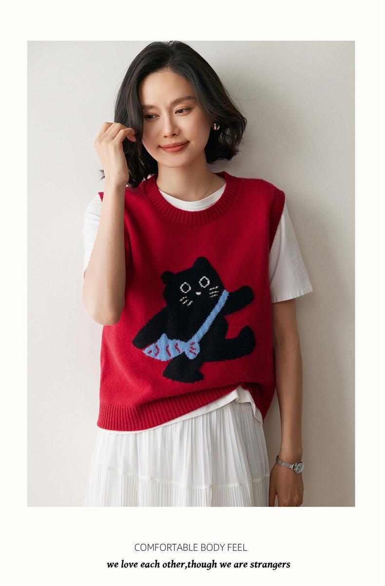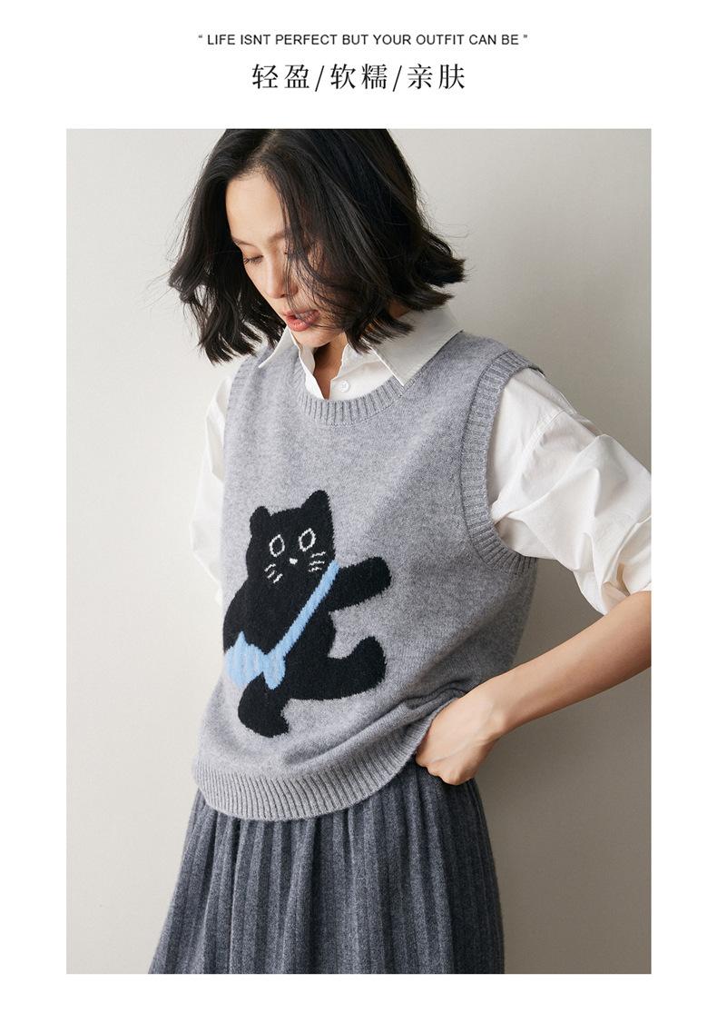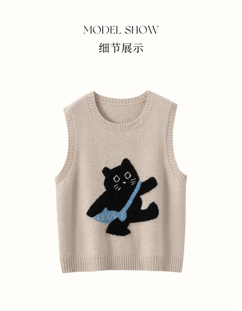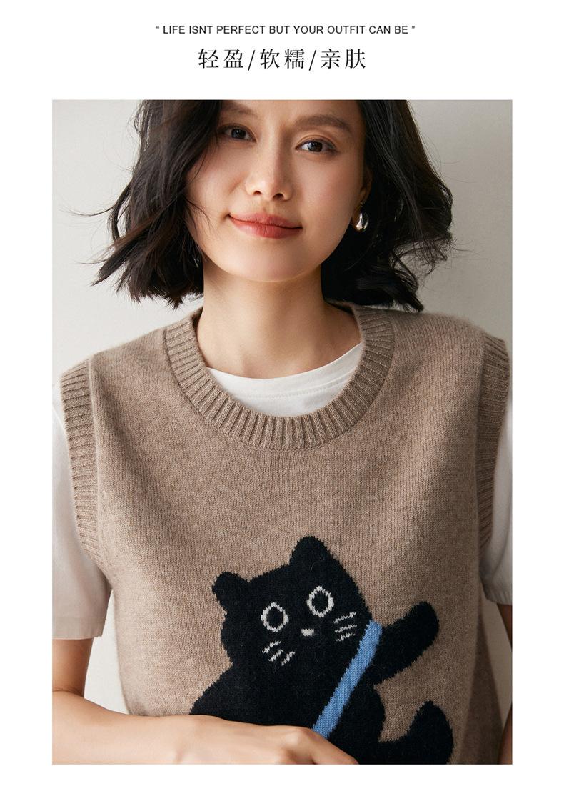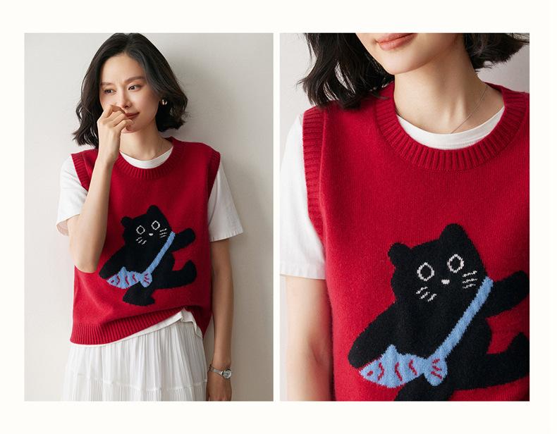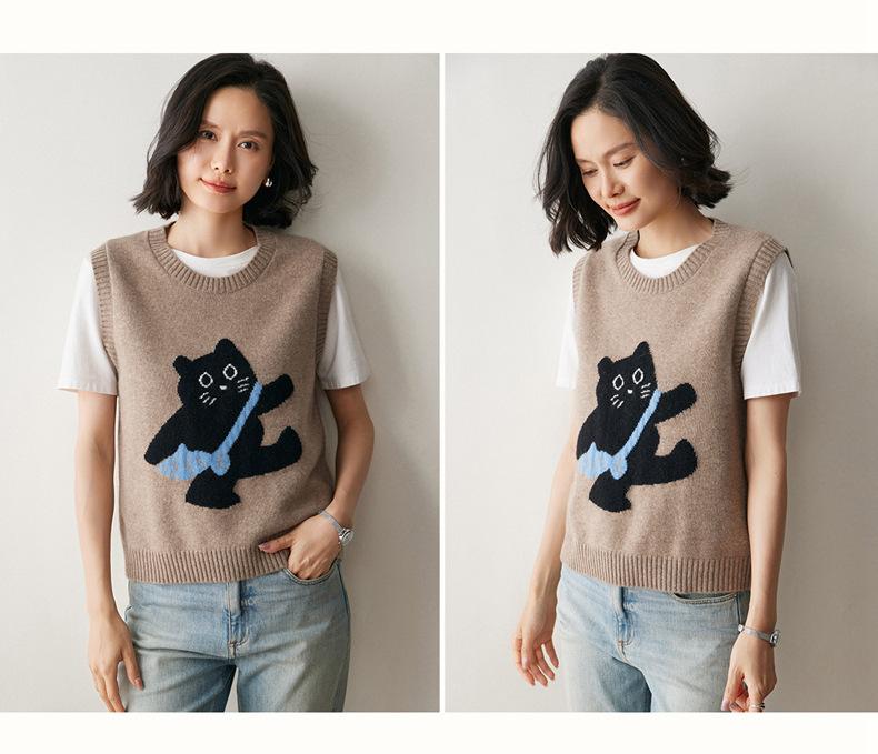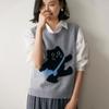 Lindo Chaleco Suéter Tejido sin Mangas que Reduce la Edad Clásico Jacquard Gatito a la Moda Versátil Capa Interior Otoño/Invierno