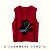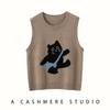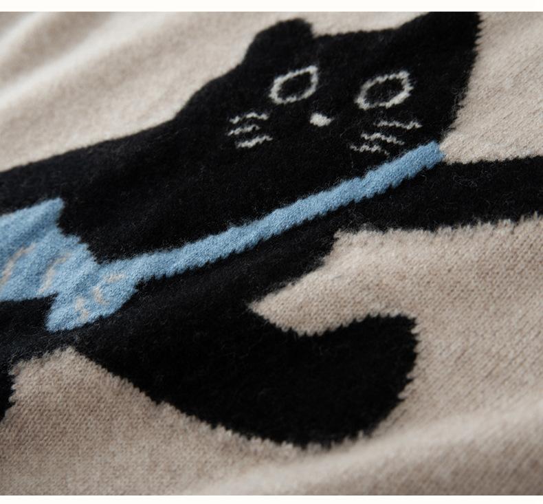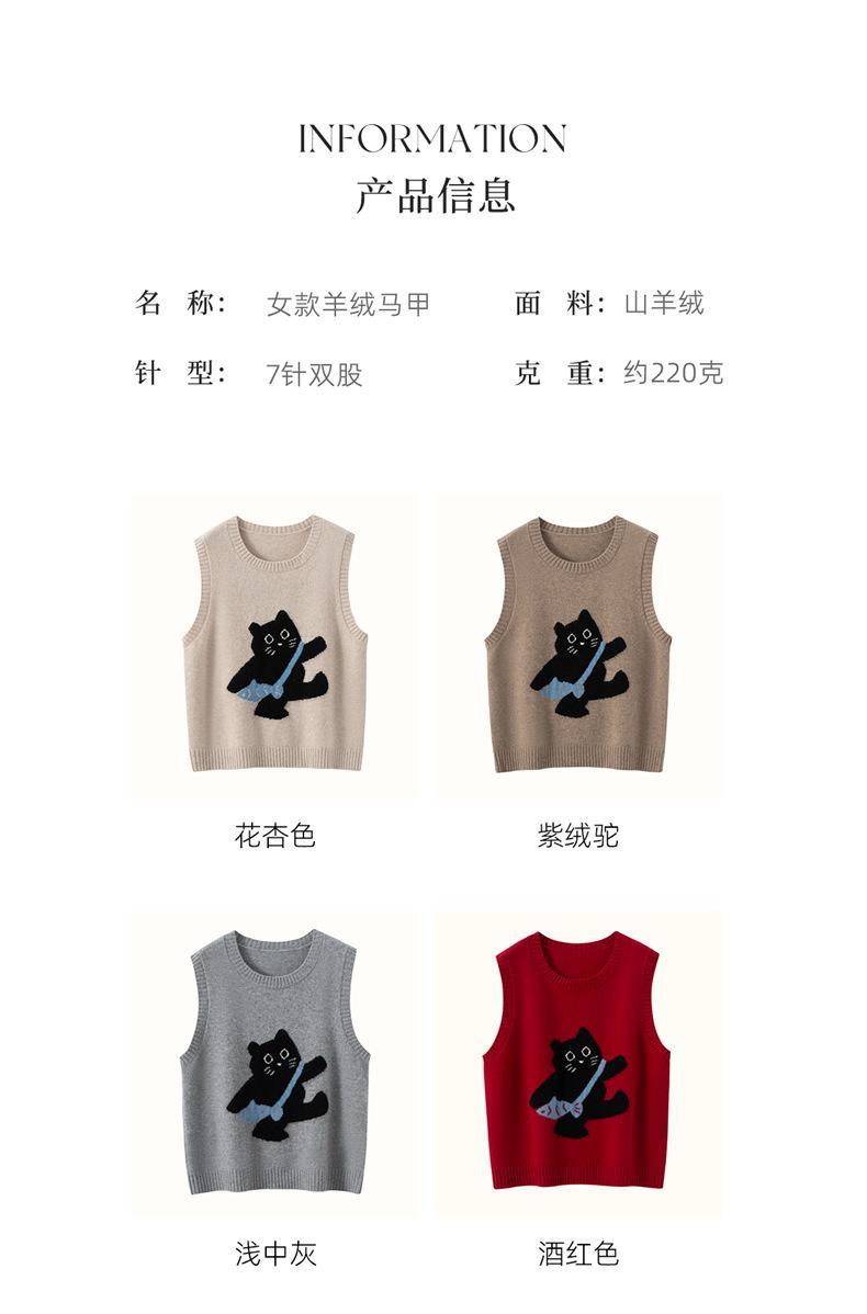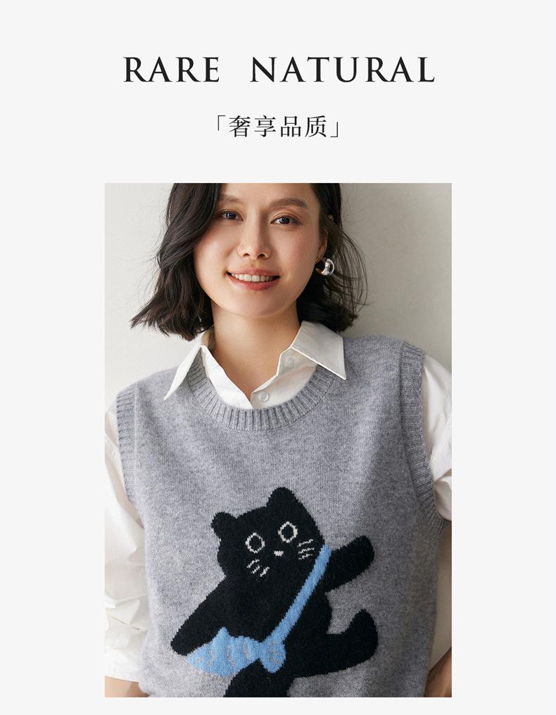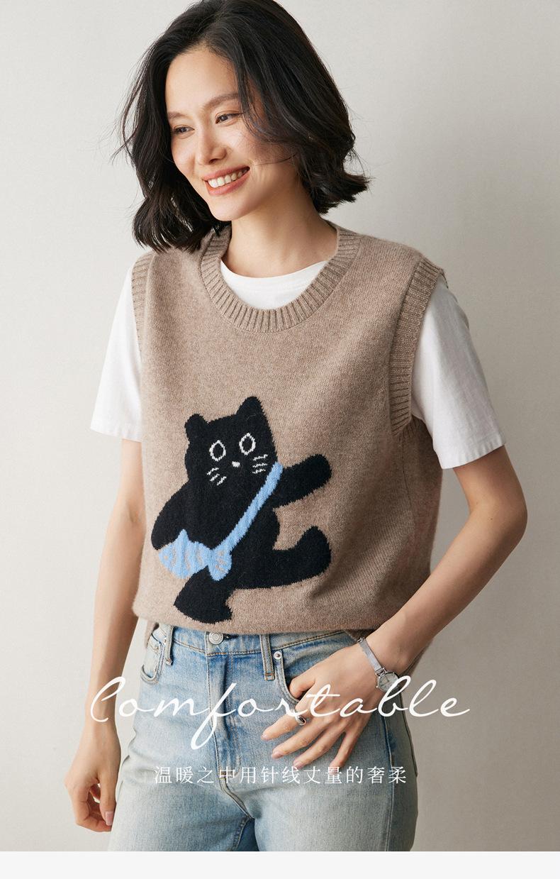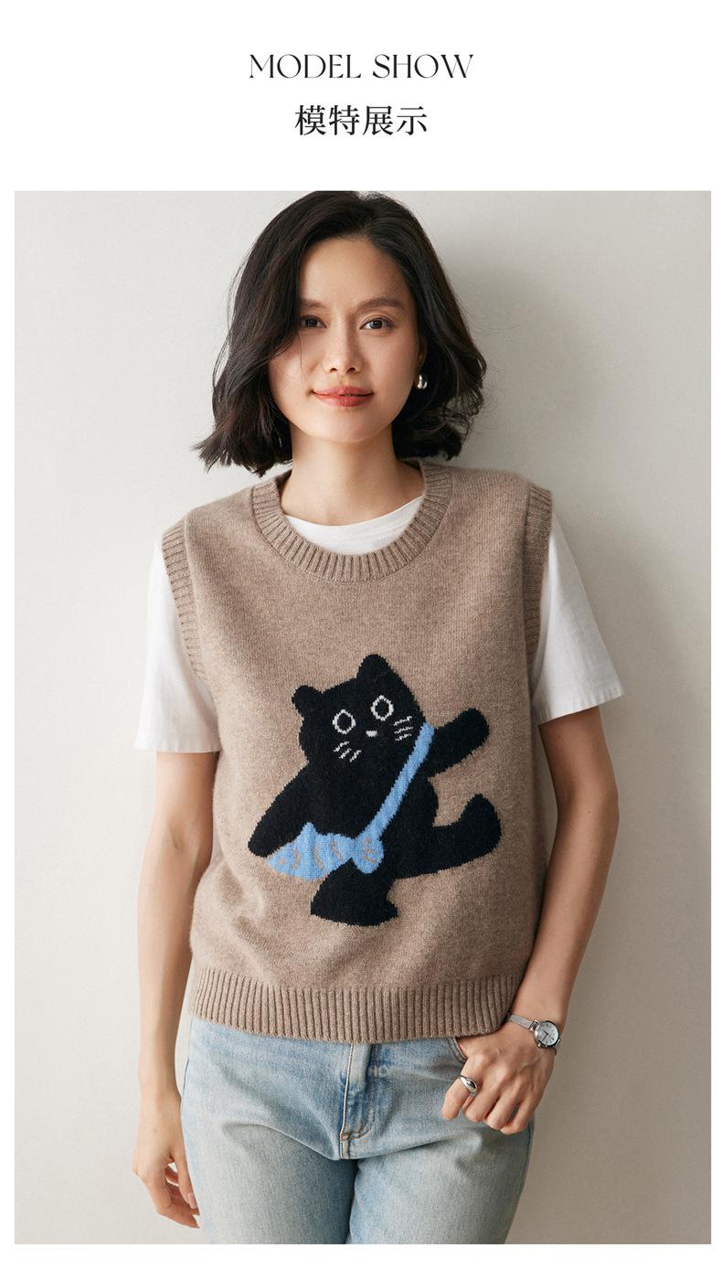 Lindo Chaleco Suéter Tejido sin Mangas que Reduce la Edad Clásico Jacquard Gatito a la Moda Versátil Capa Interior Otoño/Invierno