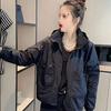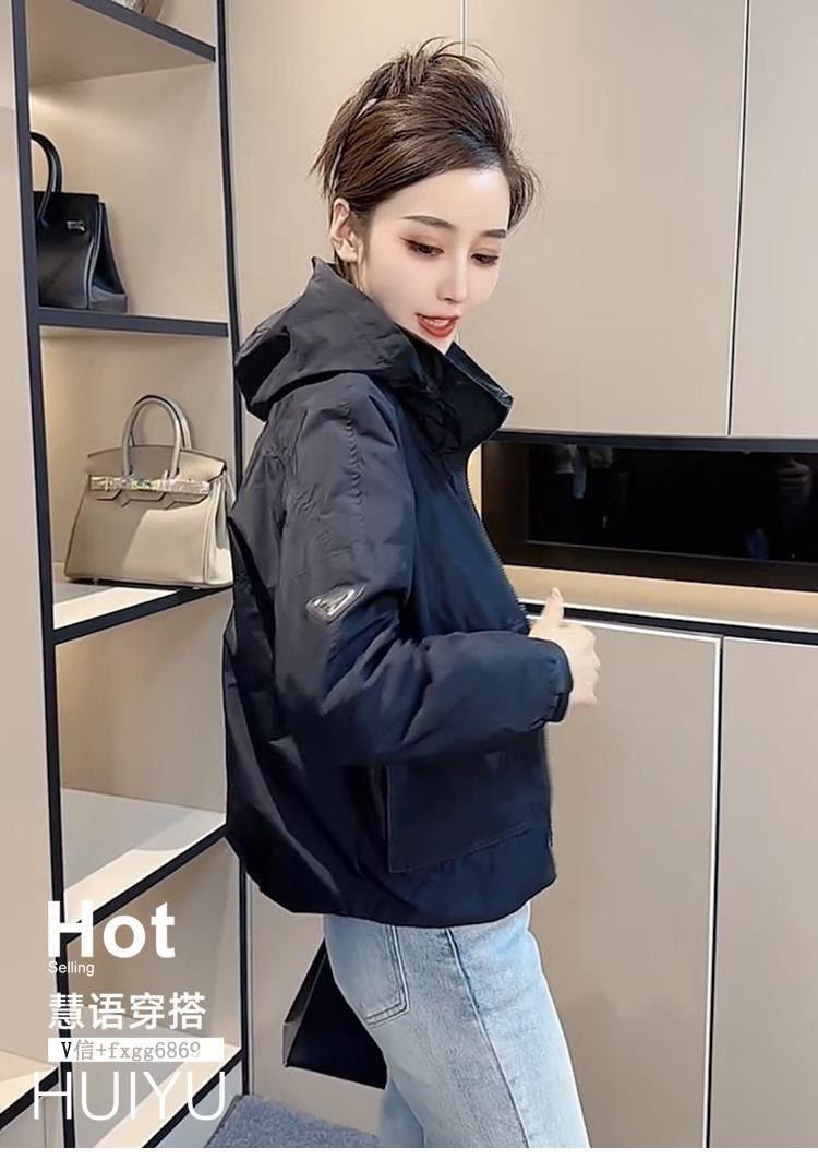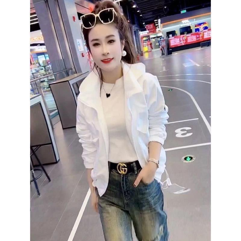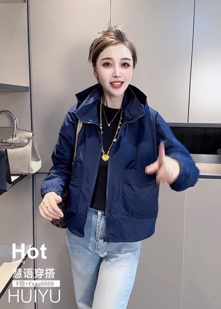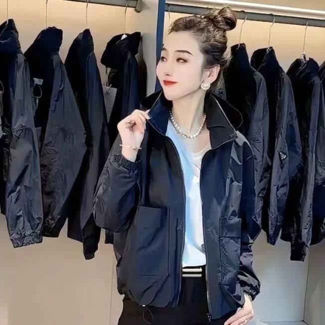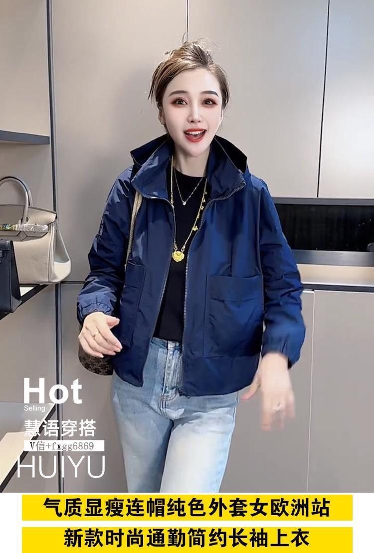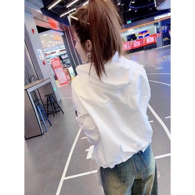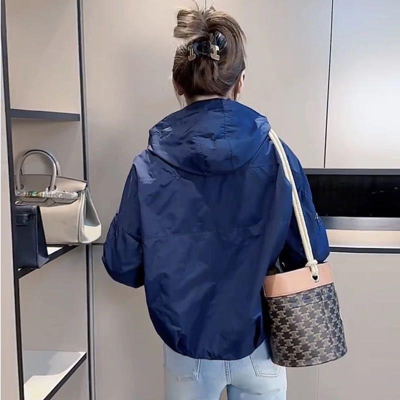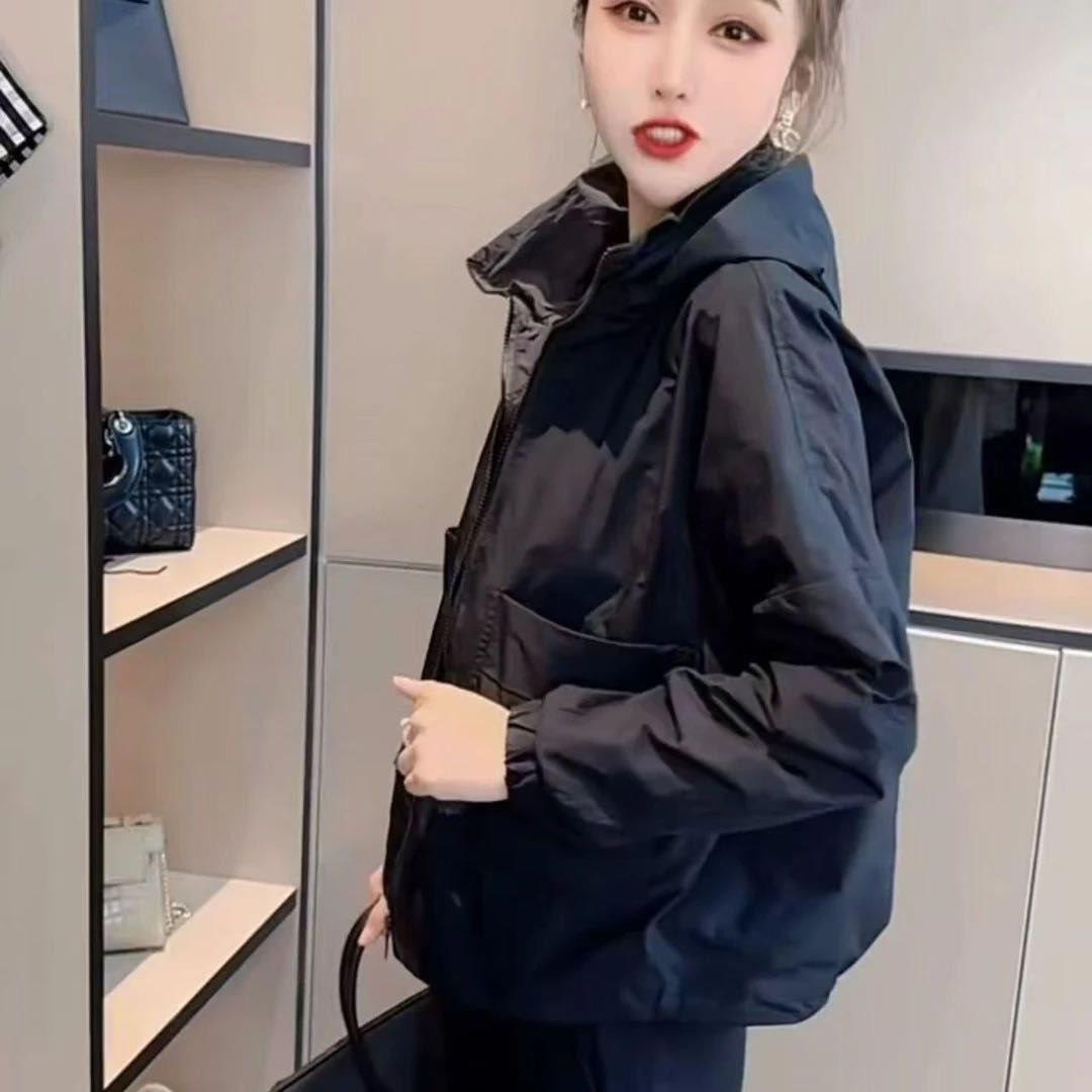 2025 Primavera y Otoño Nuevo Cortavientos Holgado con Capucha Chaqueta Exterior con Cremallera Top Versátil Moderno para Mujer