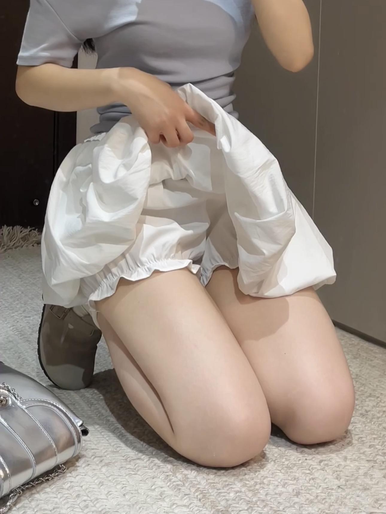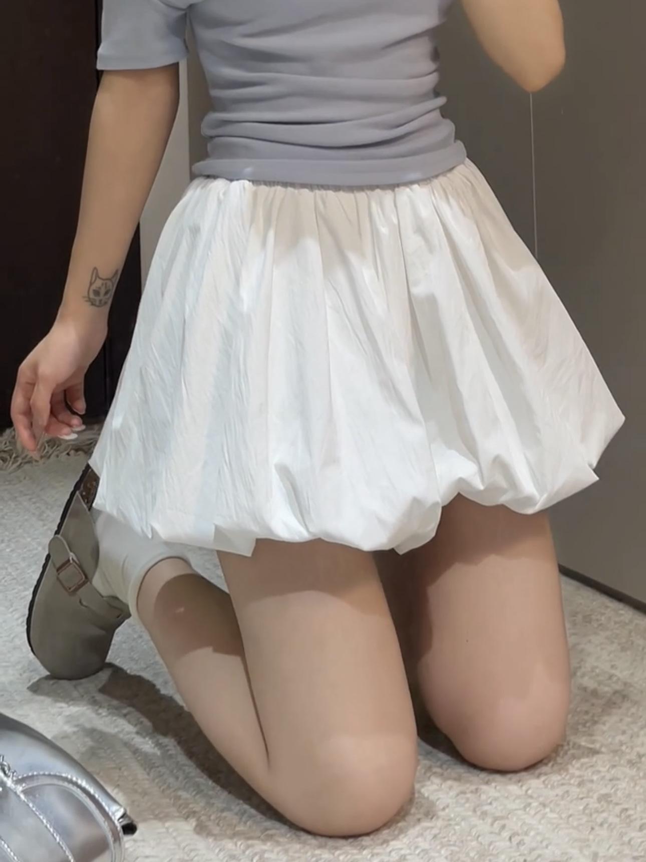 Falda pantalón corta blanca con forma de capullo de flor para mujer verano petite antiexposición línea A cintura alta delgada nube abullonada minifalda falda media