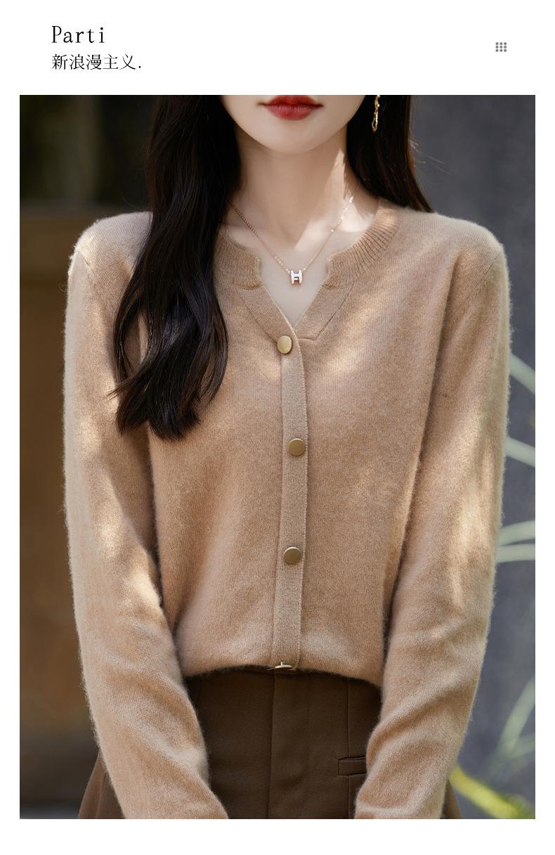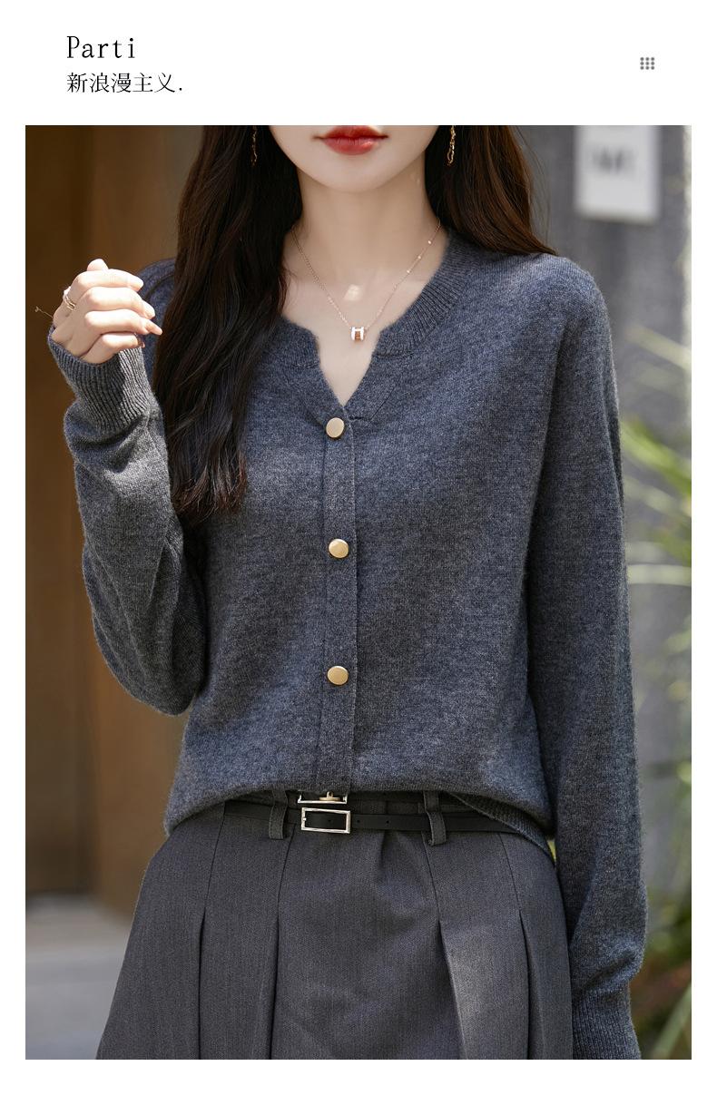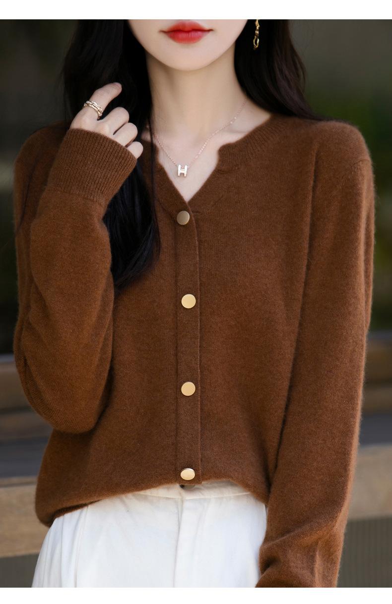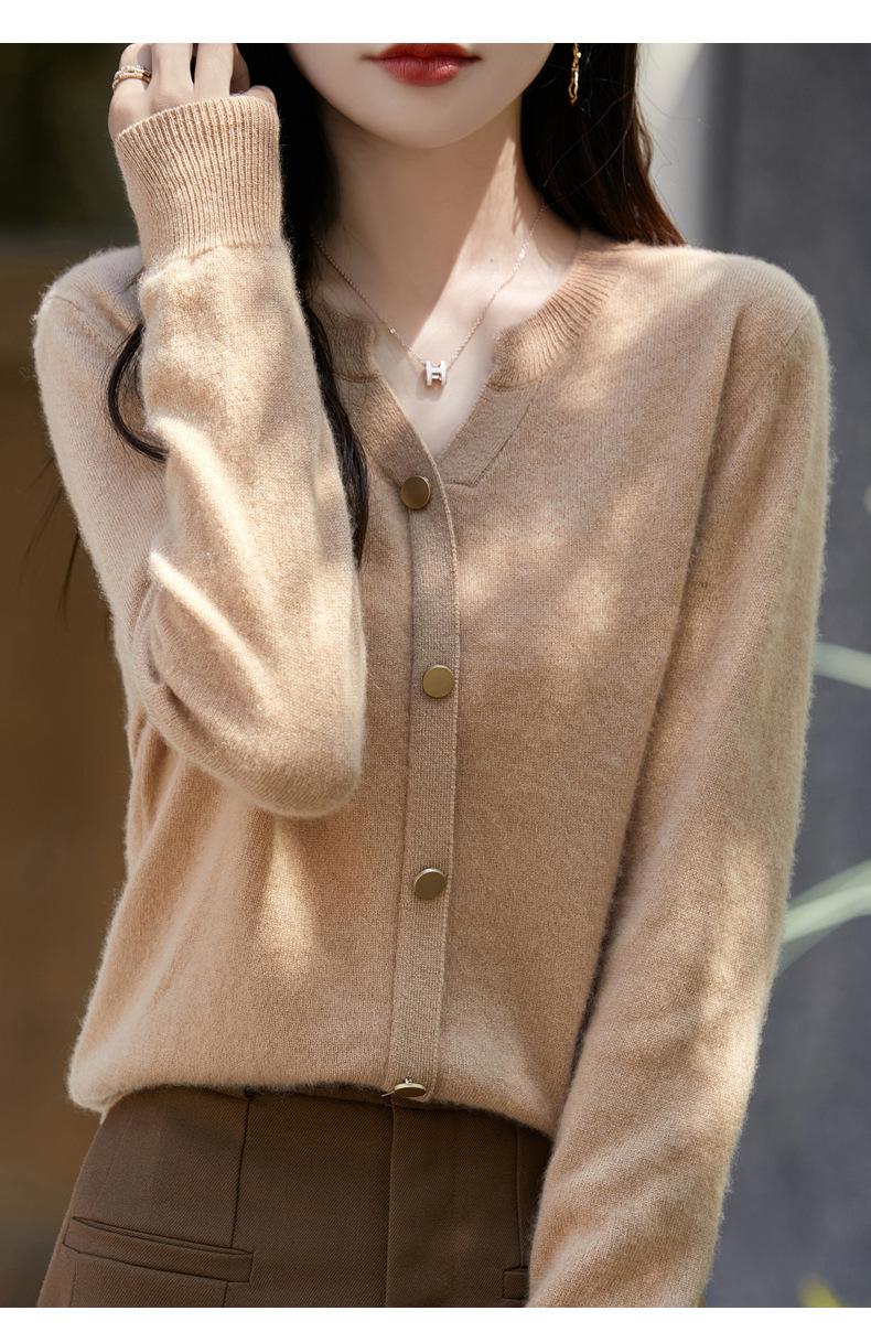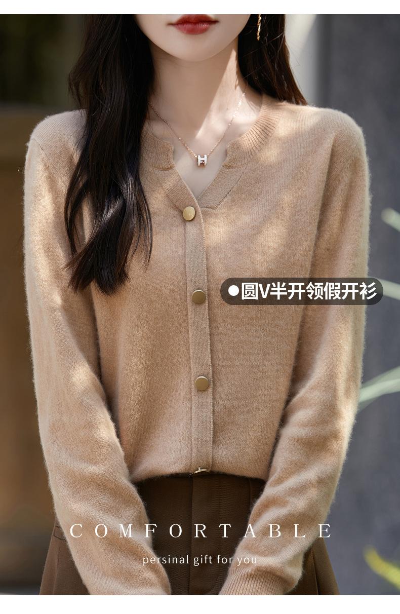 Cárdigan Falso de Punto con Cuello en V para Mujer 100% Lana Pura Suéter Jersey Otoño e Invierno Nuevo Estilo para Ir al Trabajo Top Versátil
