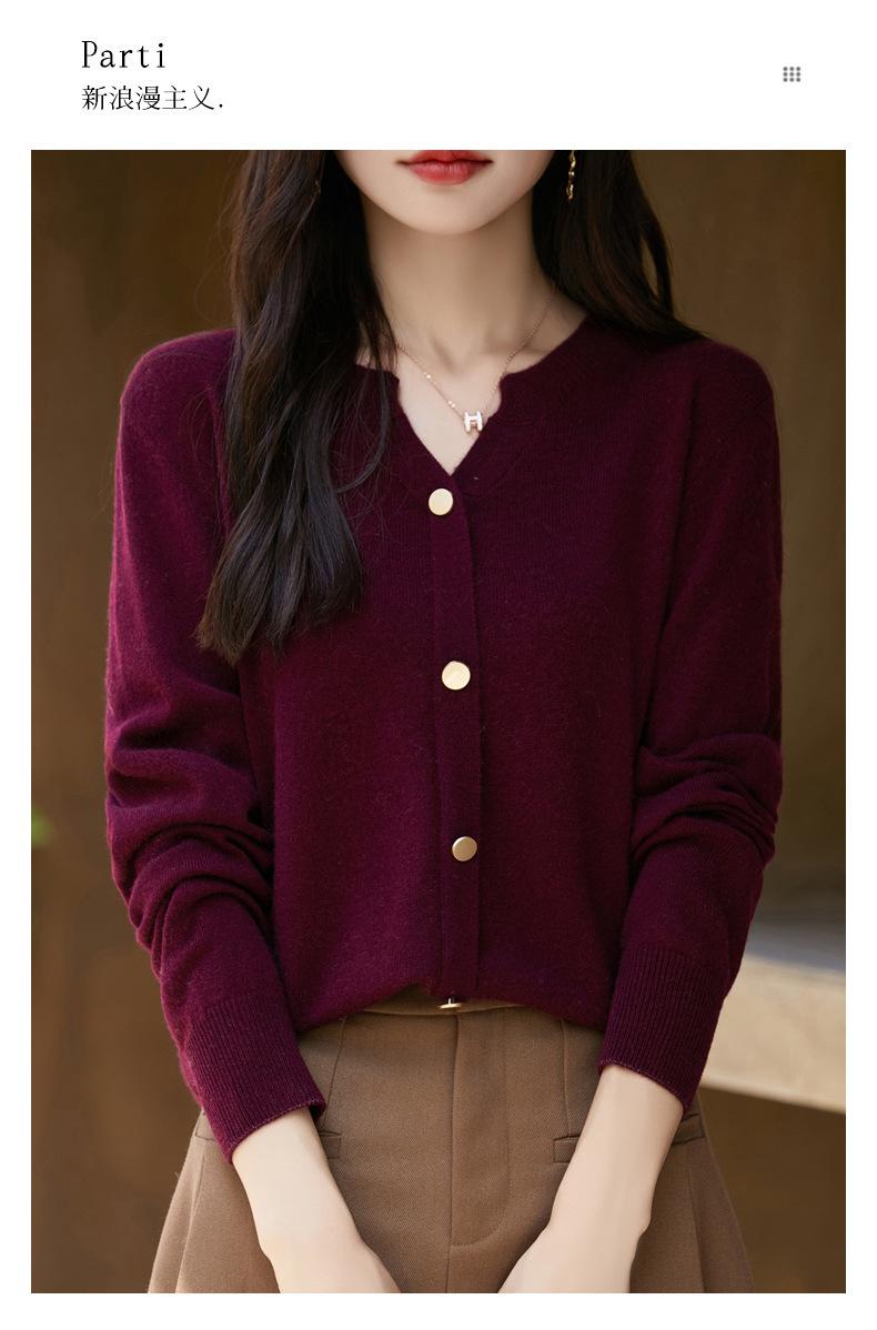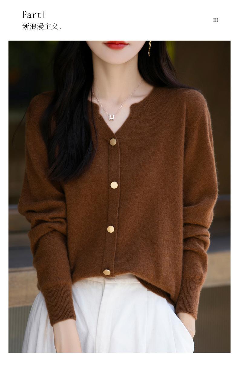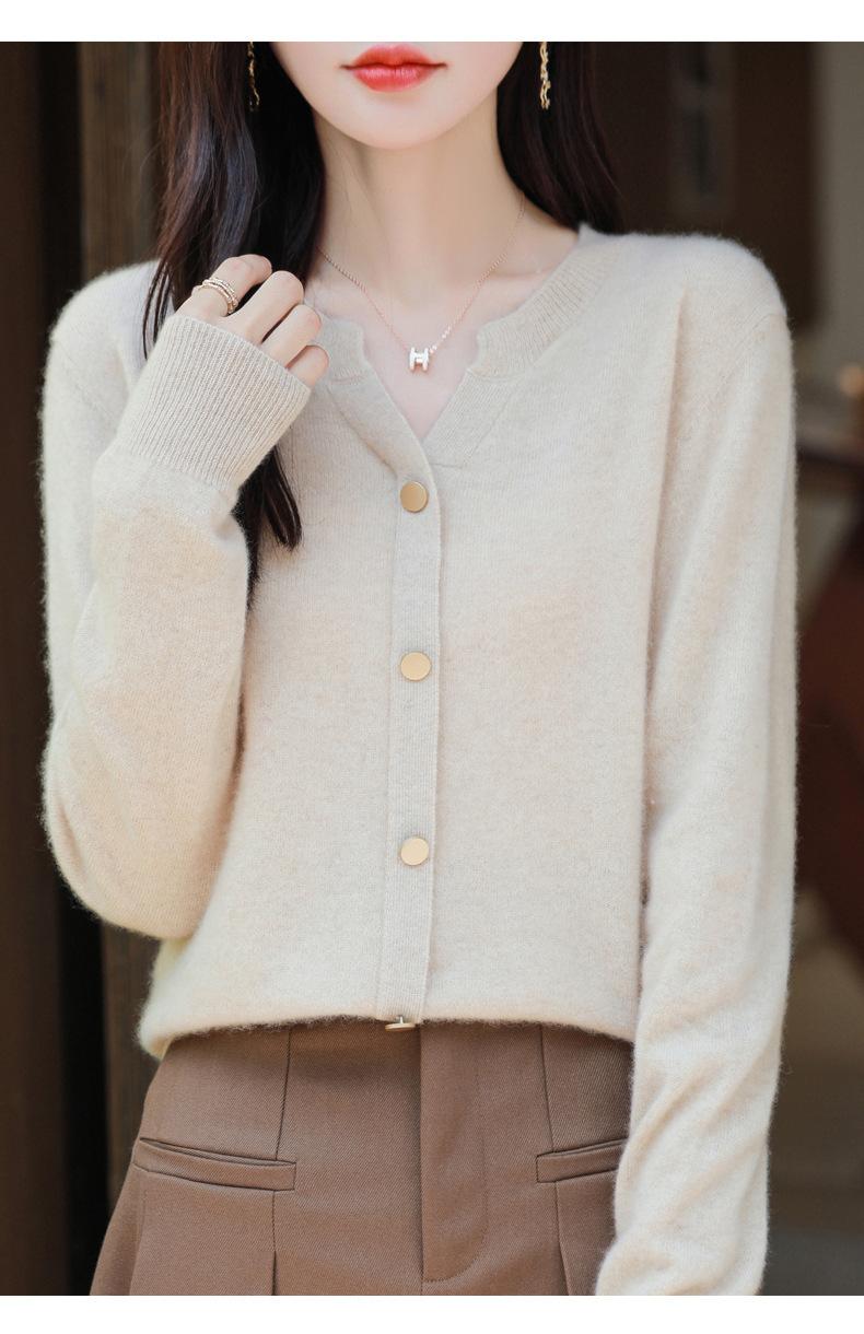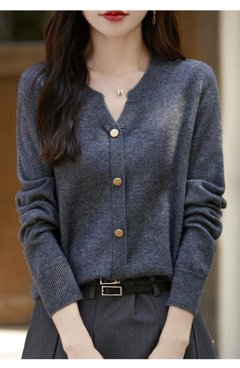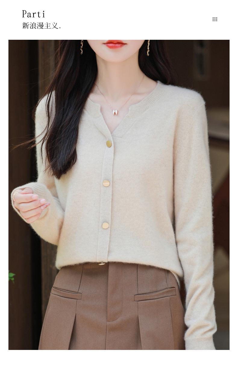 Cárdigan Falso de Punto con Cuello en V para Mujer 100% Lana Pura Suéter Jersey Otoño e Invierno Nuevo Estilo para Ir al Trabajo Top Versátil
