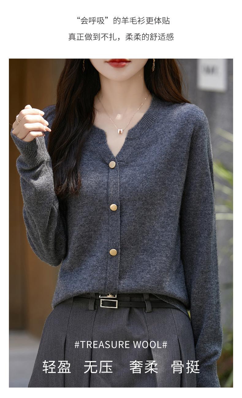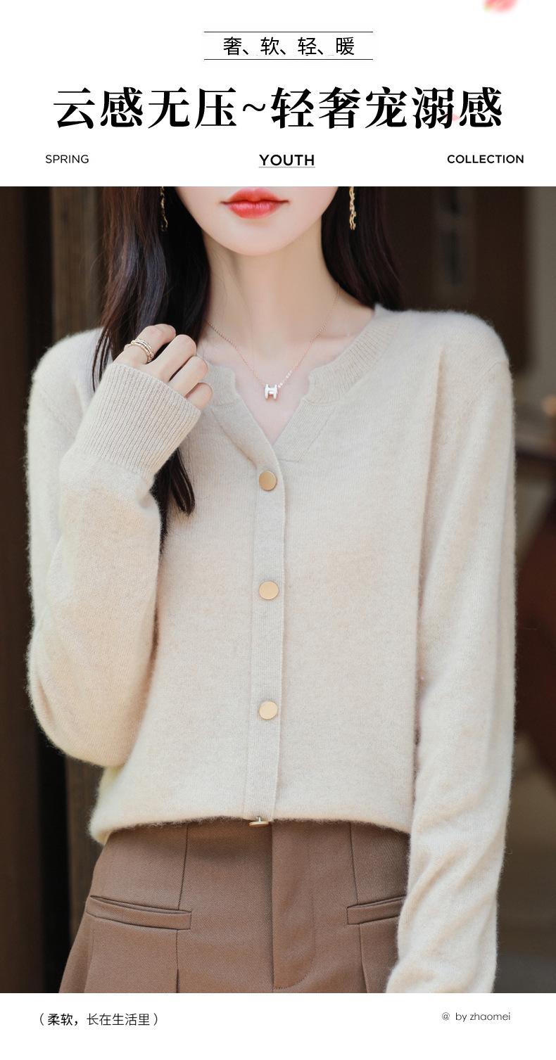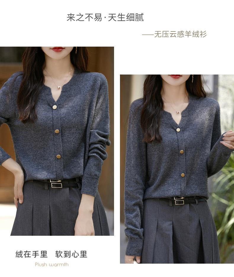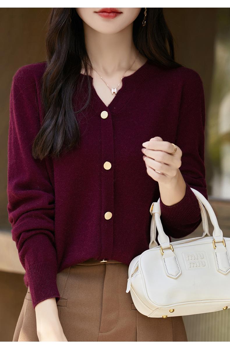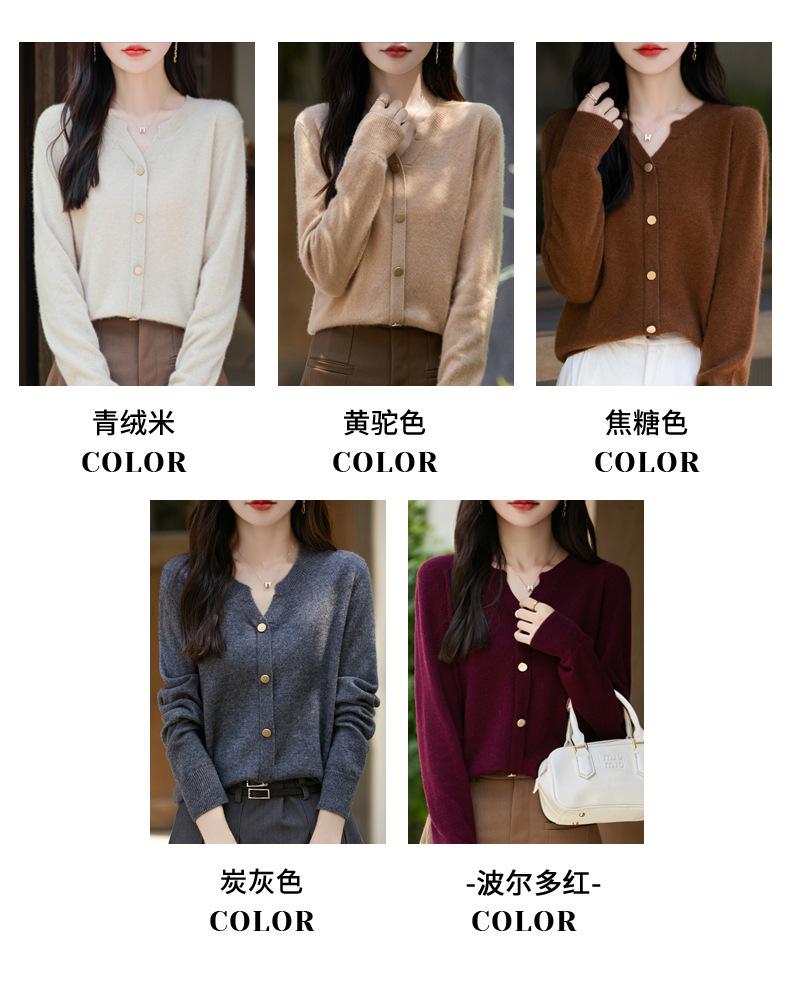 Cárdigan Falso de Punto con Cuello en V para Mujer 100% Lana Pura Suéter Jersey Otoño e Invierno Nuevo Estilo para Ir al Trabajo Top Versátil