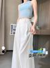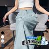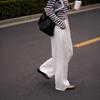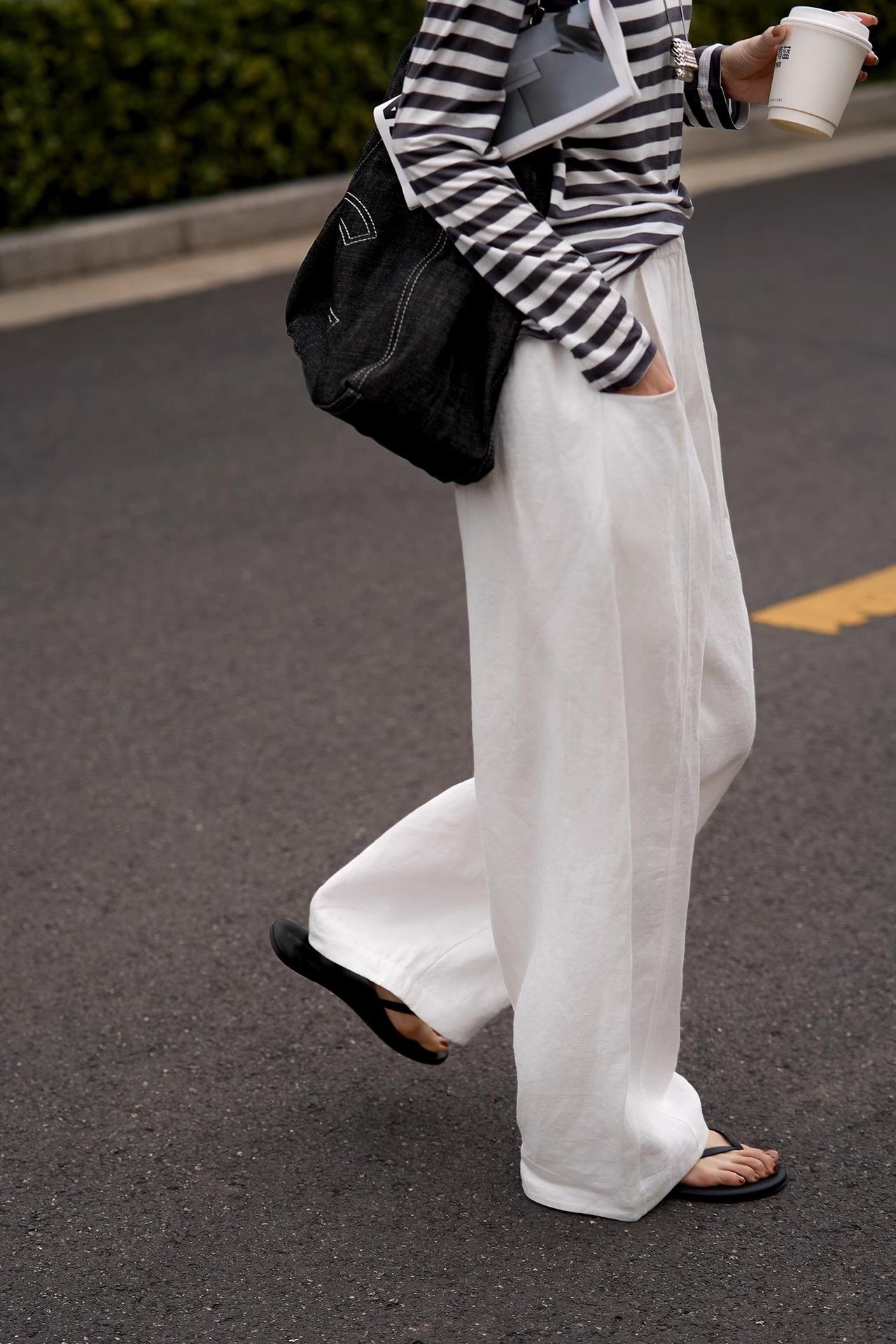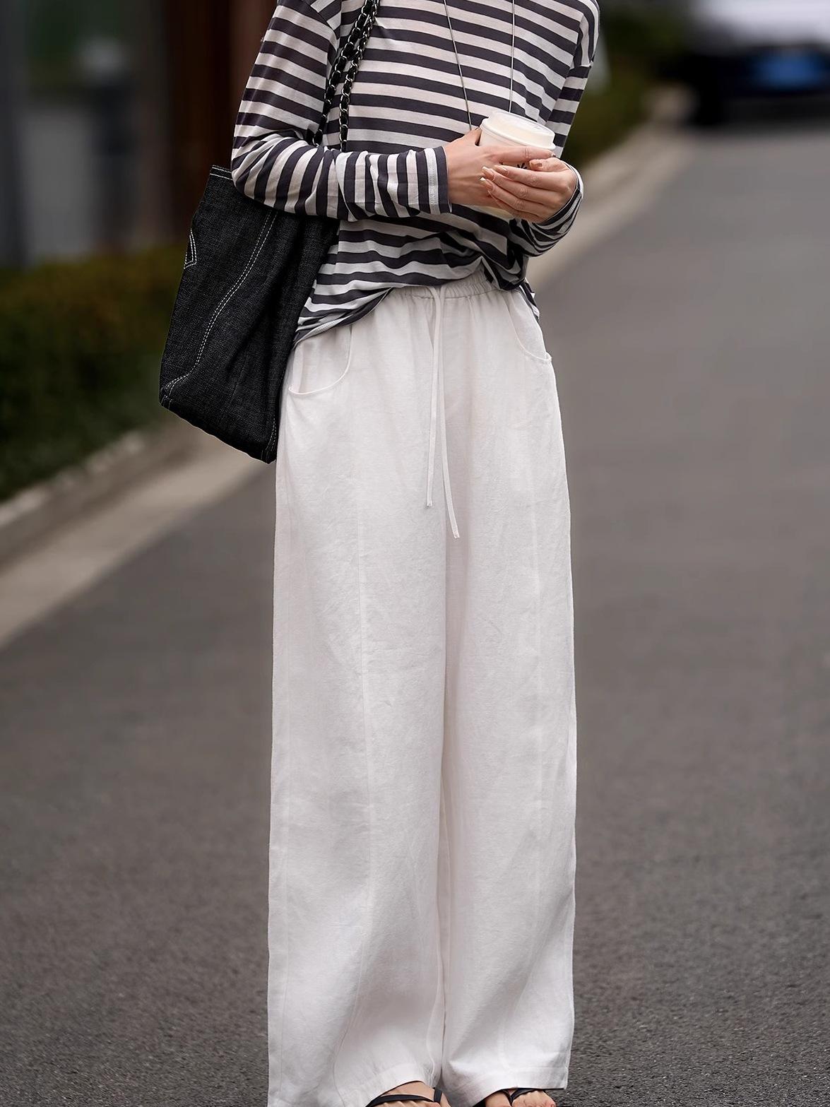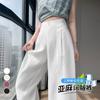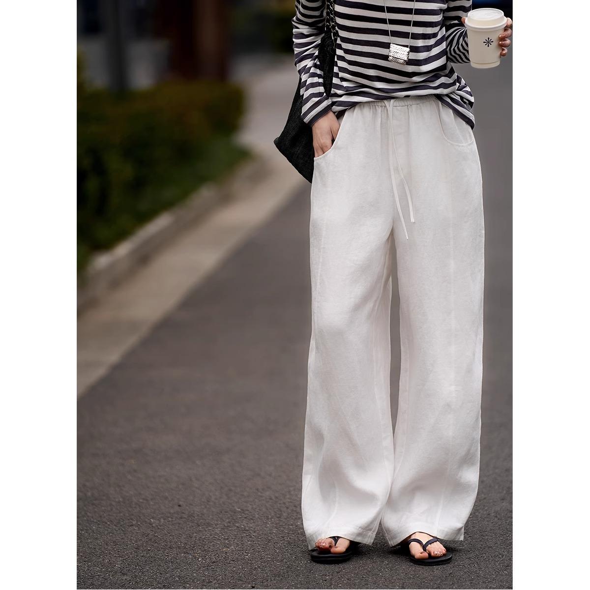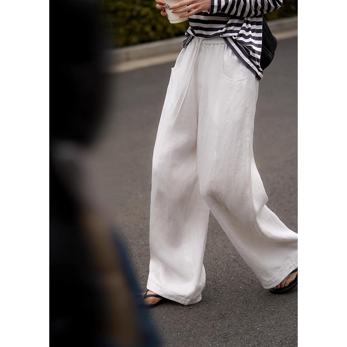 Pantalones rectos de algodón y lino finos, impermeables, de alto peso y sensación fresca para mujer, verano 2025, nuevos pantalones de pierna ancha que barren el suelo