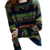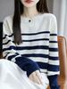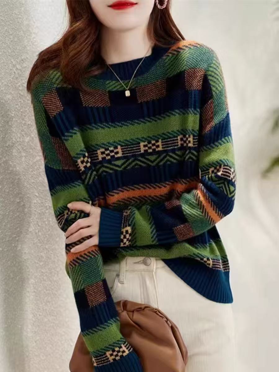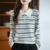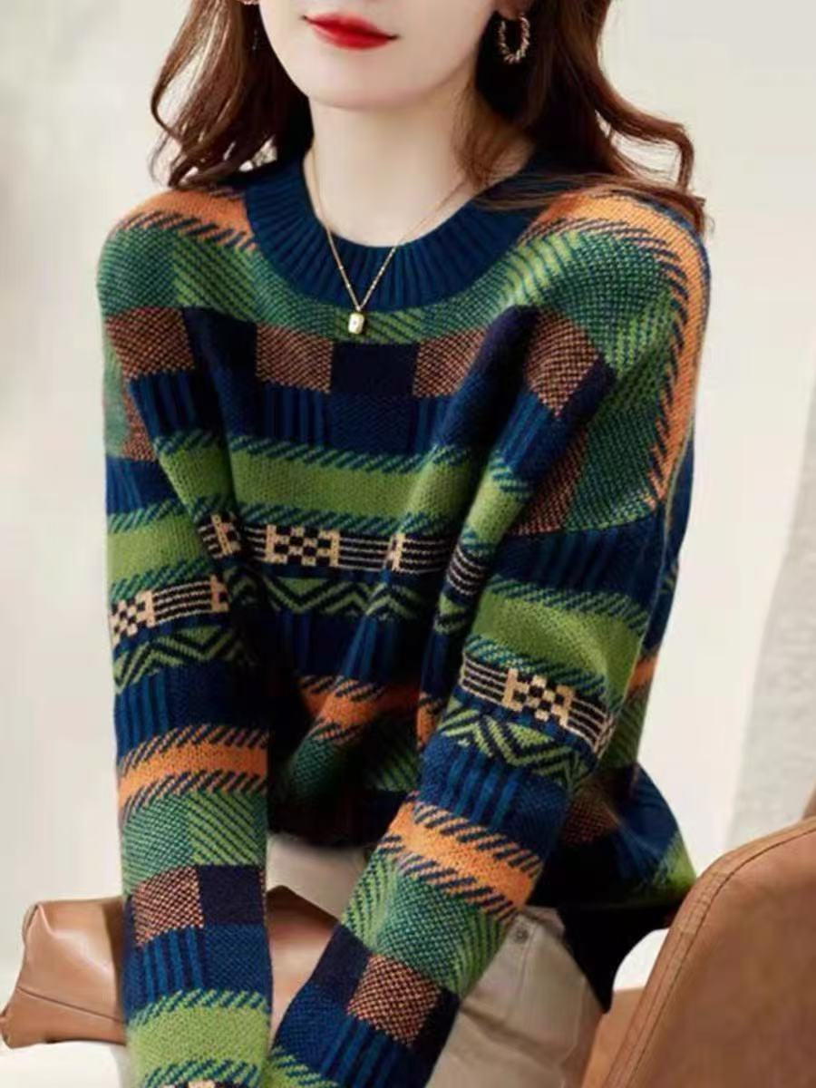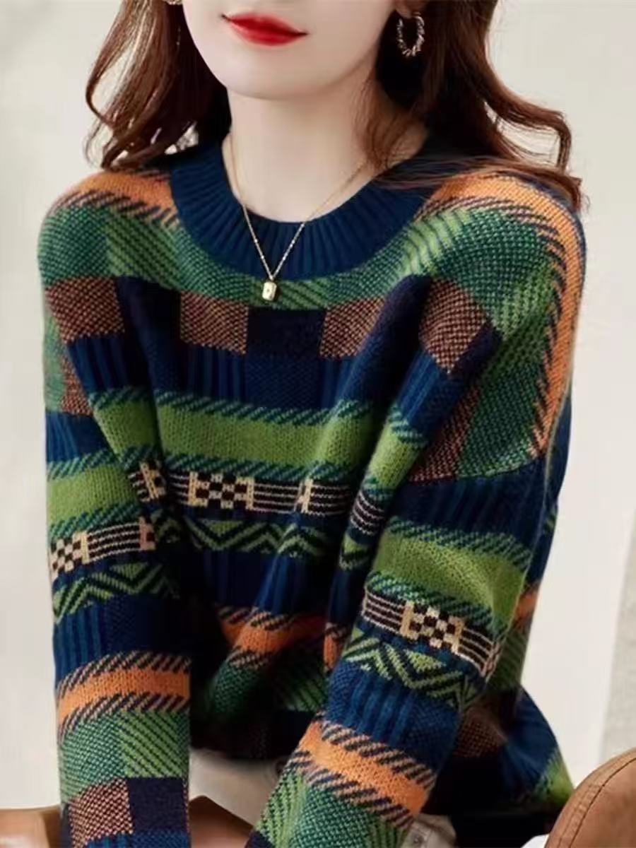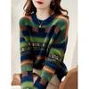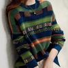 2025 Nuevo Otoño e Invierno Coreano Nuevo Suéter de Punto de Lana de Rayas Sueltas Verde de Cuello Redondo Suéter de Temperamento para Mujer