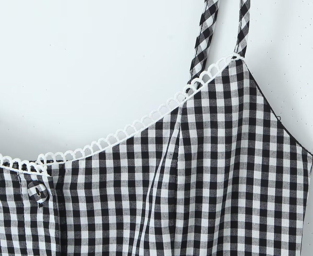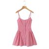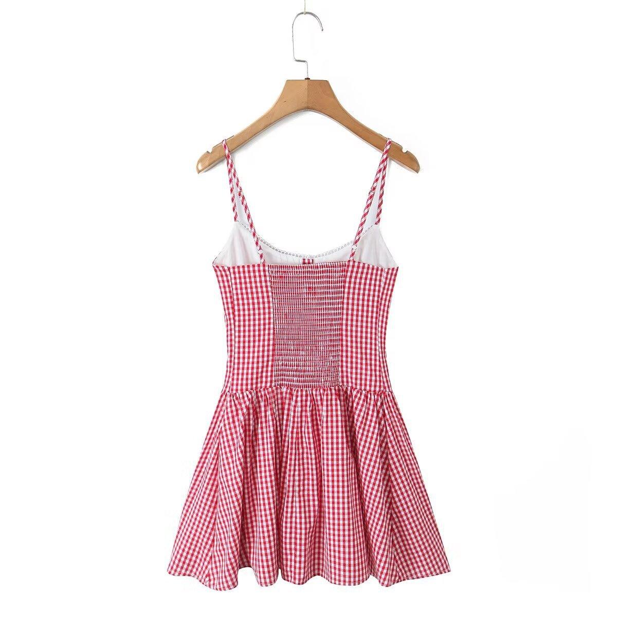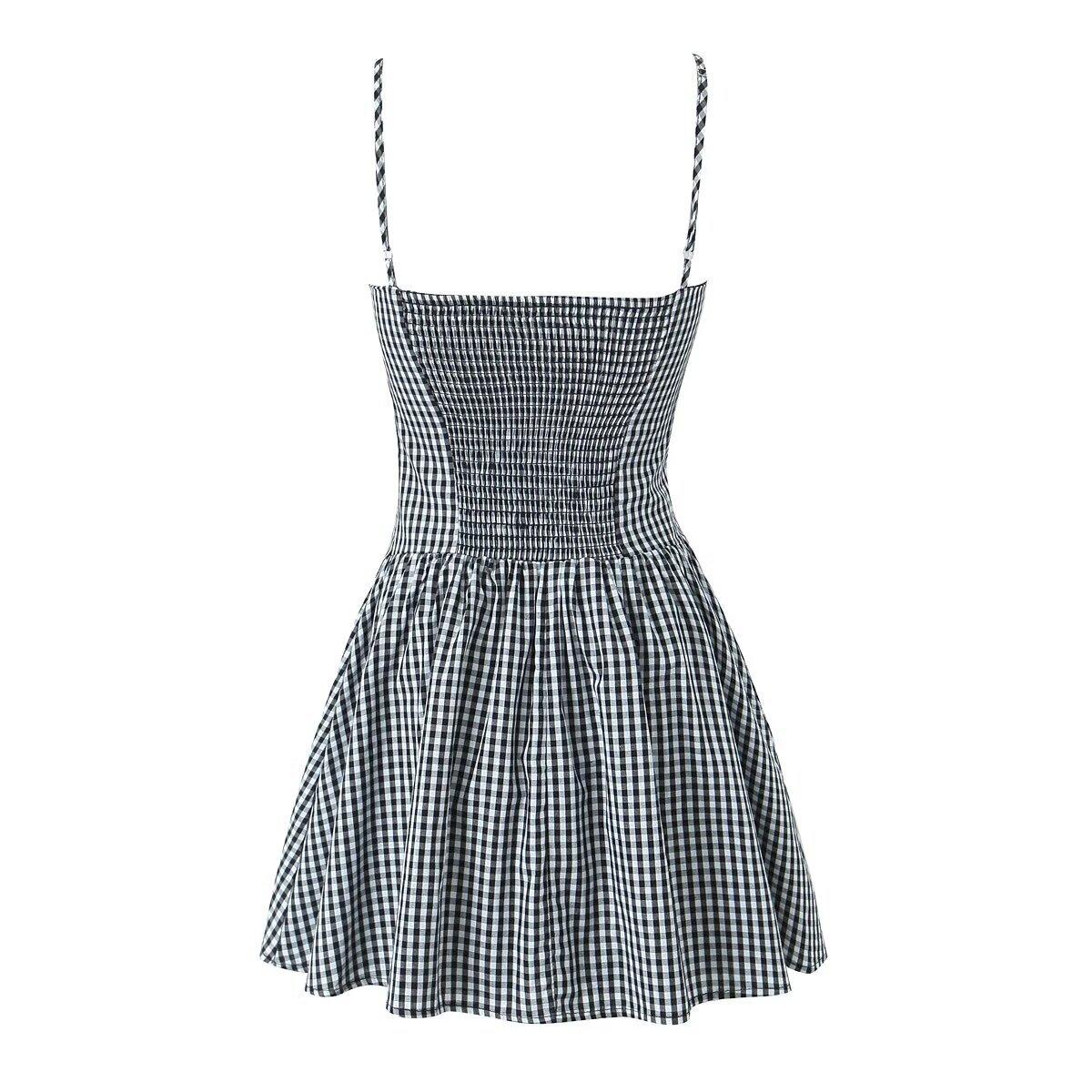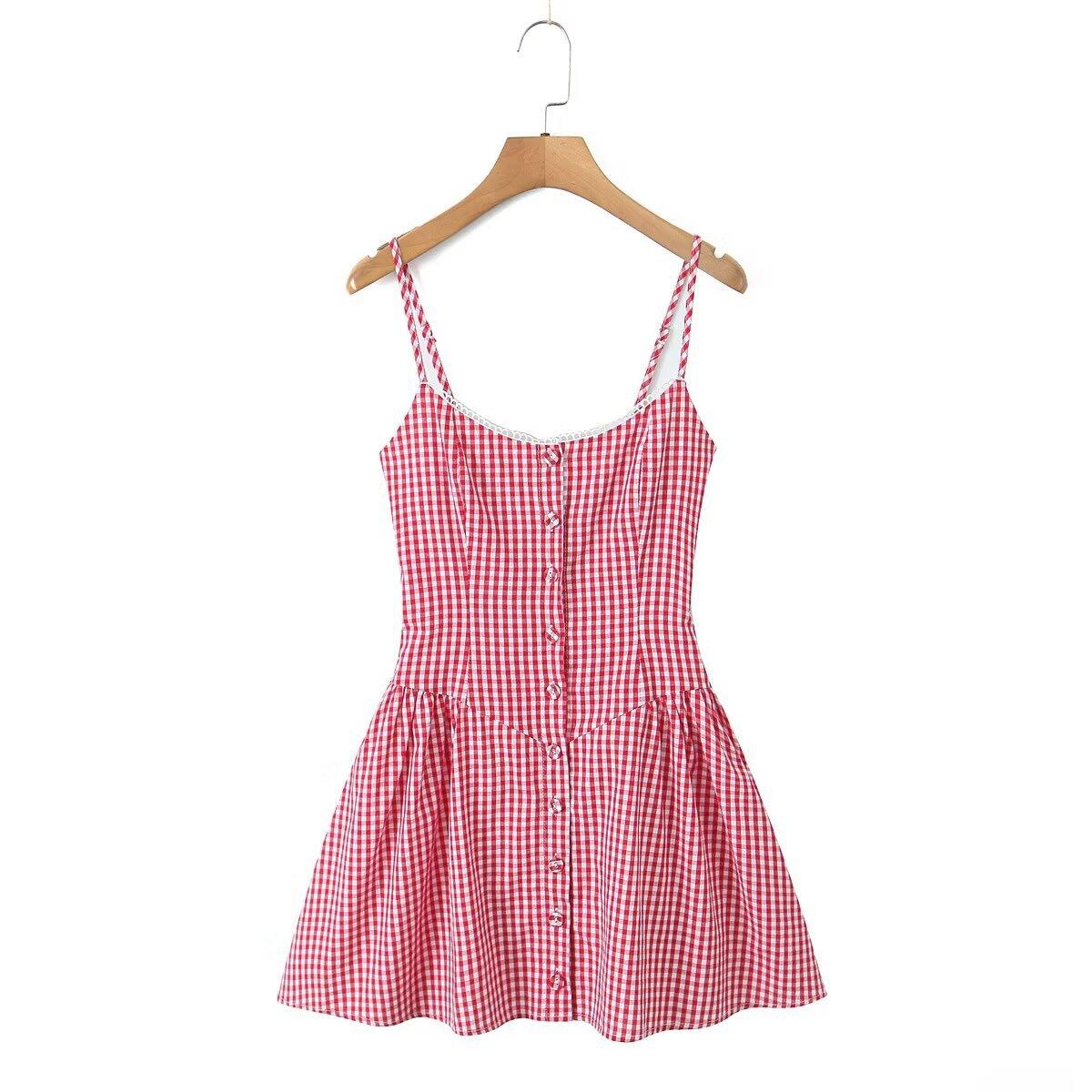 Vestido de Tirantes con Botones y Costuras a Cuadros Estilo Francés Pure Wish para Mujer Verano 2025 Nuevo Ajustado Línea A Falda Corta