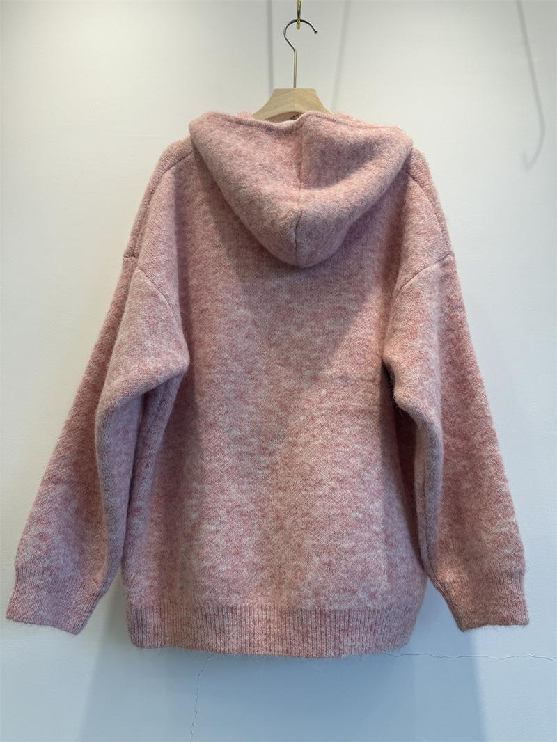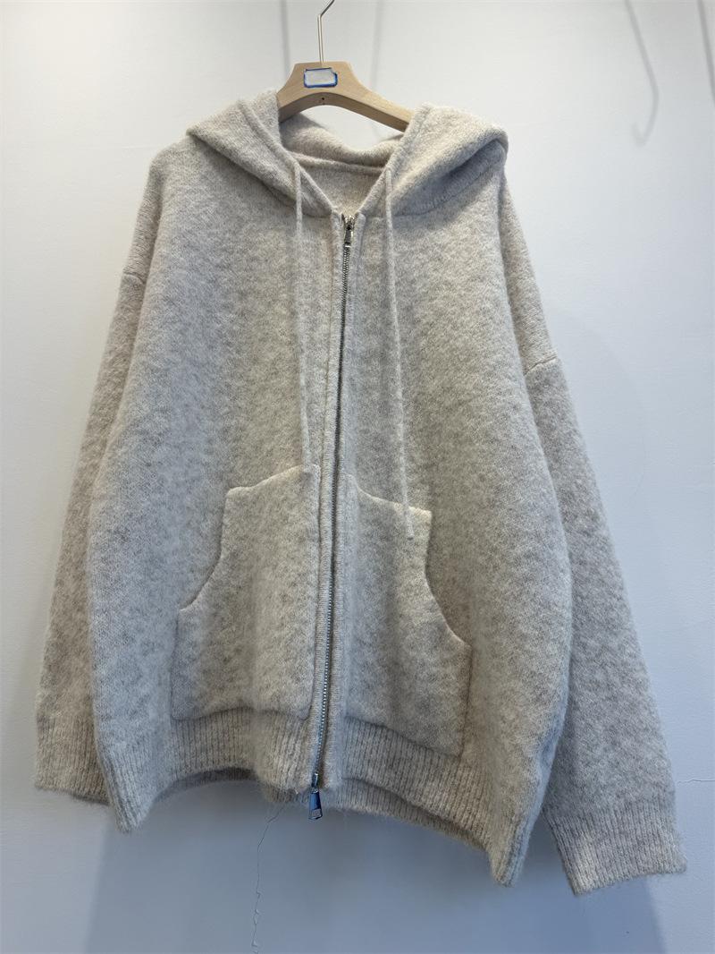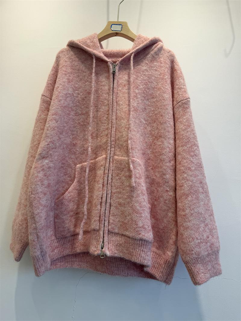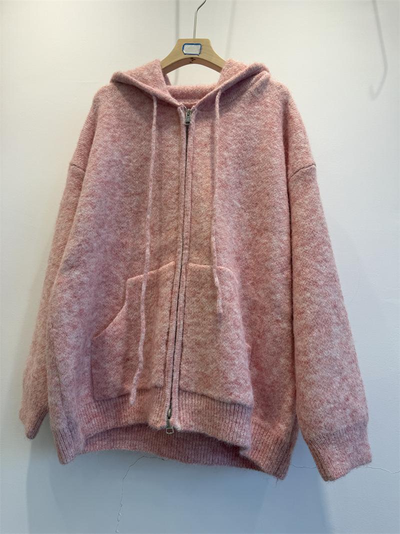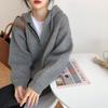 Cárdigan de Punto con Capucha y Doble Cremallera Otoño Invierno Nuevo Estilo Perezoso Suelto Casual Versátil Abrigo Suéter de Manga Larga para Mujer
