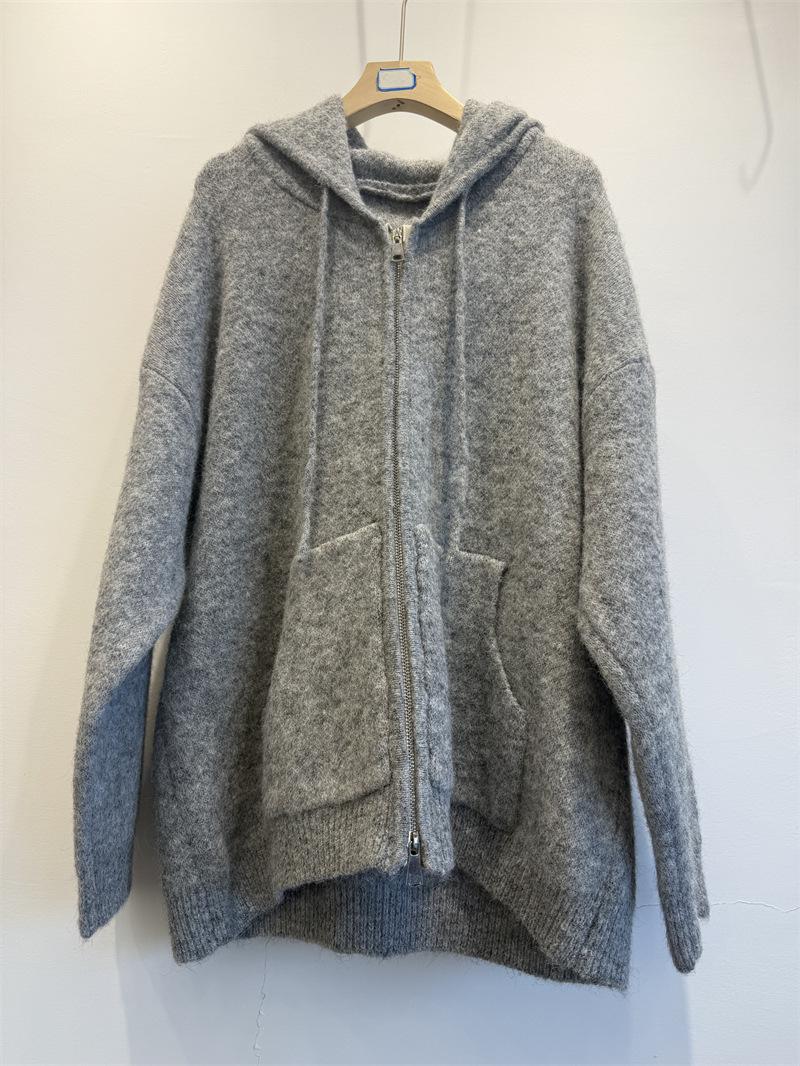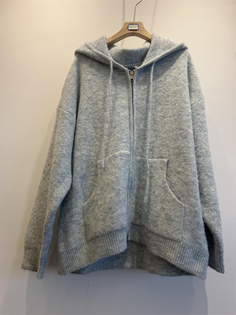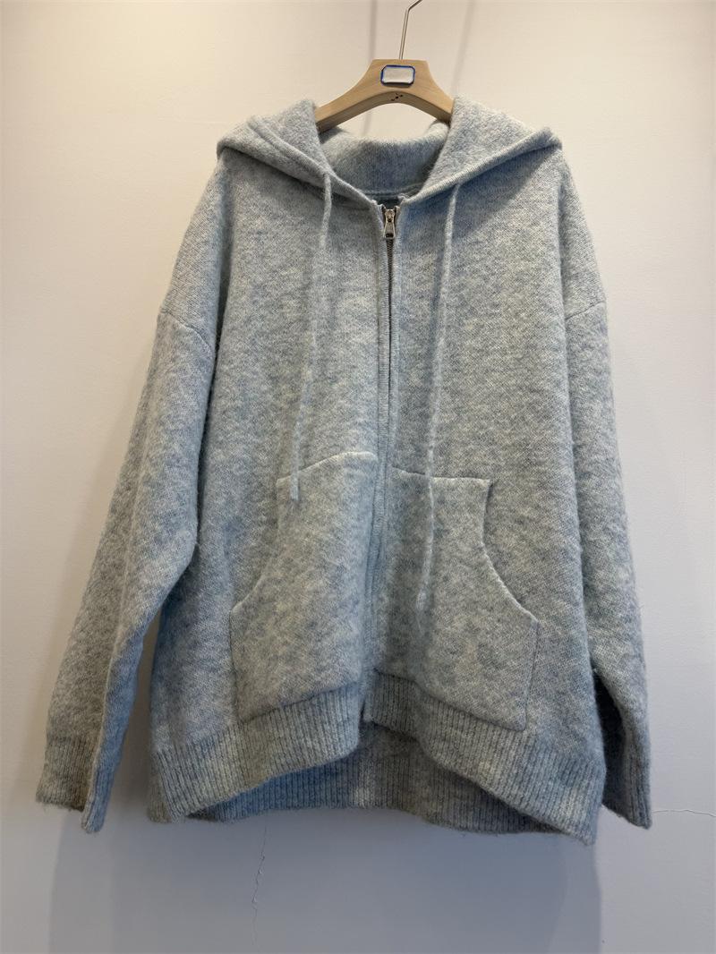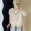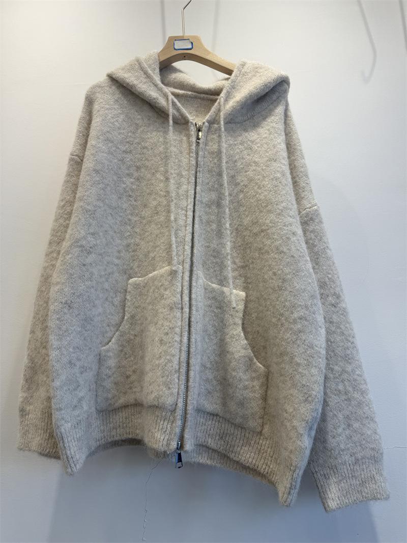 Cárdigan de Punto con Capucha y Doble Cremallera Otoño Invierno Nuevo Estilo Perezoso Suelto Casual Versátil Abrigo Suéter de Manga Larga para Mujer