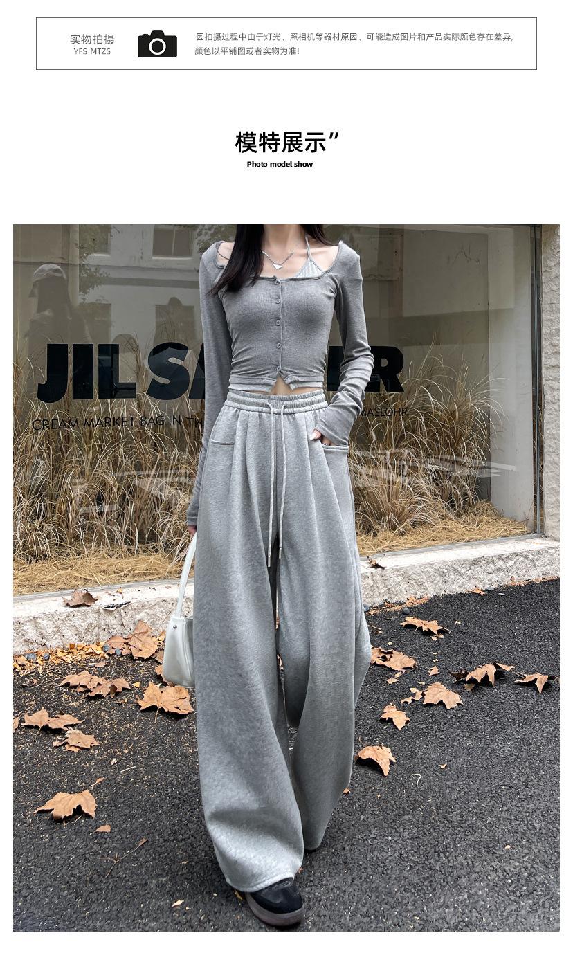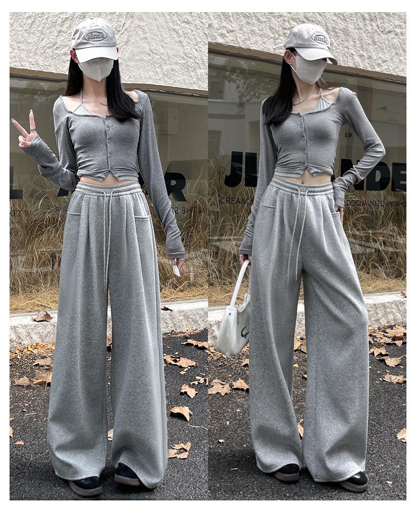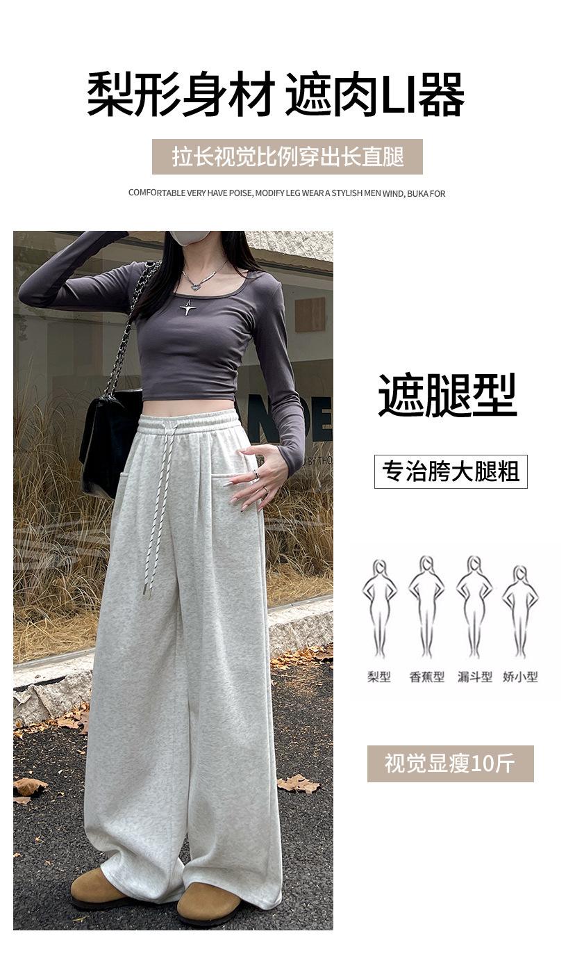Pantalones deportivos para mujer 2025 nuevo otoño talla pequeña cintura alta adelgazantes holgados estilo perezoso casual largos hasta el suelo de pierna ancha