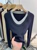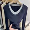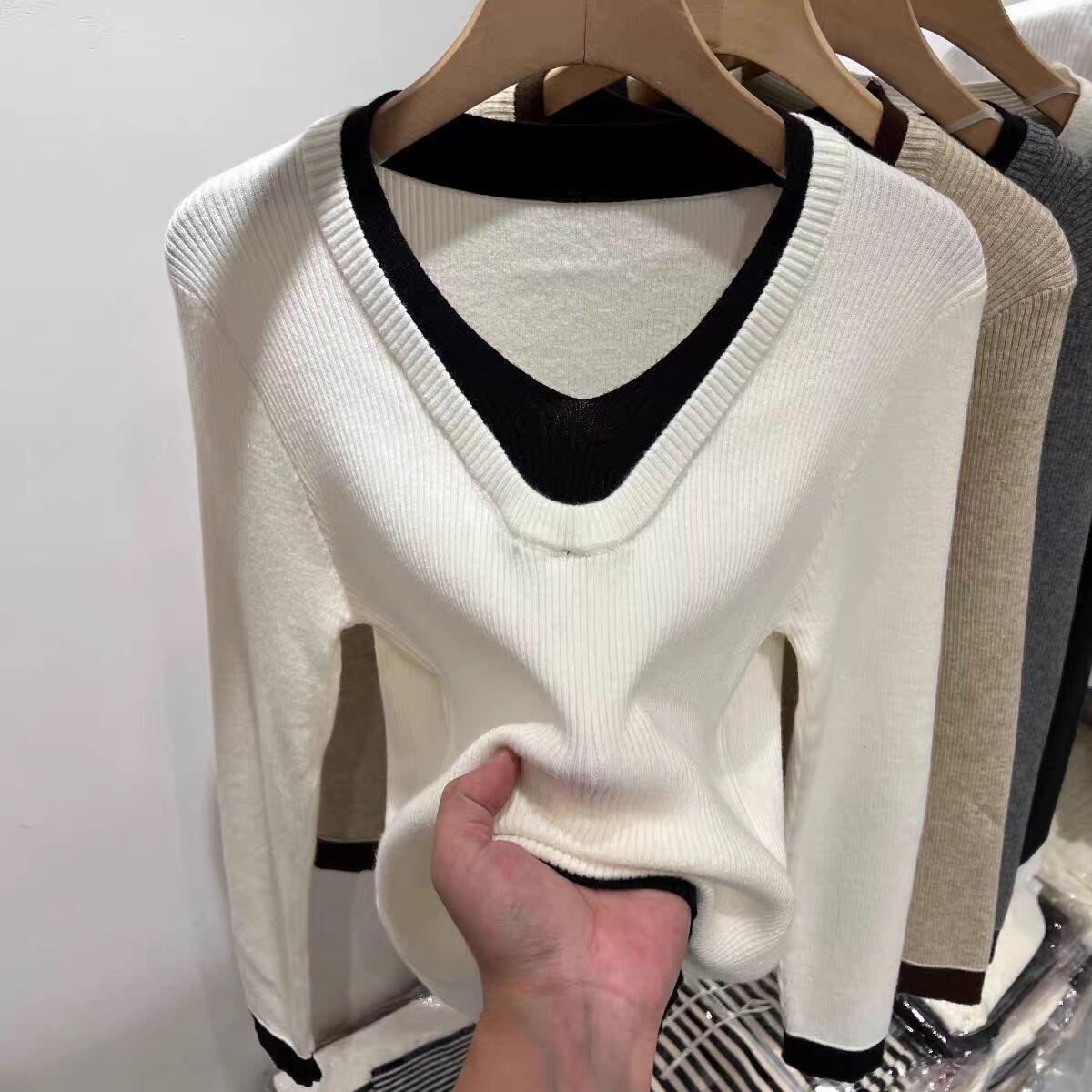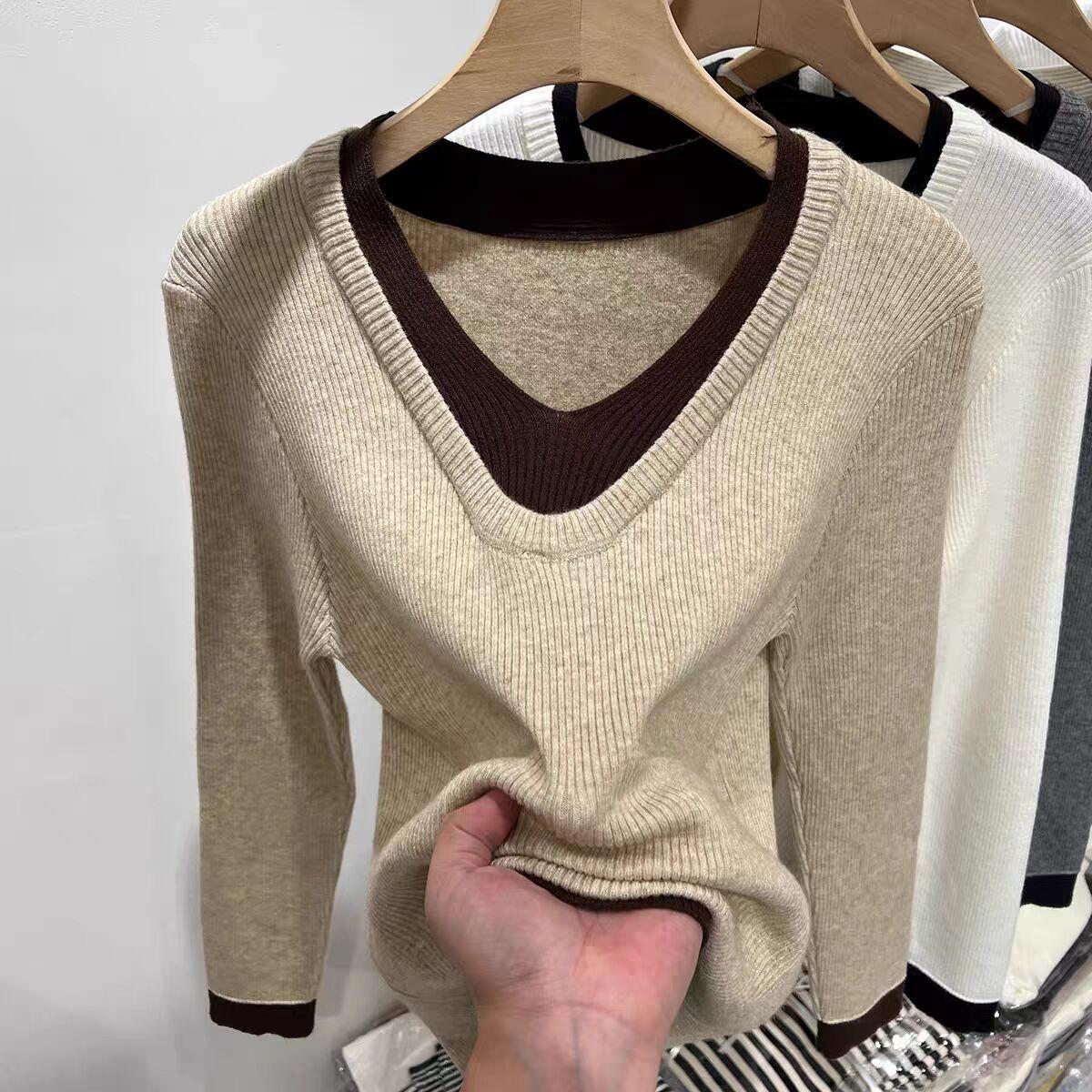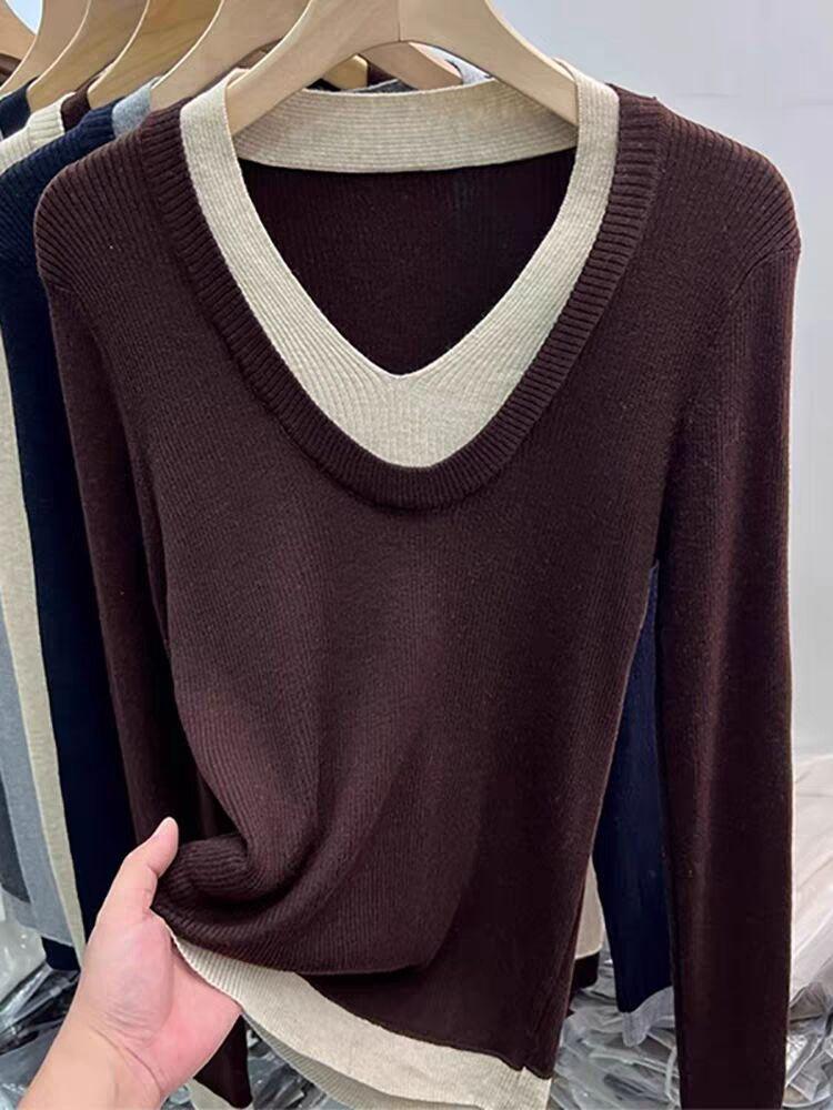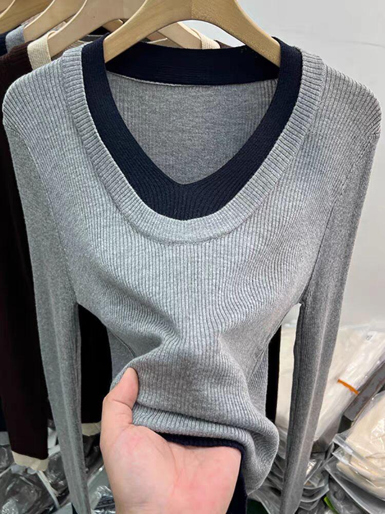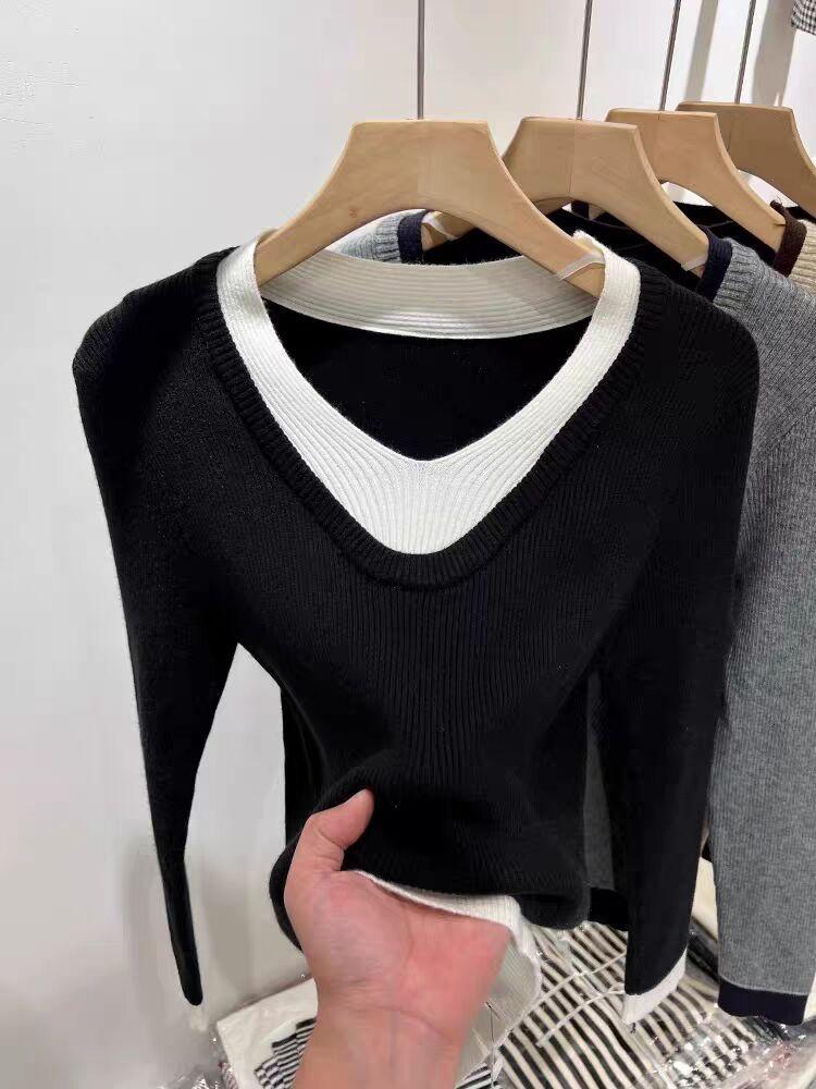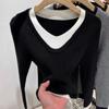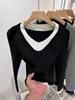 Suéter corto falso de dos piezas para mujer, nuevo estilo, cuello vuelto, ropa exterior, camisa básica tejida para mamá