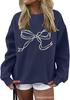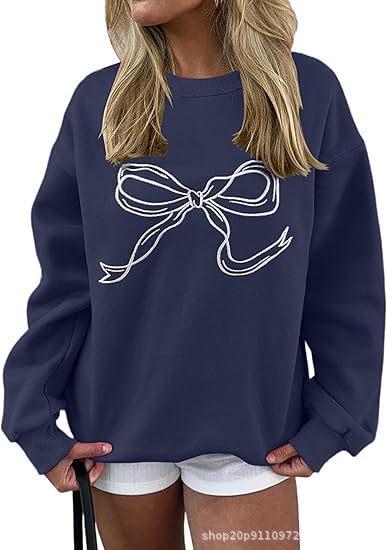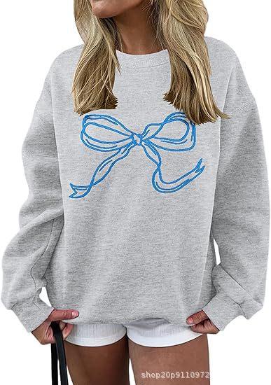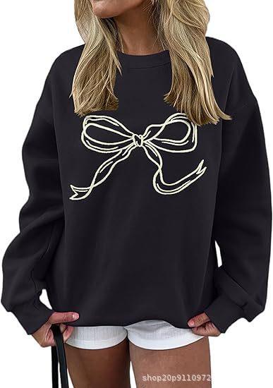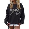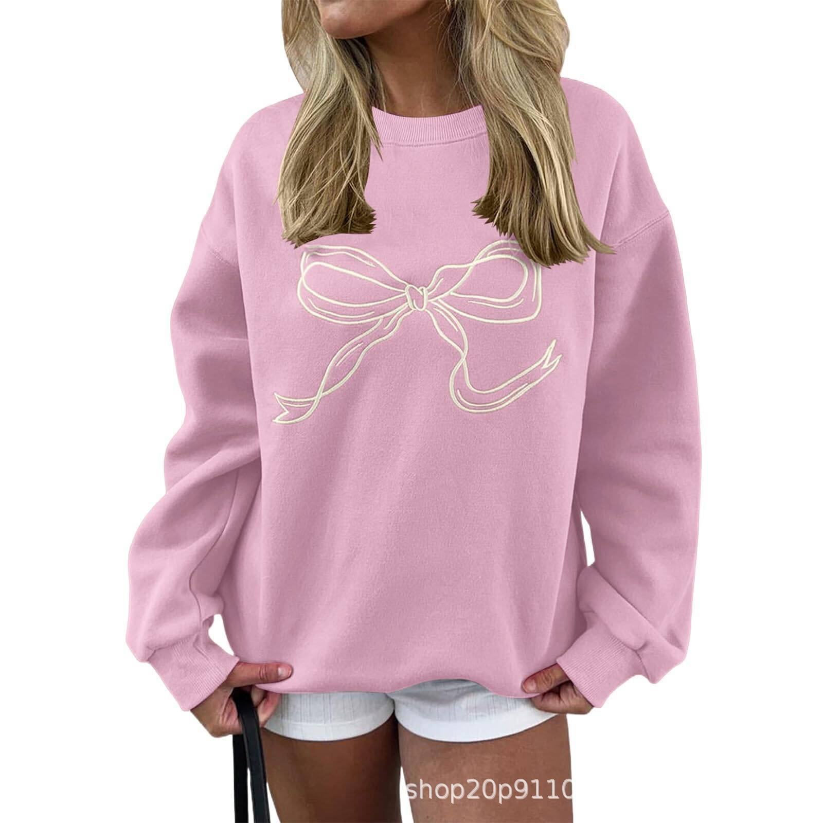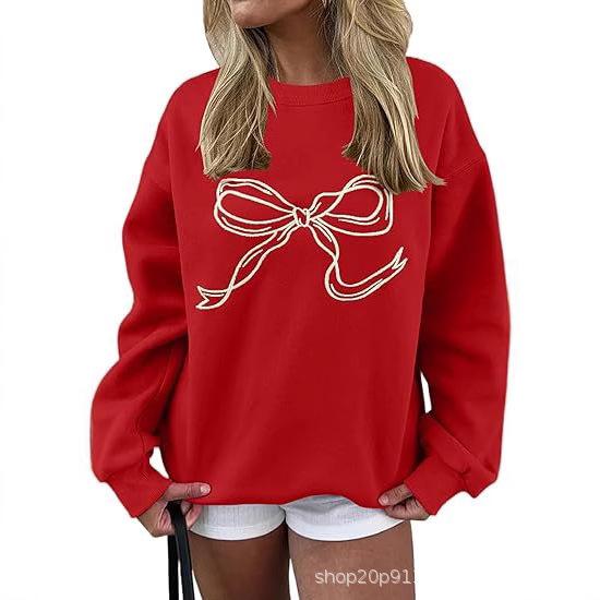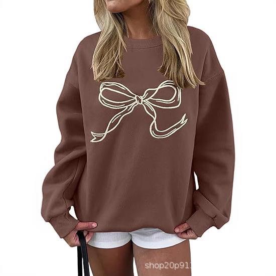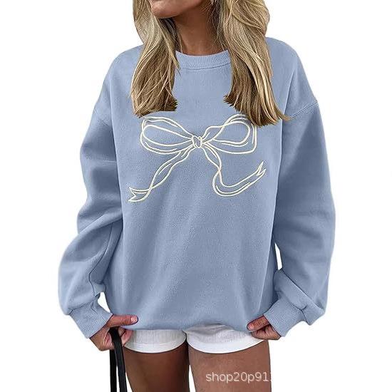 2025 Exclusivo Transfronterizo Europa y América Otoño e Invierno Sudadera de Manga Larga y Cuello Redondo Moda Estampado de Dibujos Animados Top con Lazo
