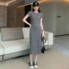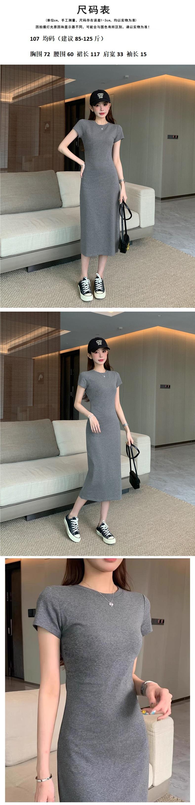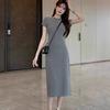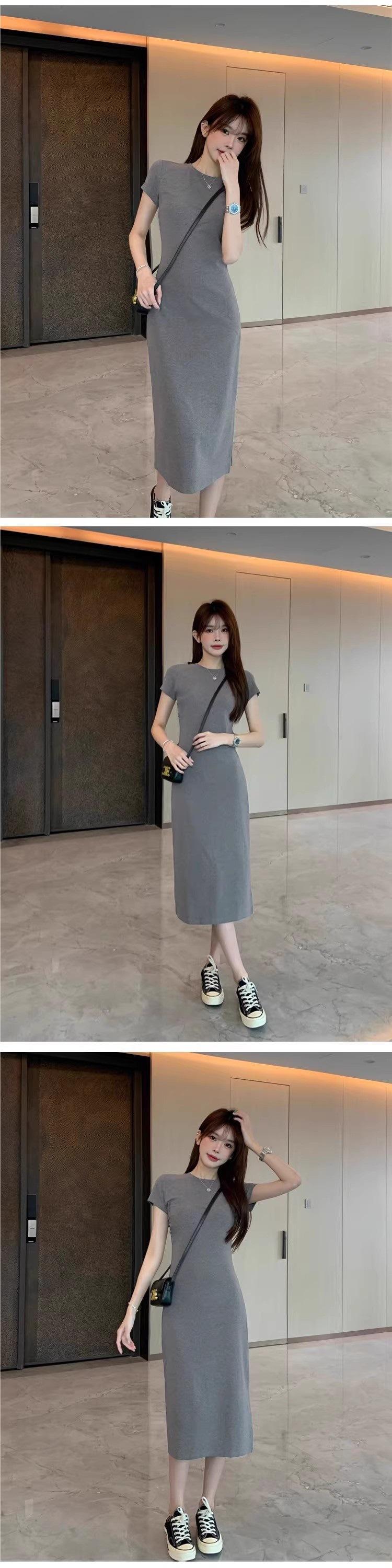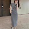 Vestido Largo de Verano de Manga Corta con Temperamento para Mujer 2025 Nuevo Adelgazante Vestido Casual Gris con Abertura Bodycon Tipo Camiseta