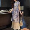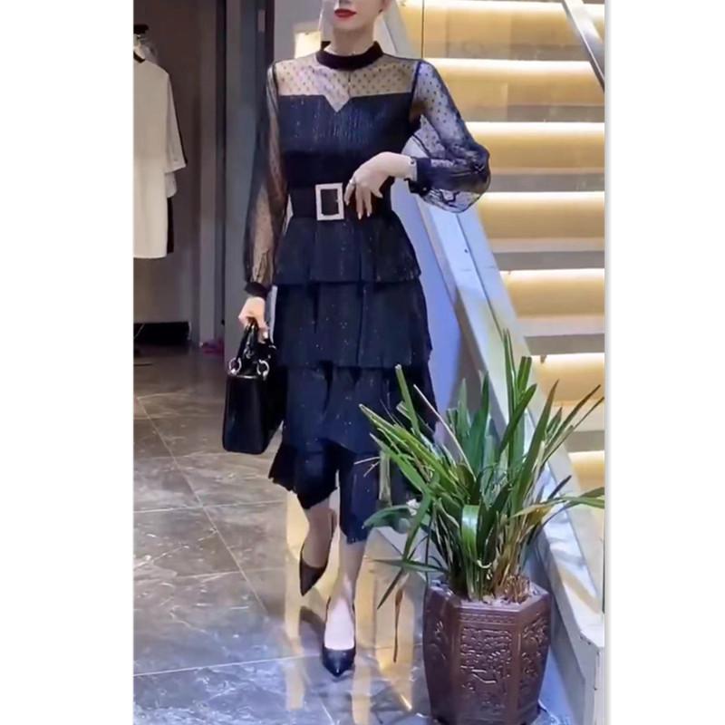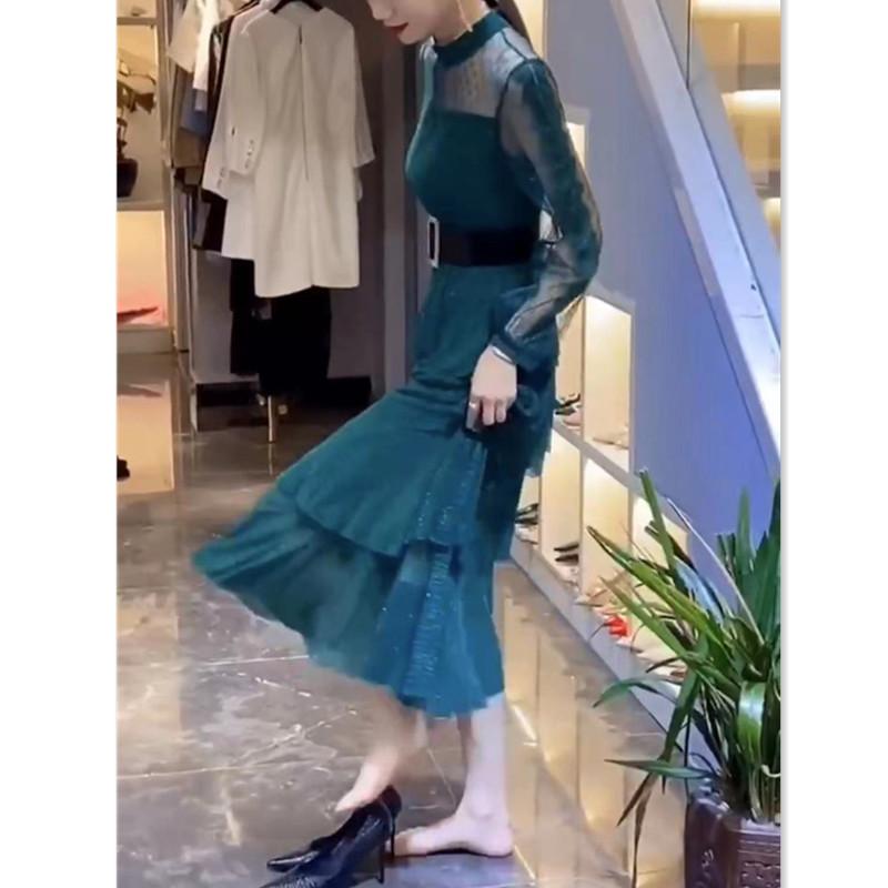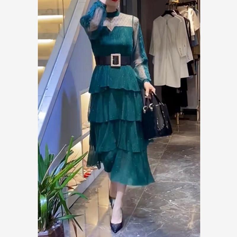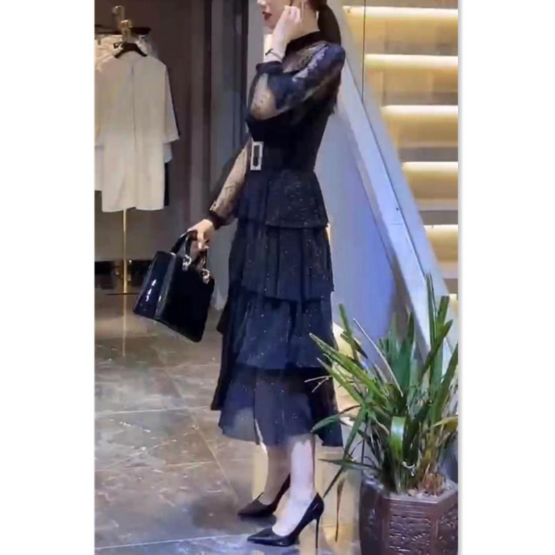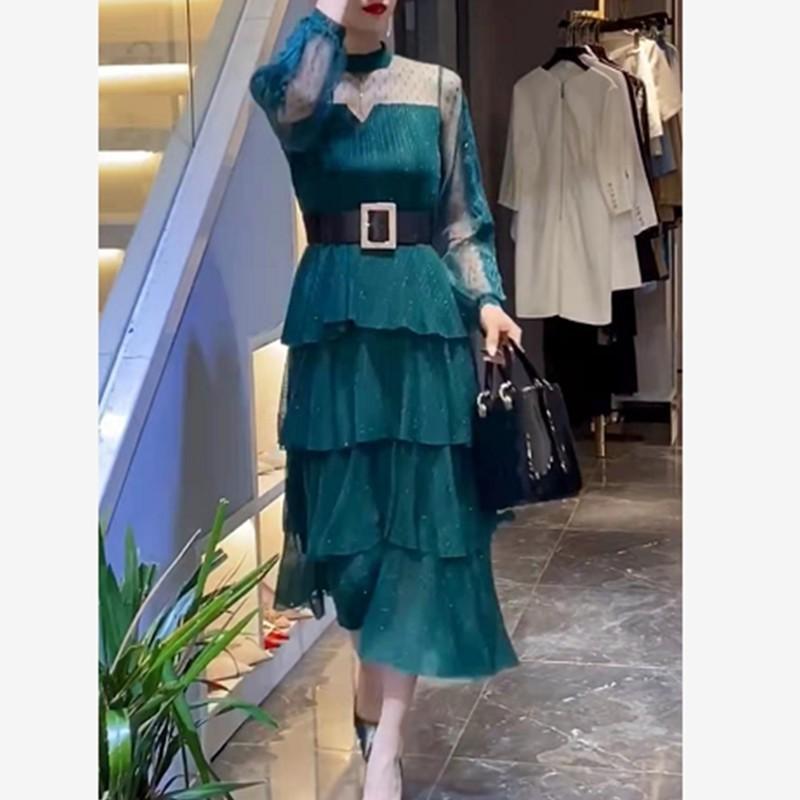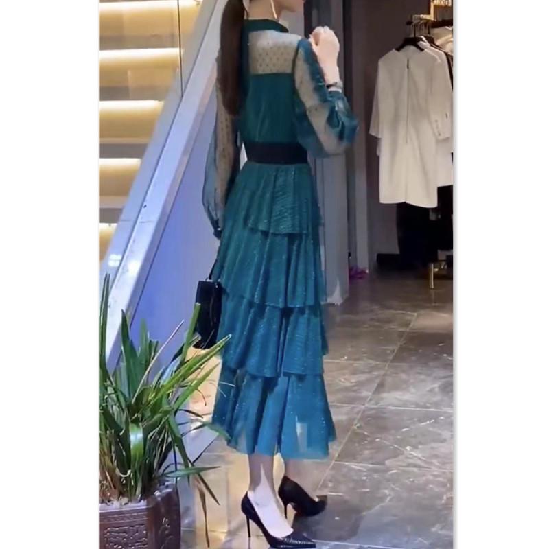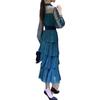 88239 gran belleza Yiyuan 2023 nuevo vestido azul de manga larga de gasa de malla hechizo largo delgado mujeres