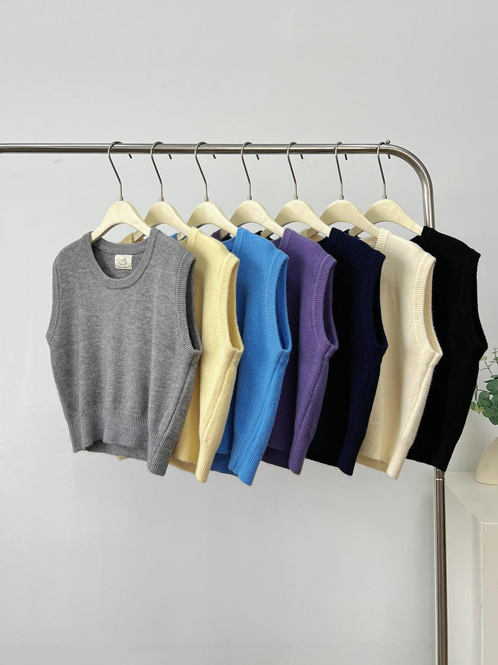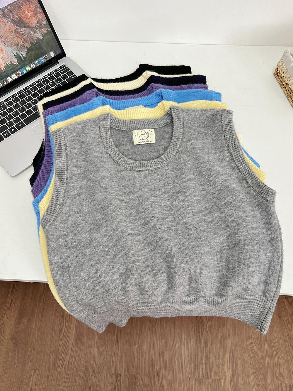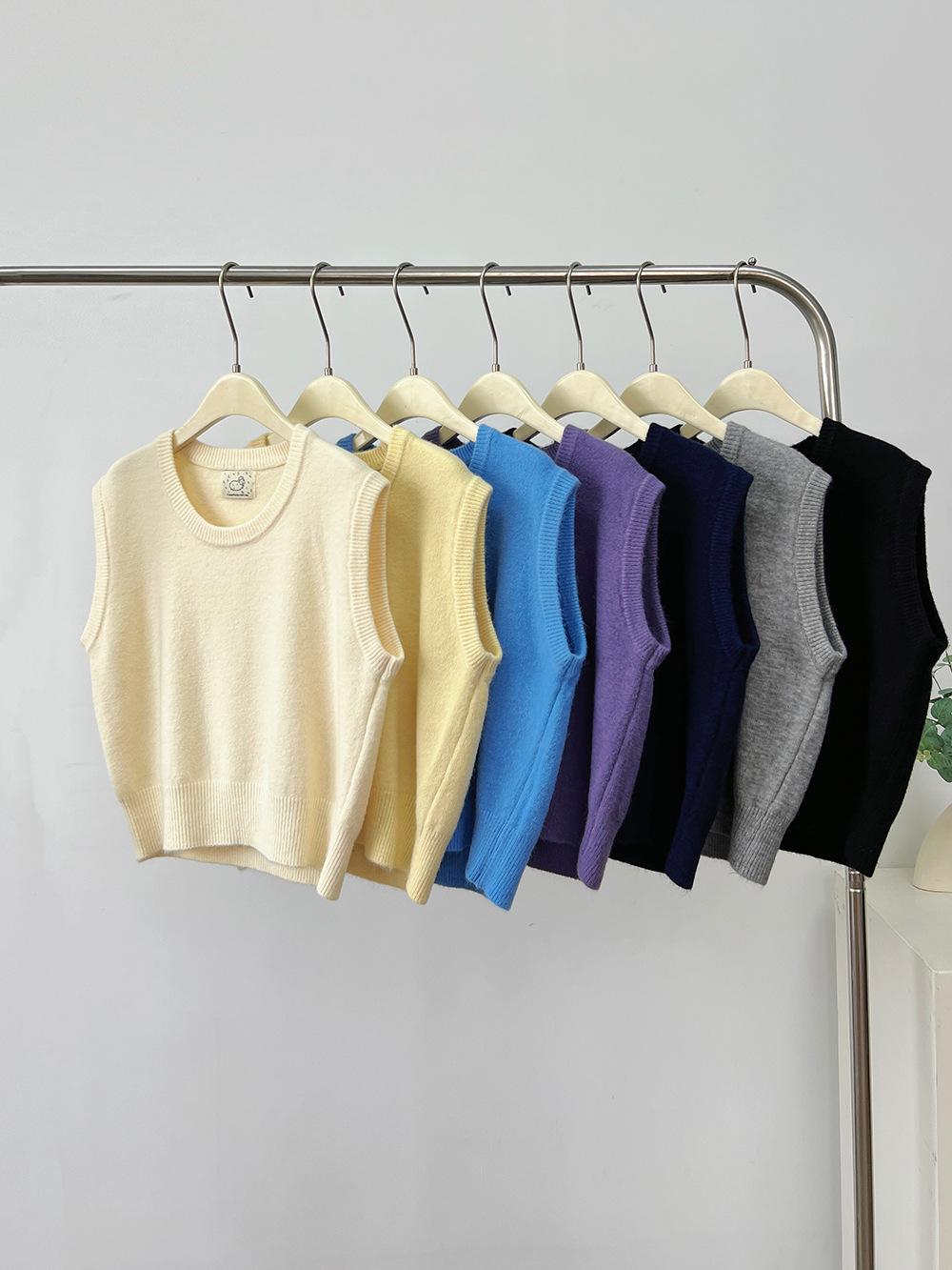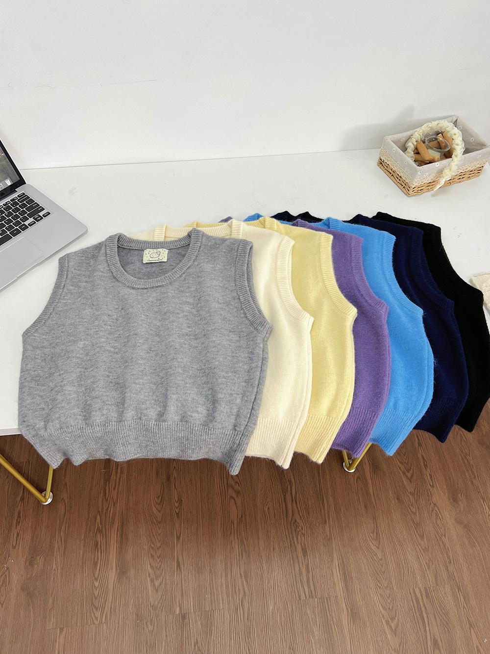 Otoño Nuevo Simple Color Sólido Básico Cuello Redondo Jersey sin Mangas Chaleco de Punto para Mujer Versátil Tank Top para Capas Top que Reduce la Edad