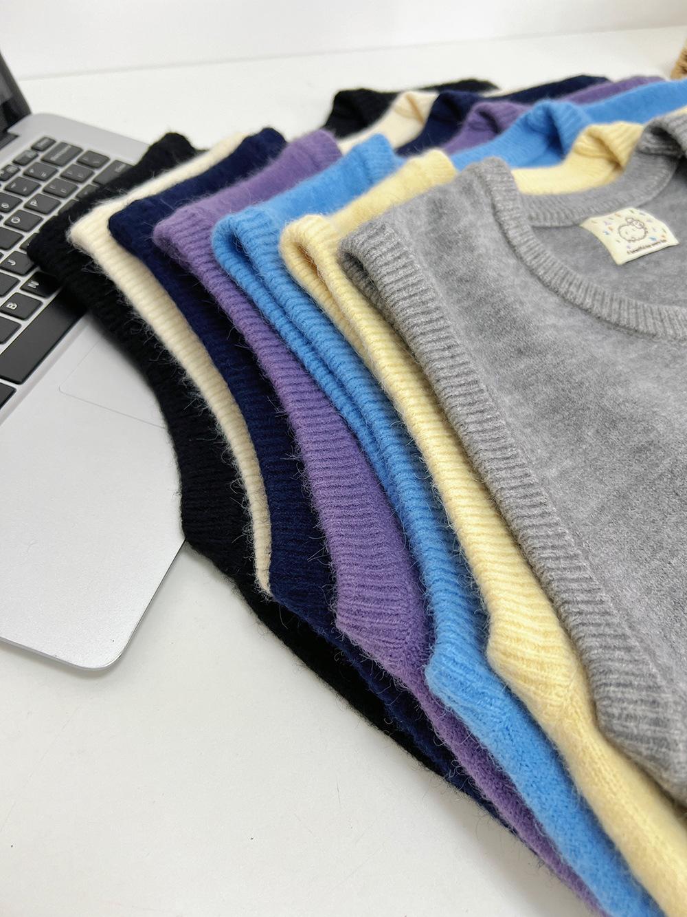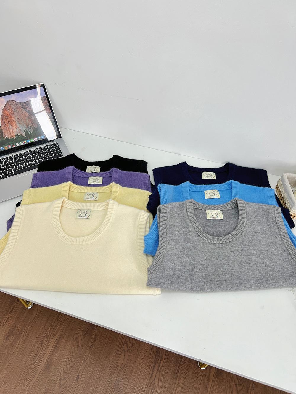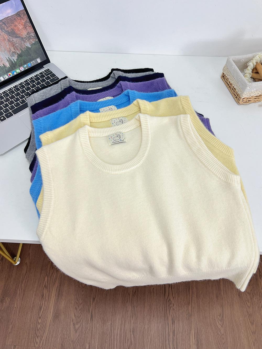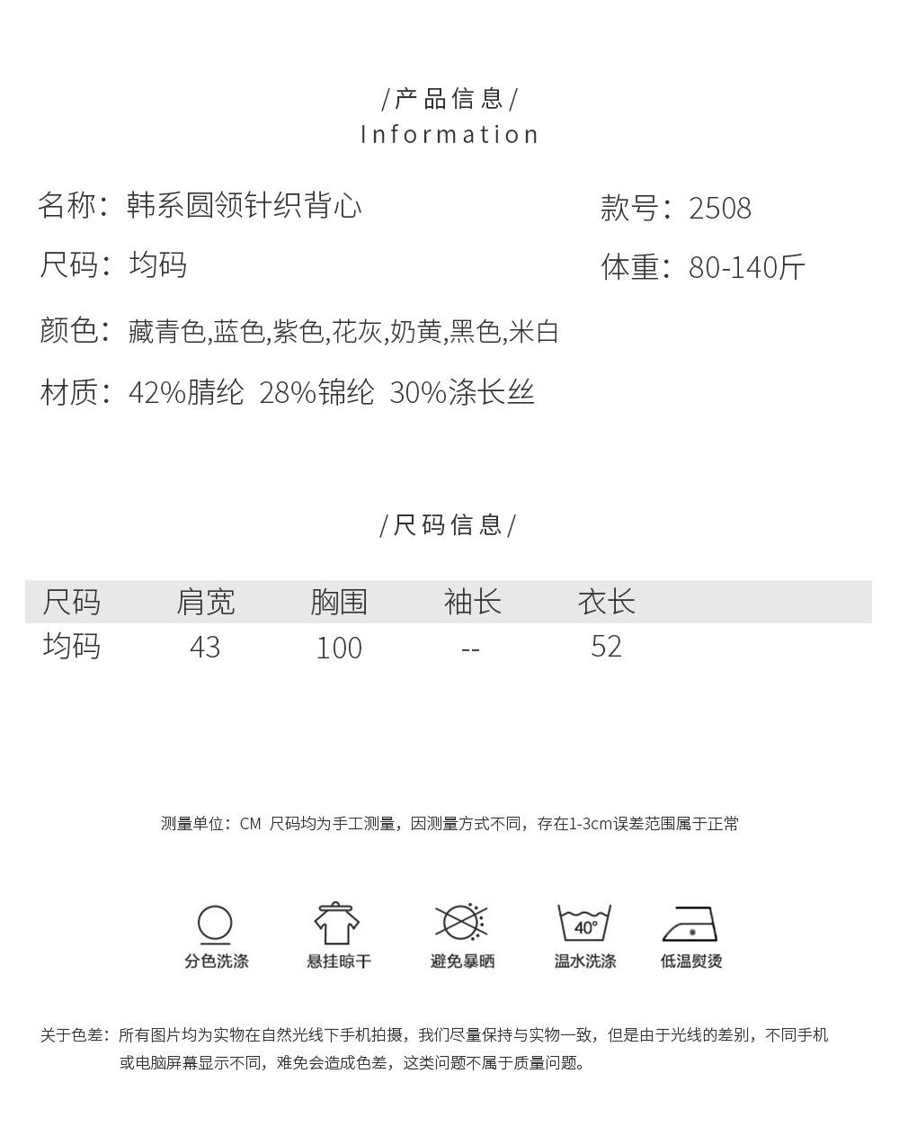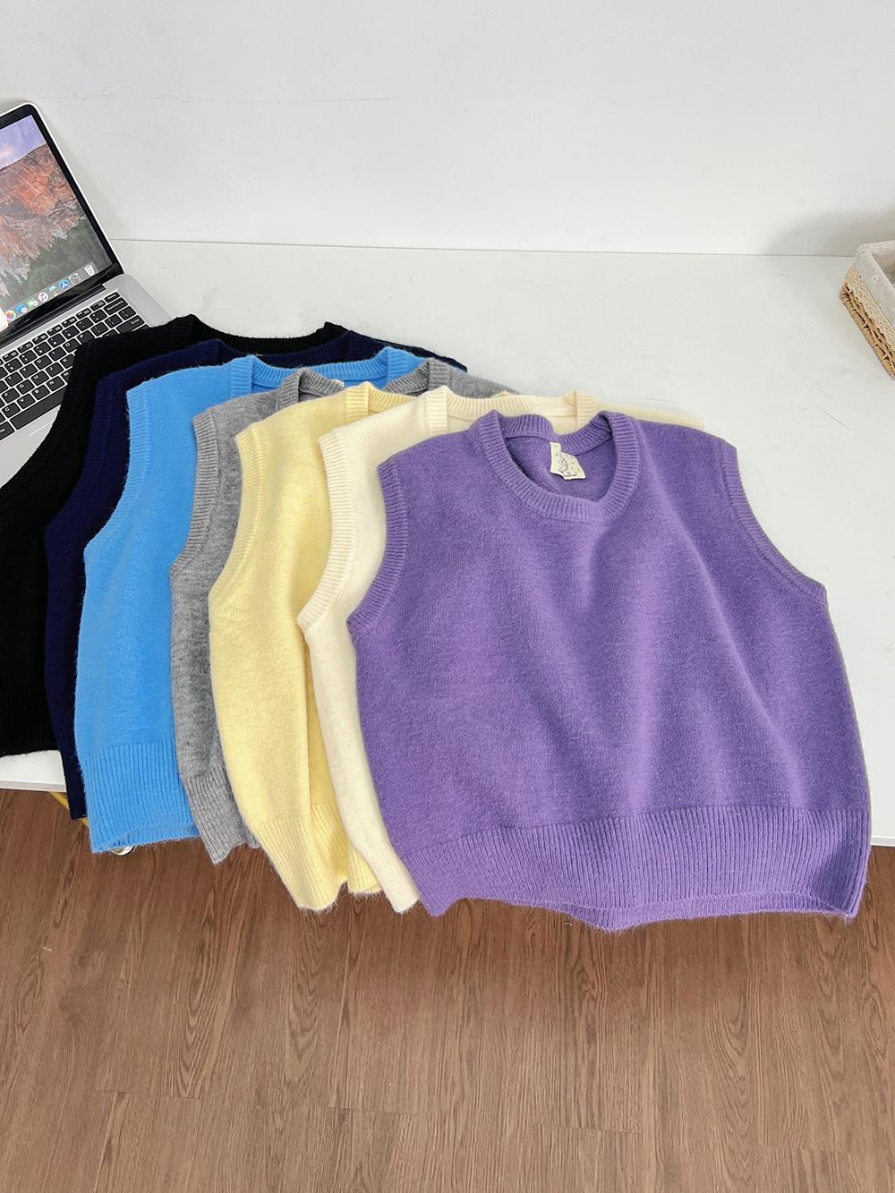 Otoño Nuevo Simple Color Sólido Básico Cuello Redondo Jersey sin Mangas Chaleco de Punto para Mujer Versátil Tank Top para Capas Top que Reduce la Edad