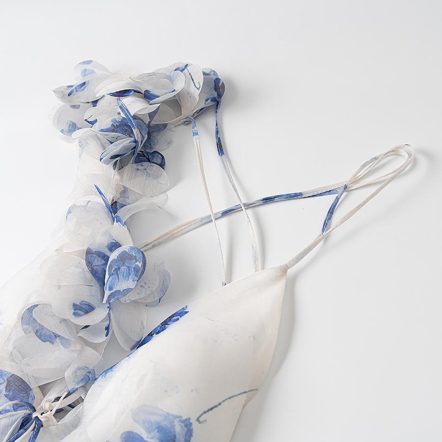 2025 Nueva Ropa de Verano para Mujer Estilo Europeo y Americano Moda Sencillo Vestido de Tirantes con Flores en la Cintura