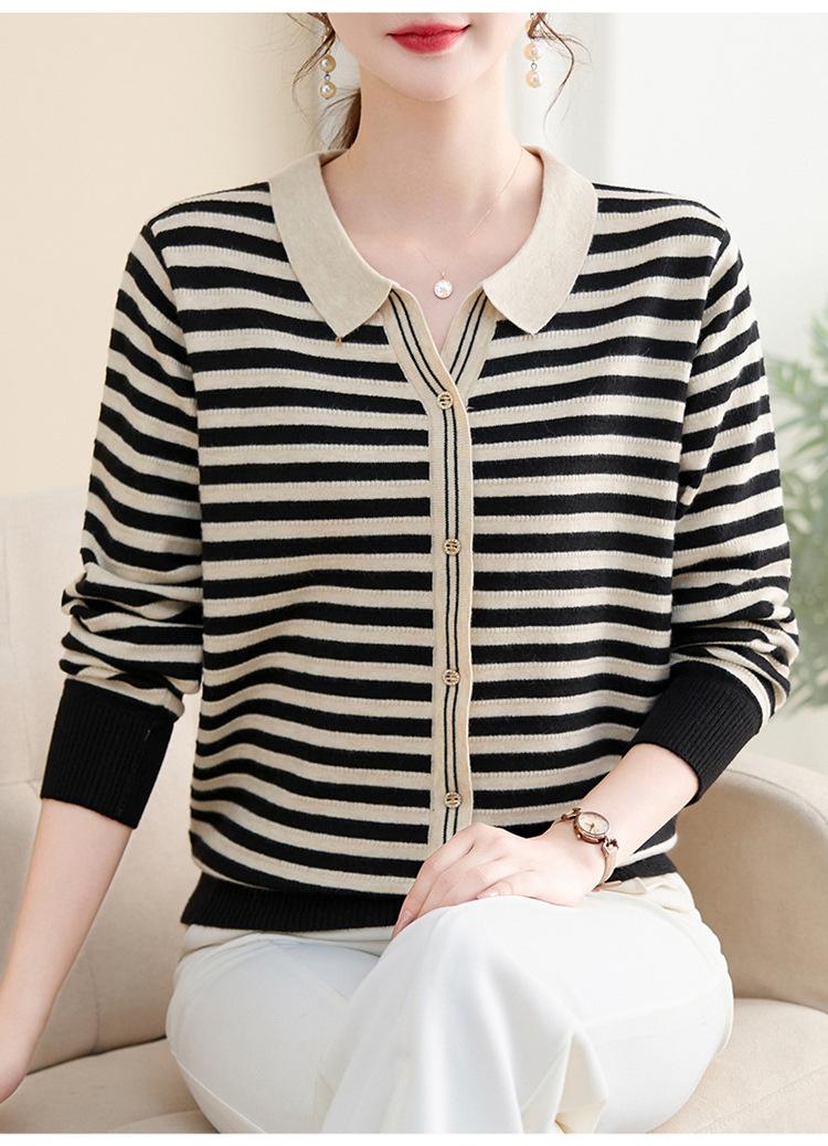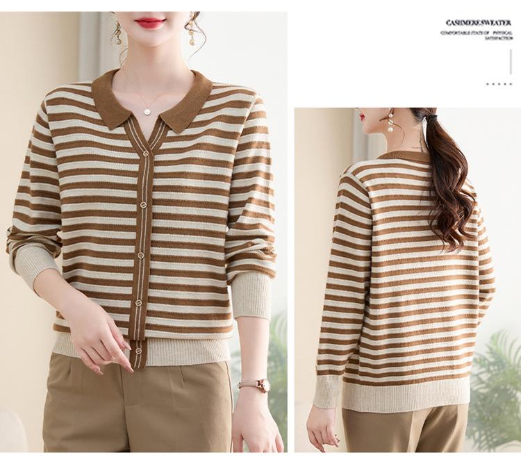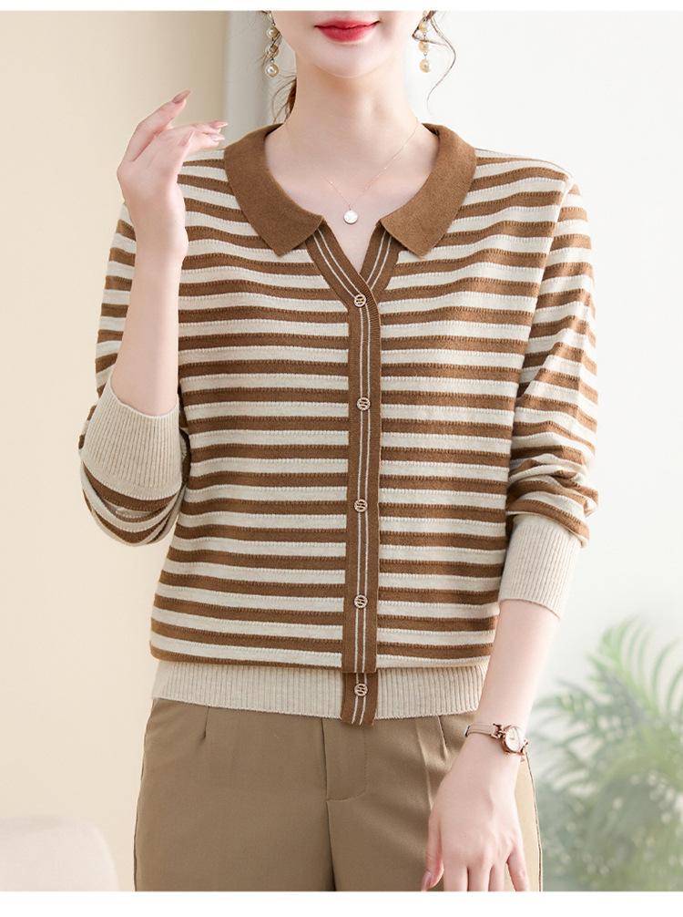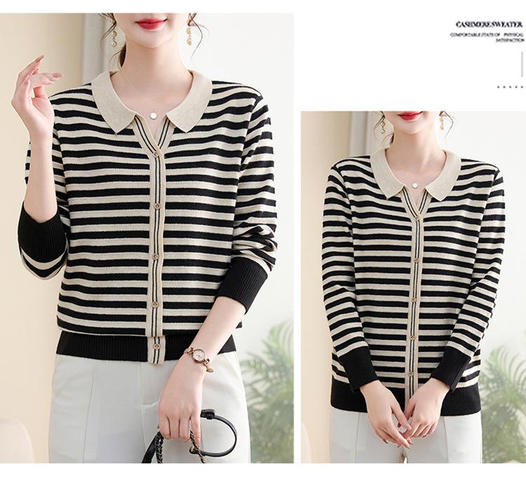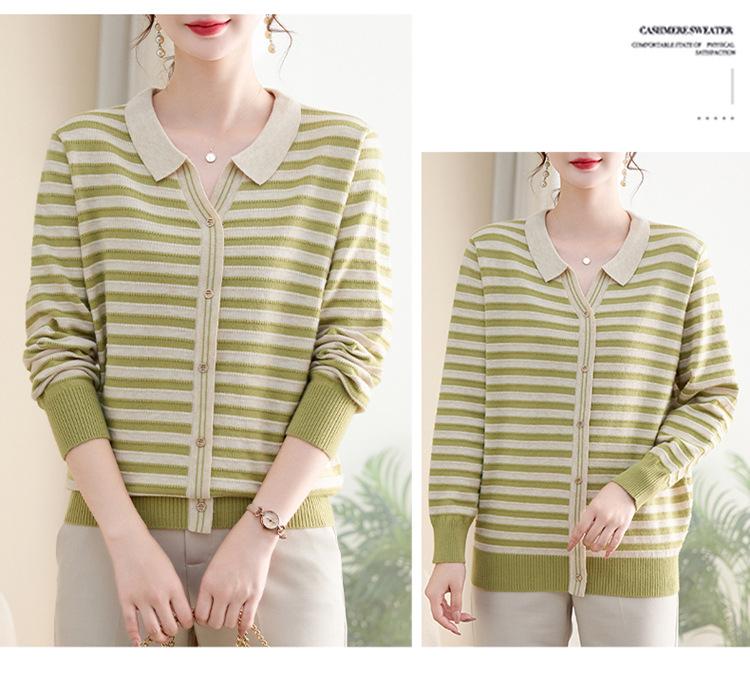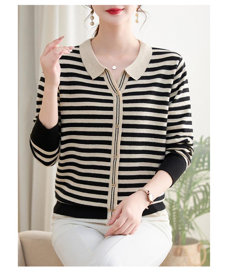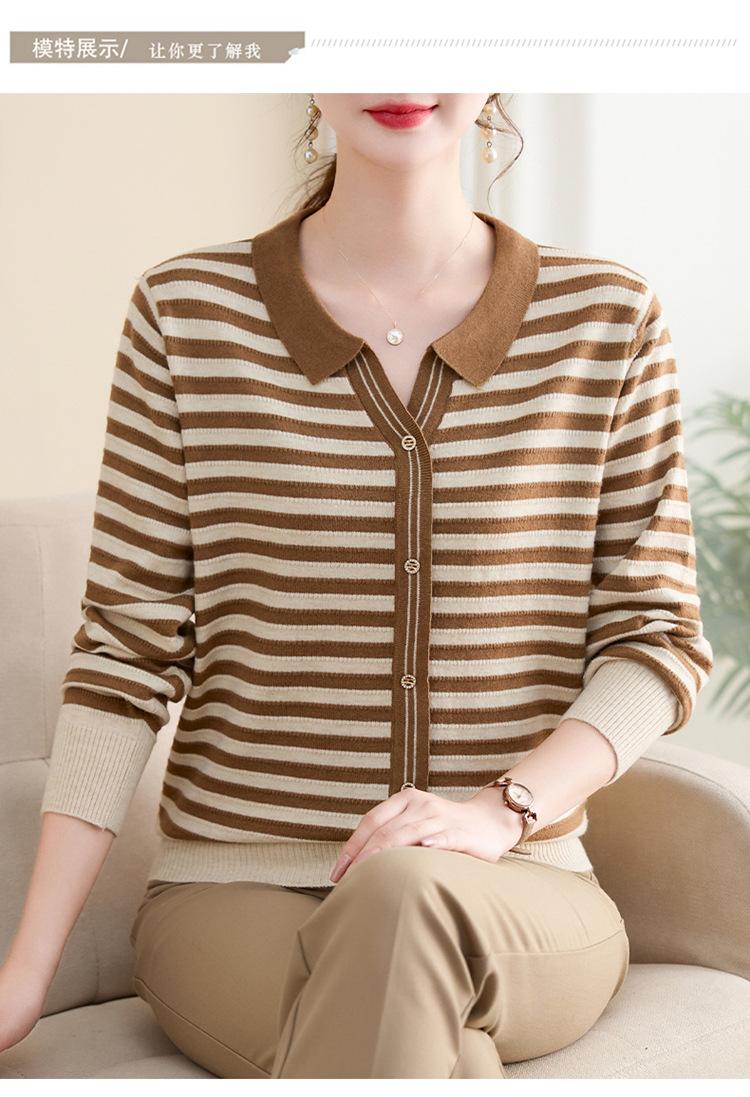 Blusa de Punto a Rayas de Moda de Otoño Temprano para Mamá con Cuello Vuelto Camisa Base Fina para Primavera/Otoño para Mujeres de Mediana Edad y Mayores Suéter