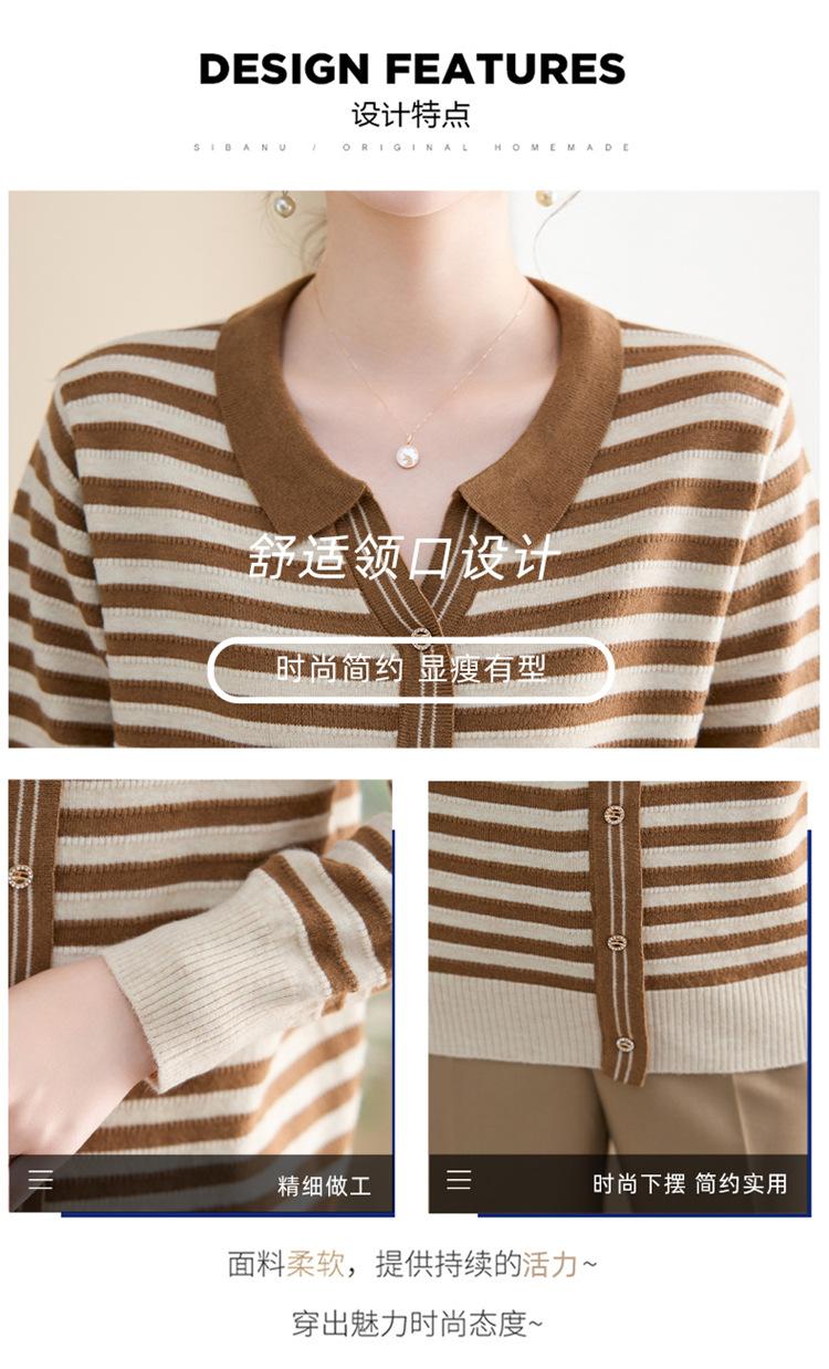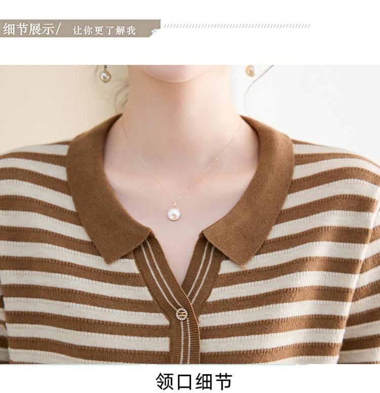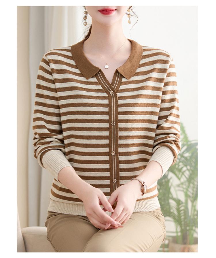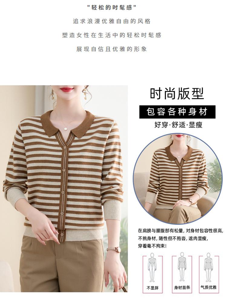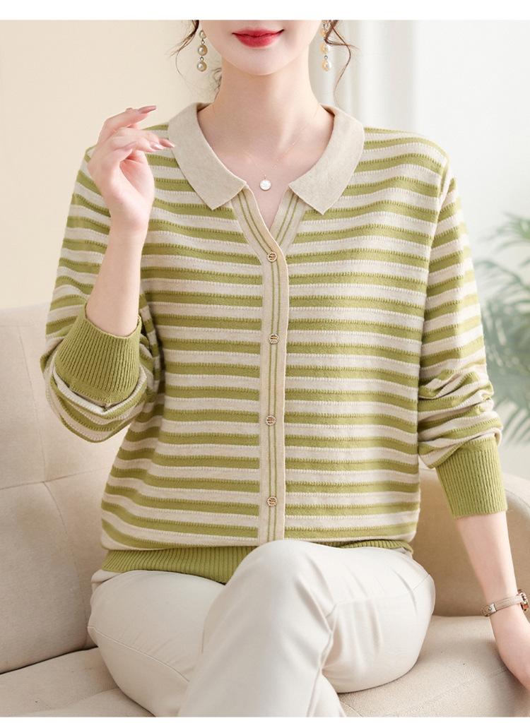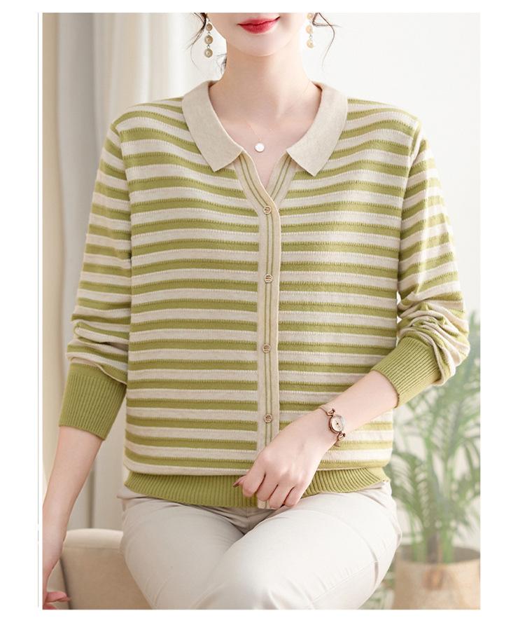 Blusa de Punto a Rayas de Moda de Otoño Temprano para Mamá con Cuello Vuelto Camisa Base Fina para Primavera/Otoño para Mujeres de Mediana Edad y Mayores Suéter