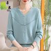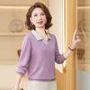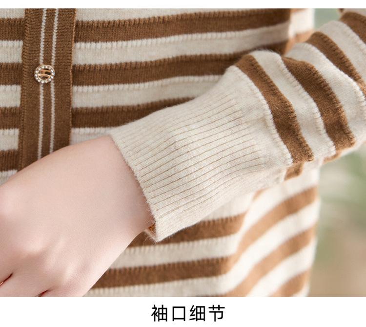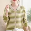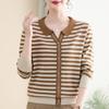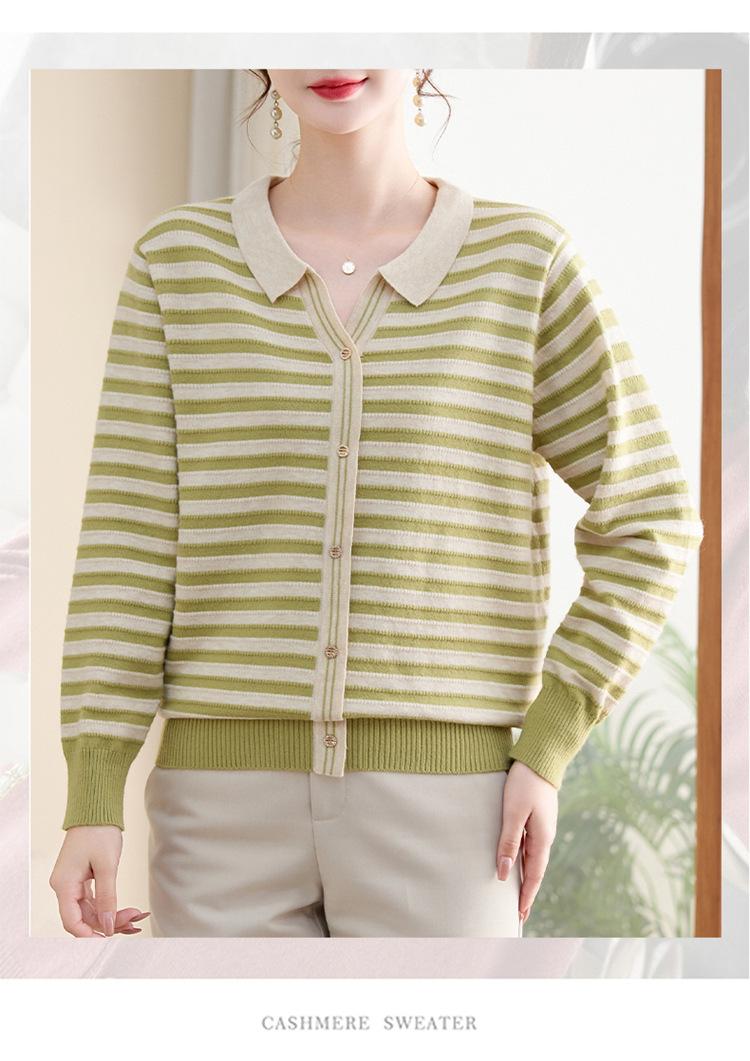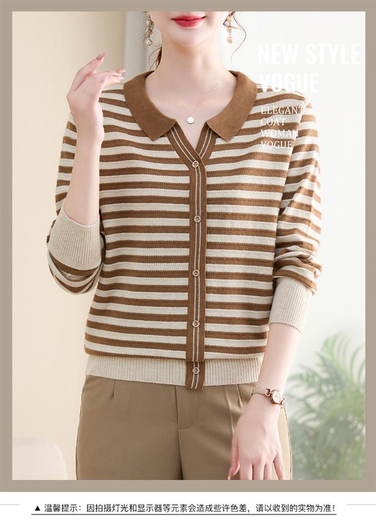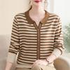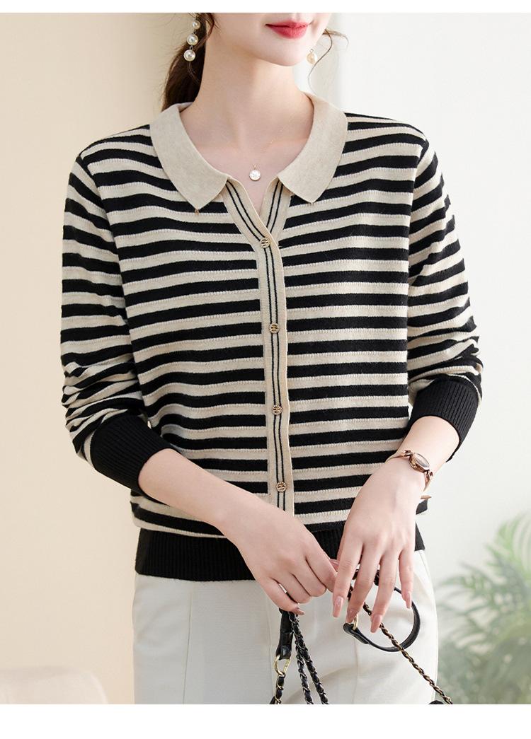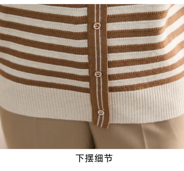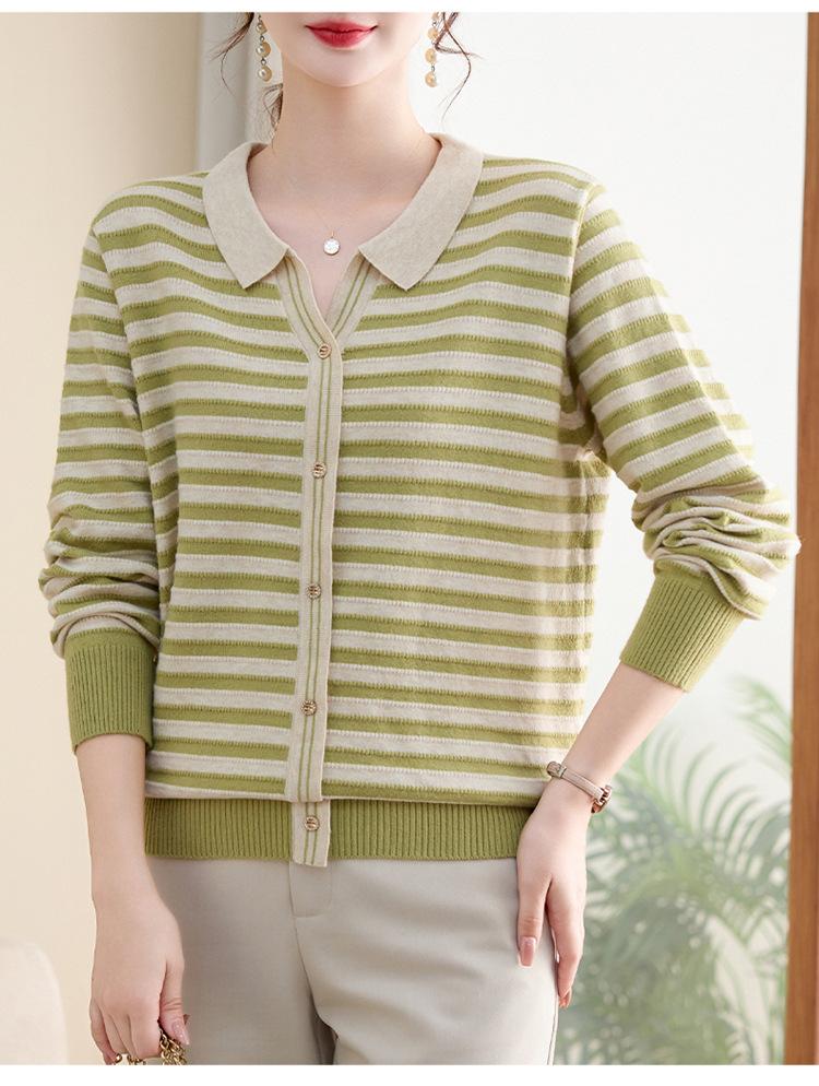 Blusa de Punto a Rayas de Moda de Otoño Temprano para Mamá con Cuello Vuelto Camisa Base Fina para Primavera/Otoño para Mujeres de Mediana Edad y Mayores Suéter