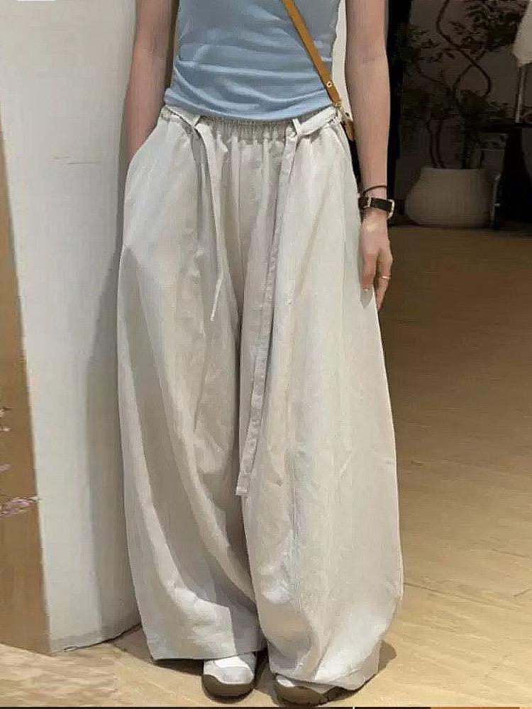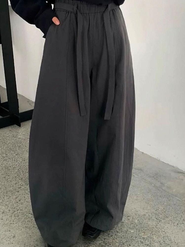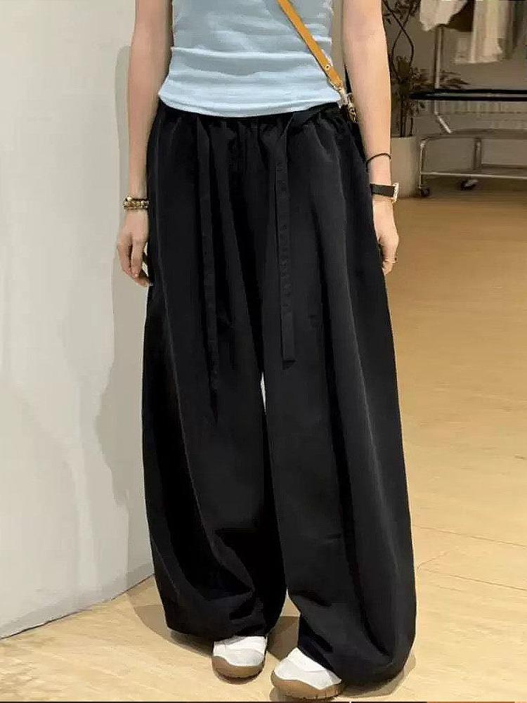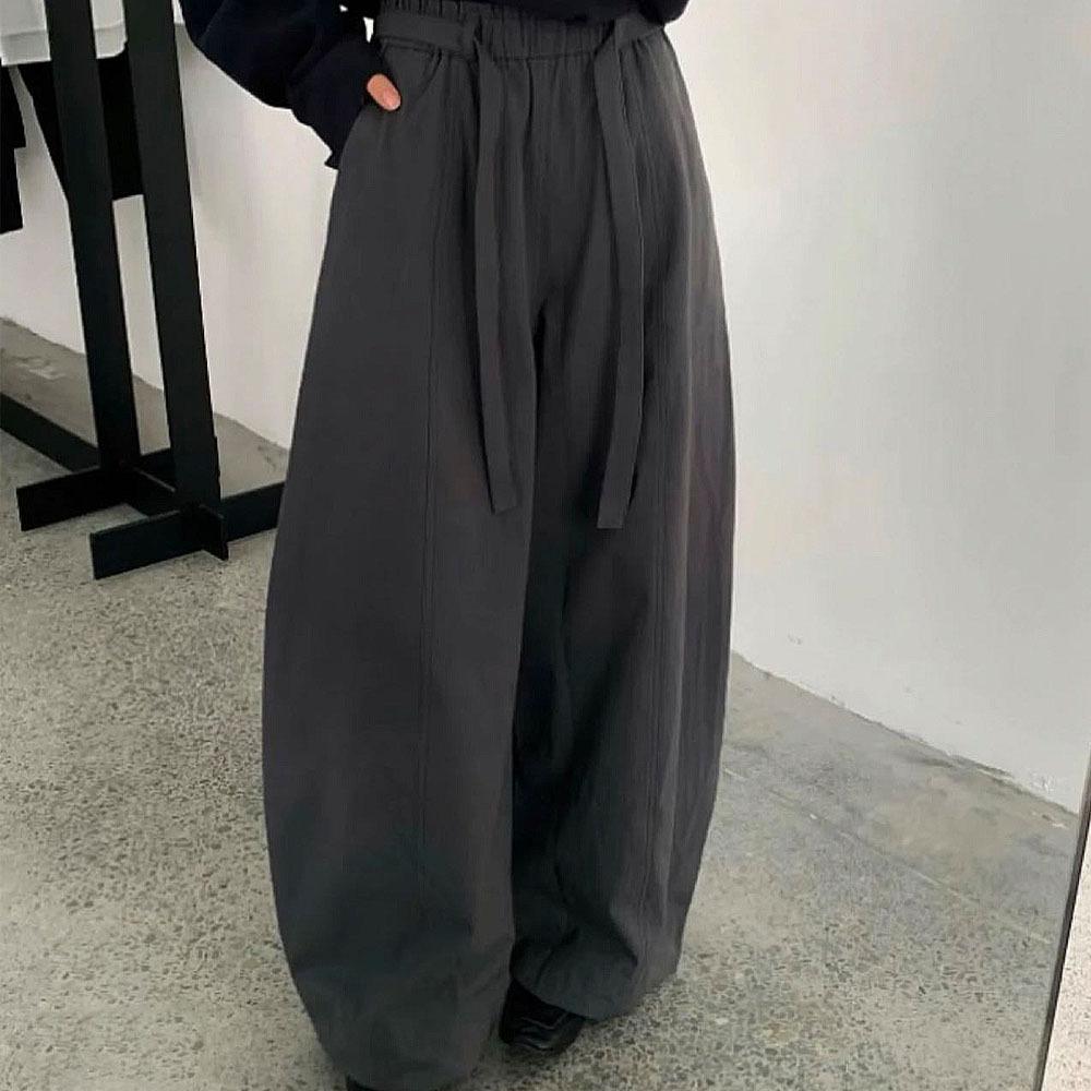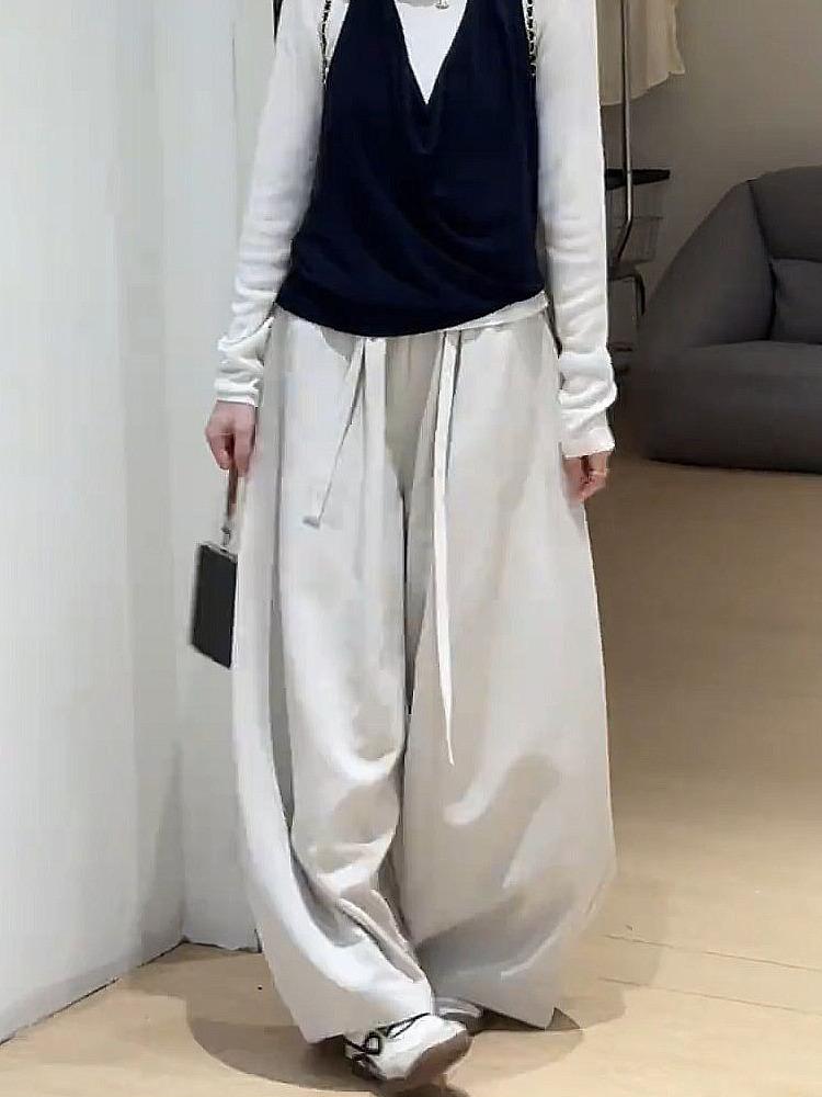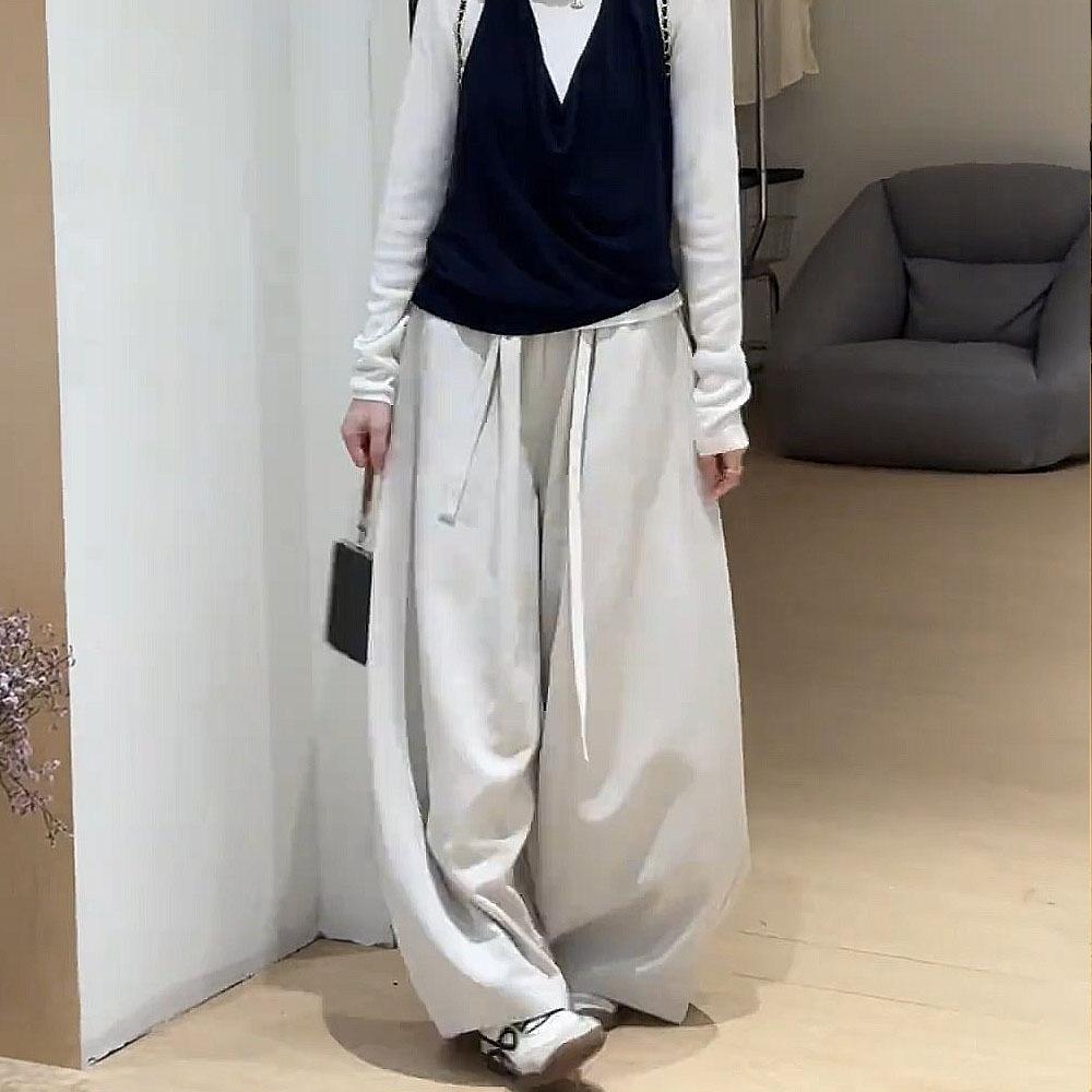 Ropa de mujer moderna y popular cuerpo en forma de pera pantalones casuales otoño nuevos de cintura alta drapeados pantalones de pierna ancha cubren la carne y hacen lucir delgados