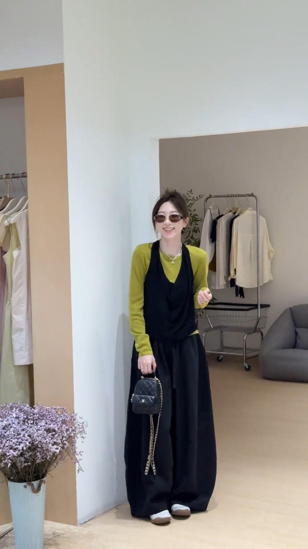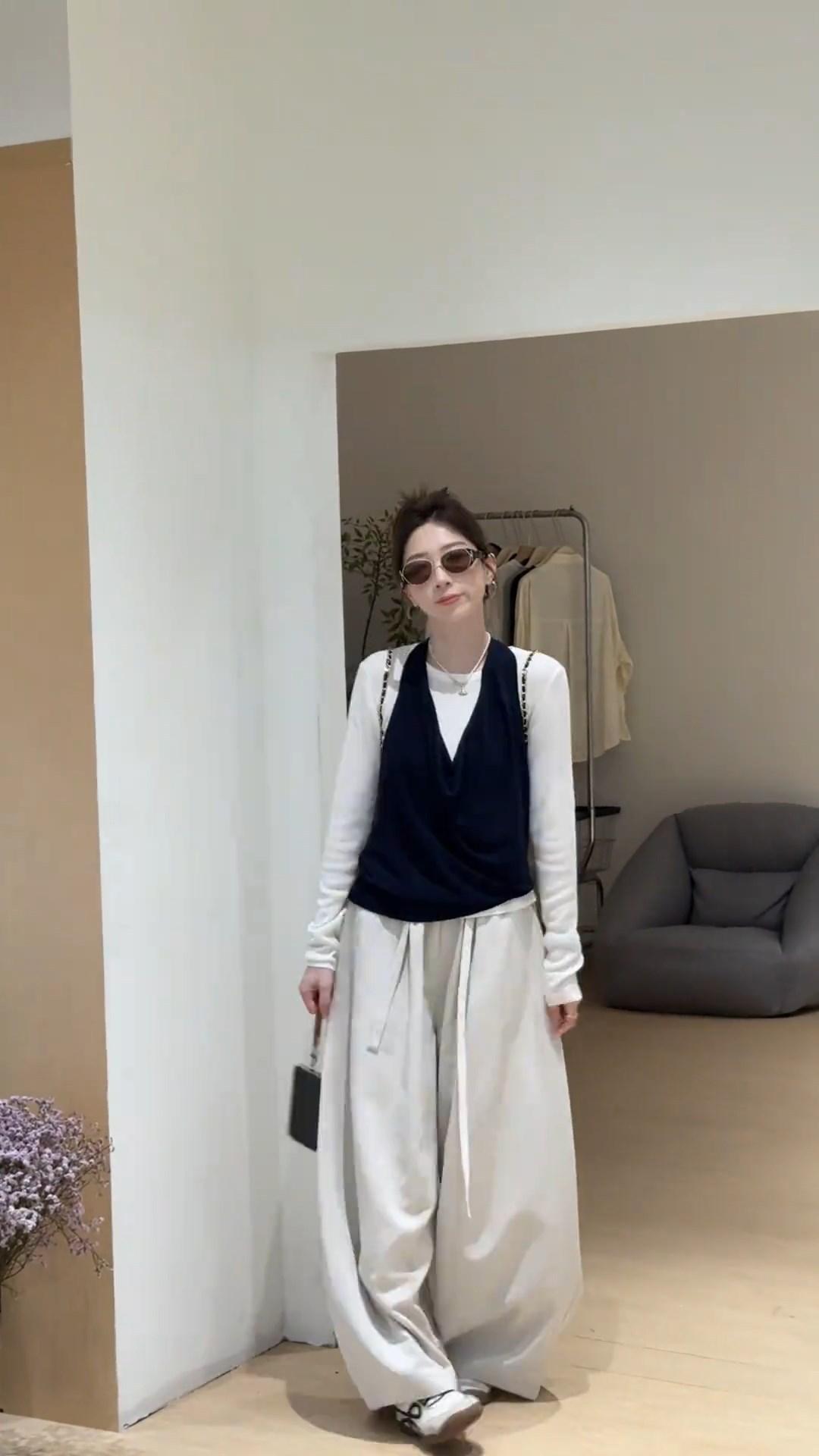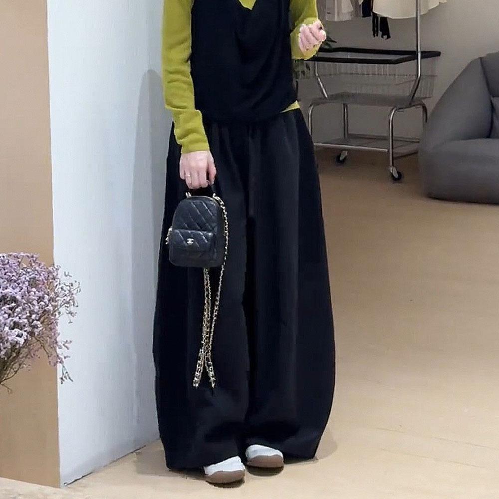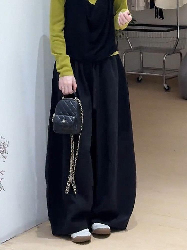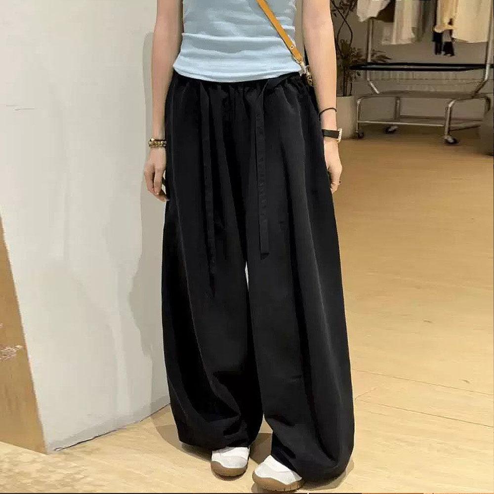 Ropa de mujer moderna y popular cuerpo en forma de pera pantalones casuales otoño nuevos de cintura alta drapeados pantalones de pierna ancha cubren la carne y hacen lucir delgados