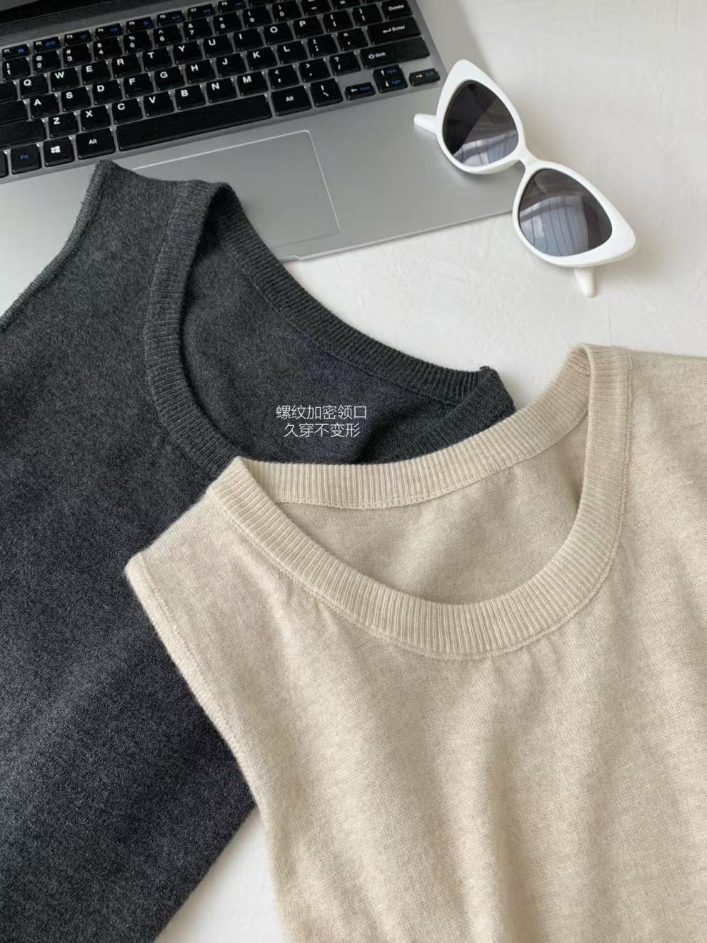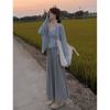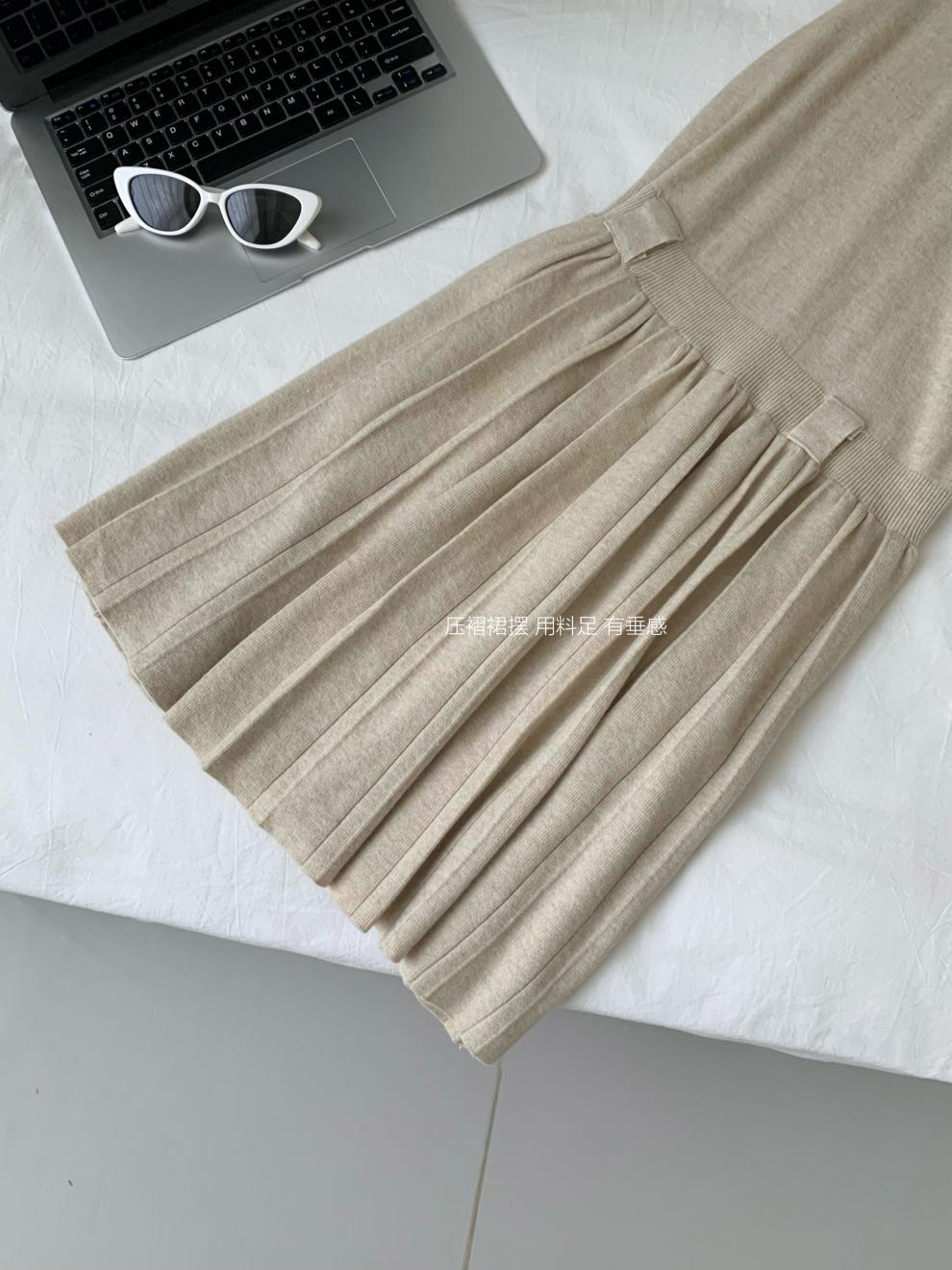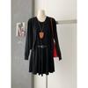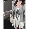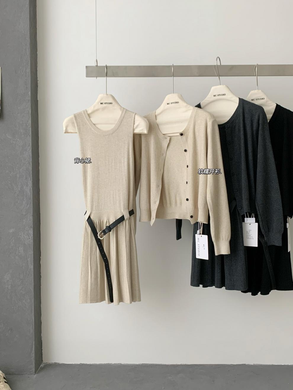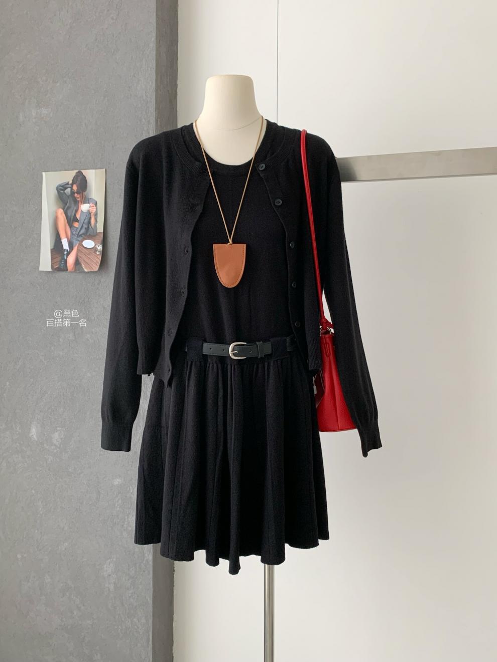 Suéter cárdigan de estilo coreano holgado, suave y versátil con cuello redondo + vestido chaleco plisado con cinturón
