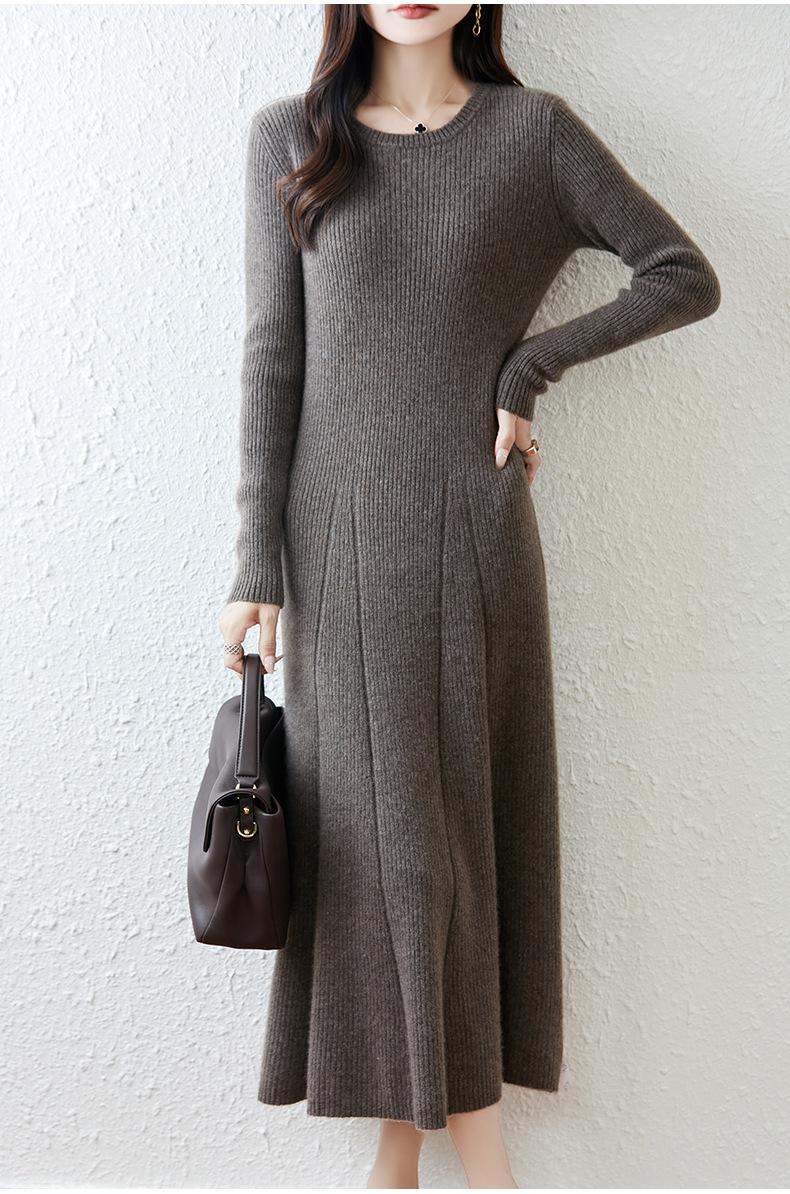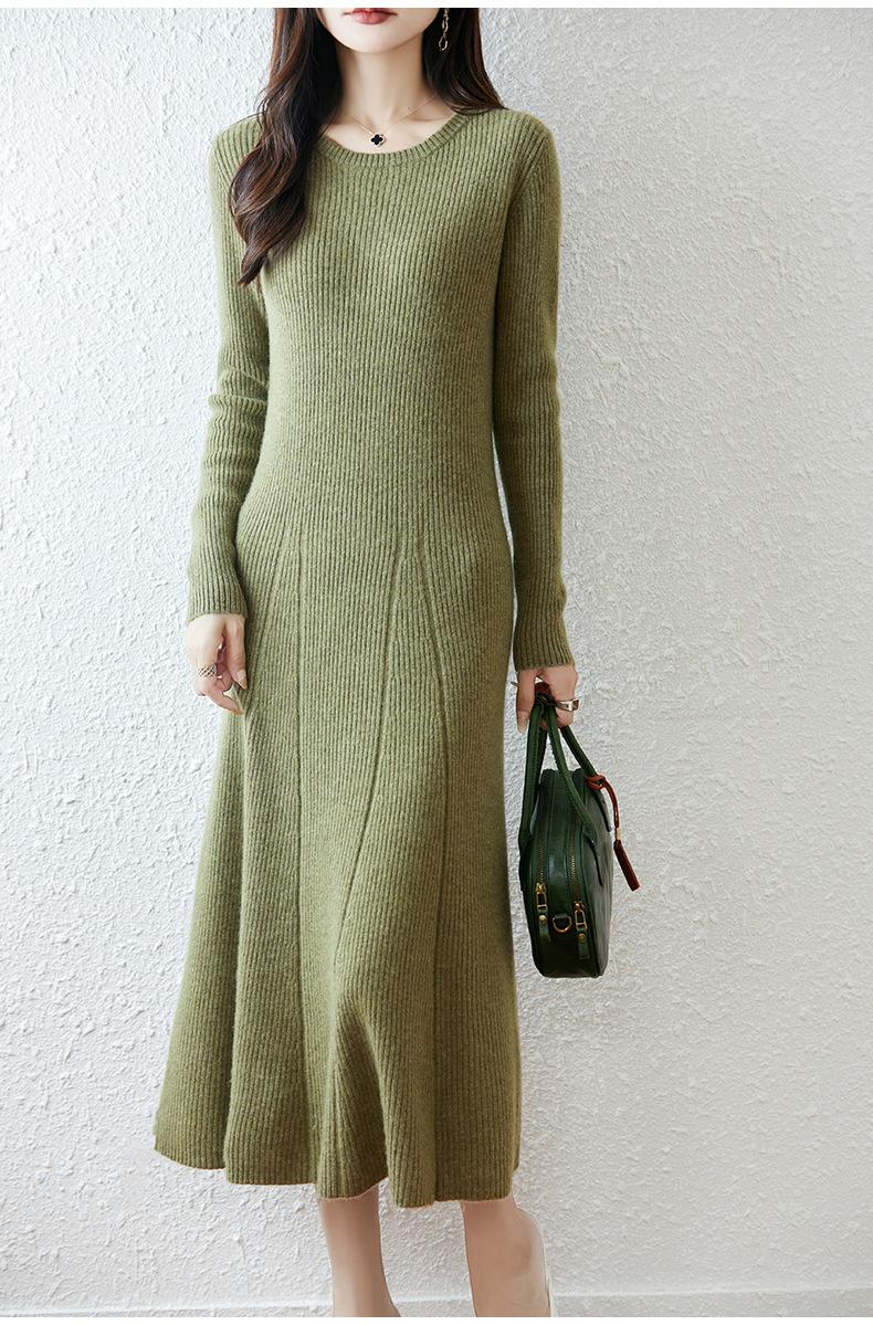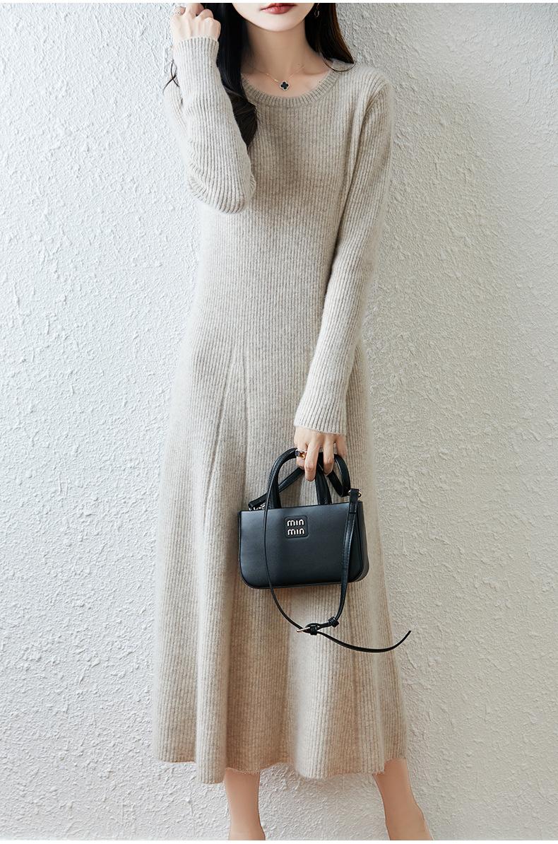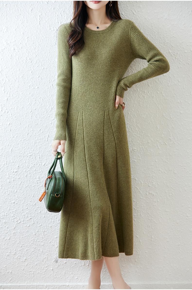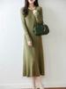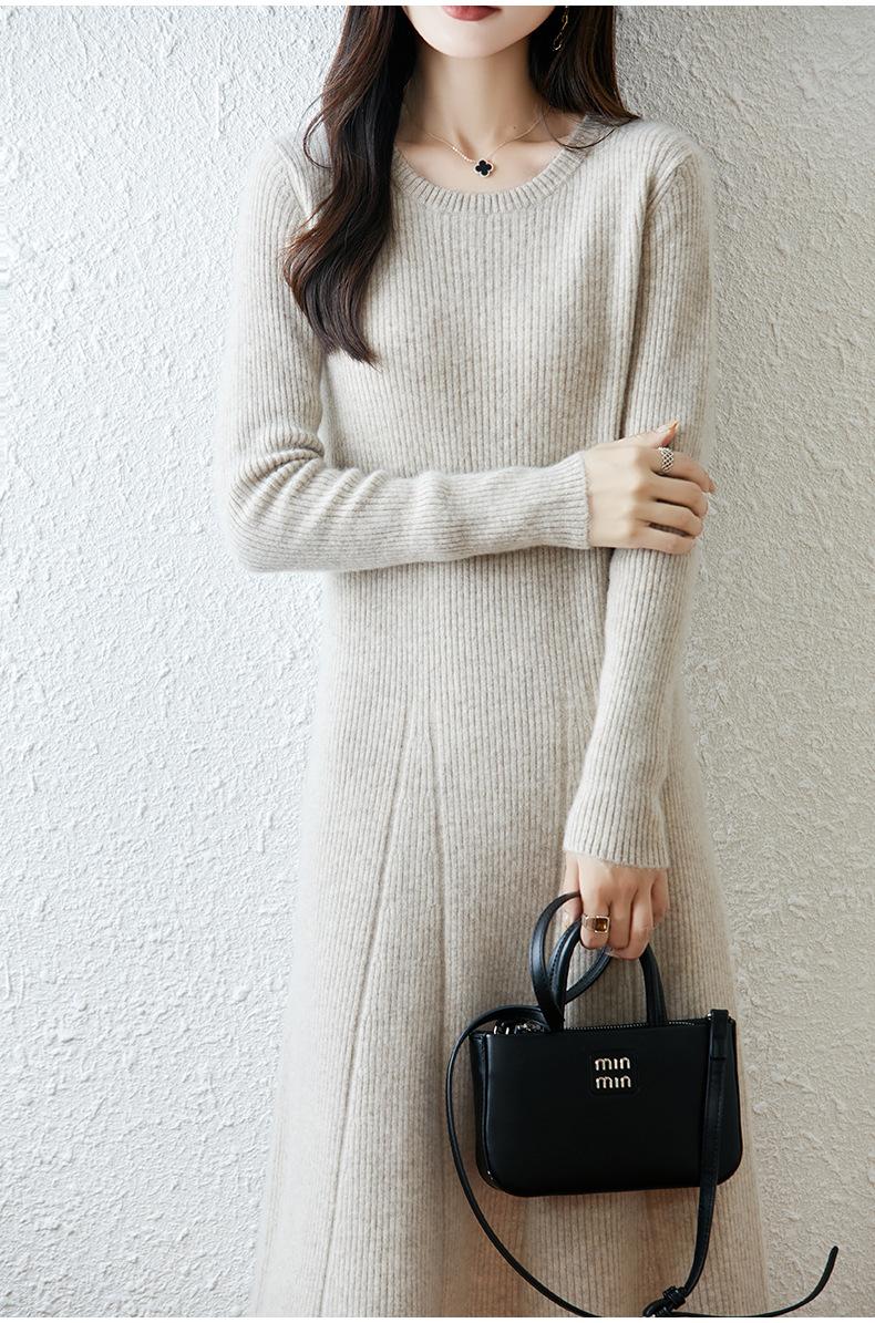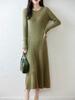 Vestido de Punto de Lana Pura 100% de Cuello Redondo Francés para Mujer 2025 Nuevo Largo por Encima de la Rodilla Adelgazante Vestido de Lana Cashmere