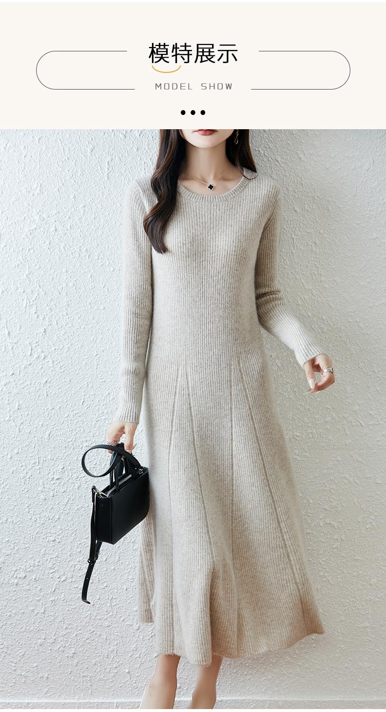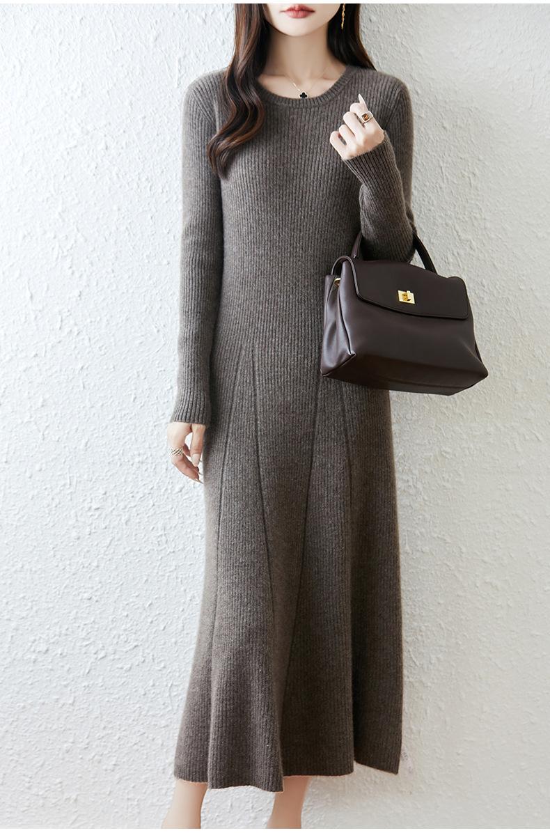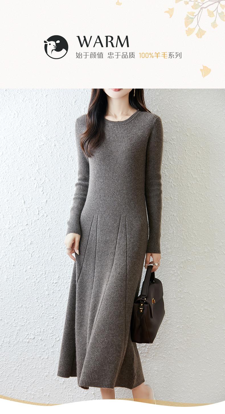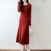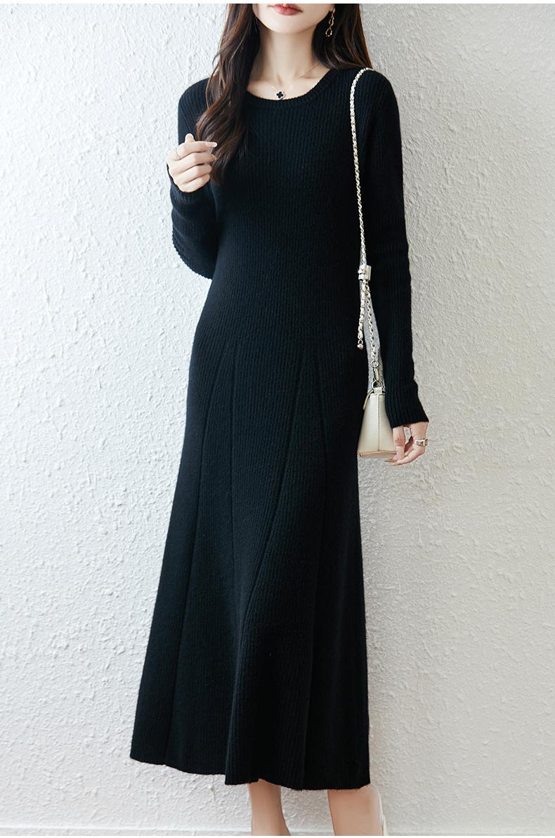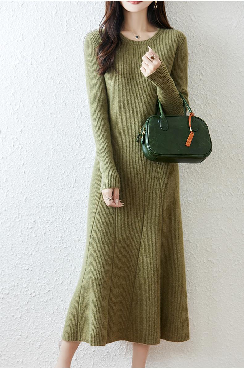 Vestido de Punto de Lana Pura 100% de Cuello Redondo Francés para Mujer 2025 Nuevo Largo por Encima de la Rodilla Adelgazante Vestido de Lana Cashmere