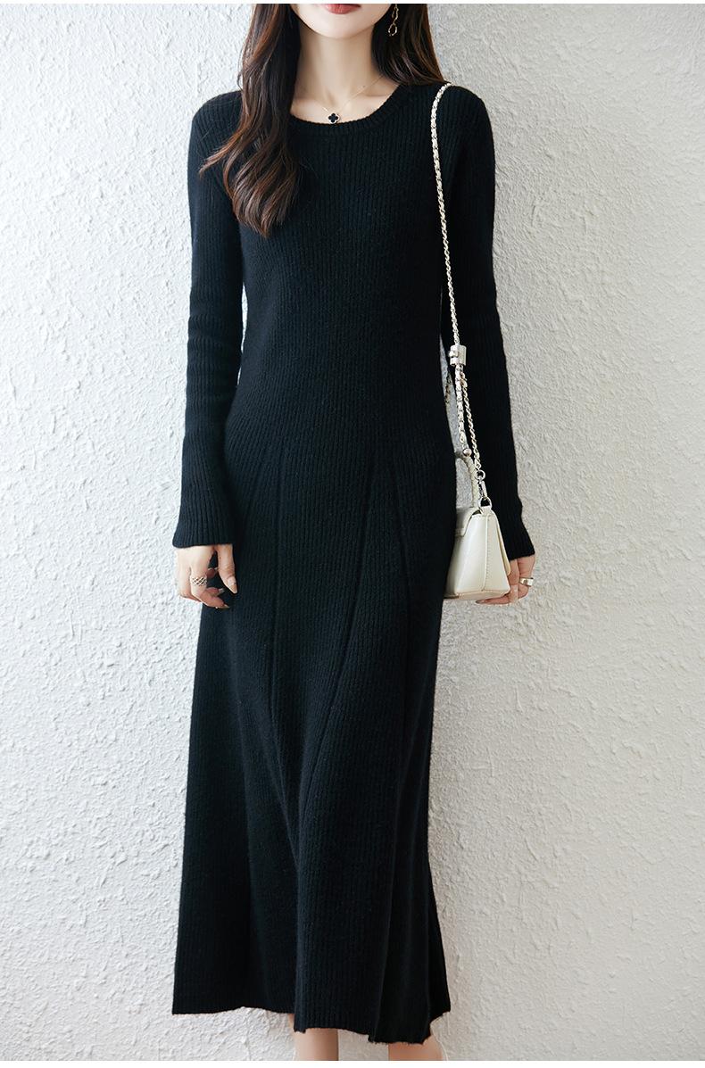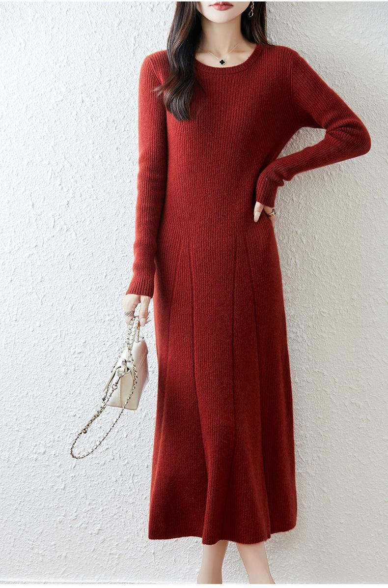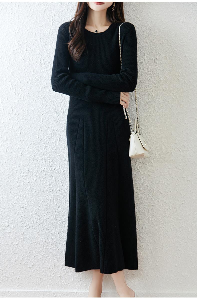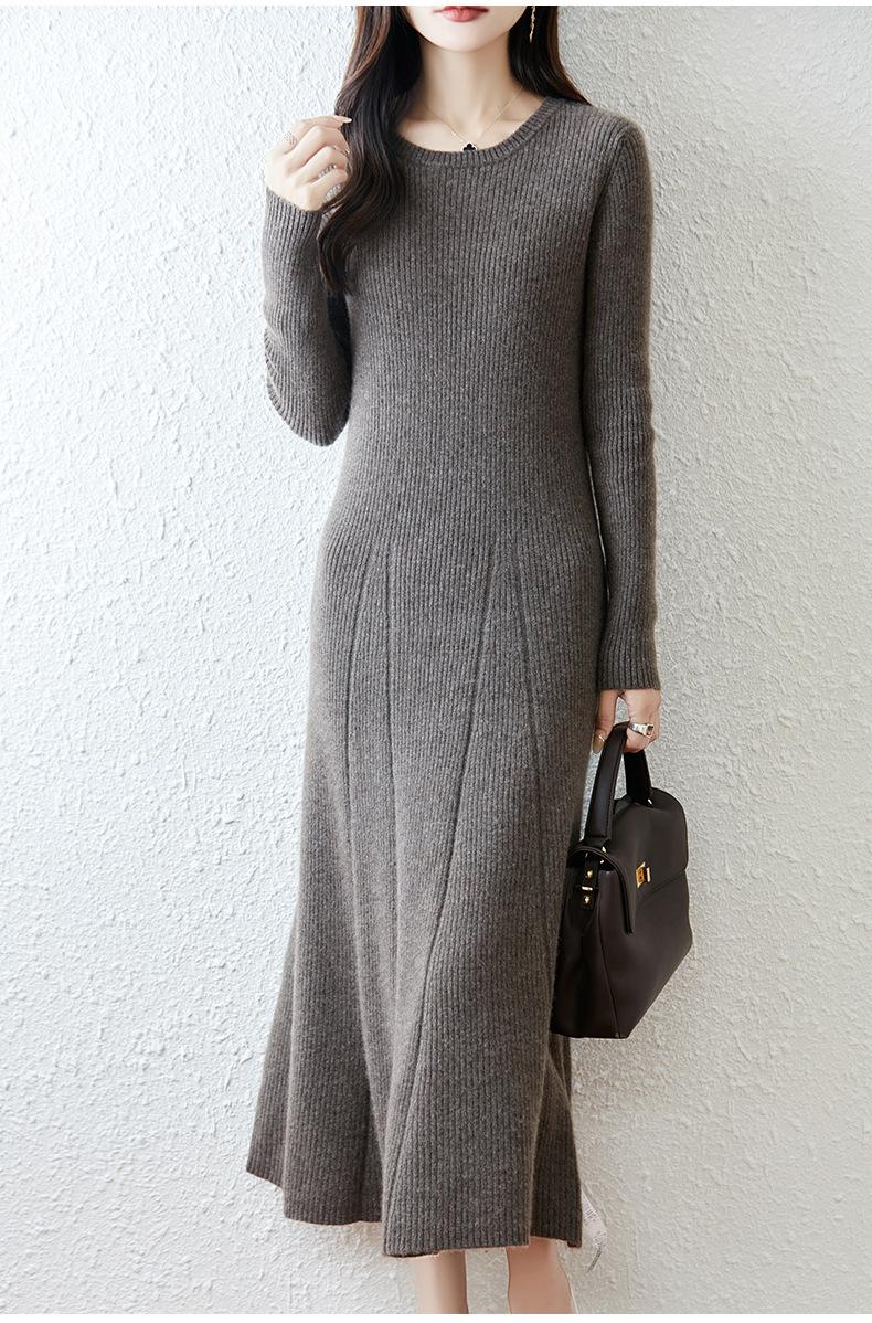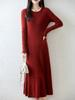 Vestido de Punto de Lana Pura 100% de Cuello Redondo Francés para Mujer 2025 Nuevo Largo por Encima de la Rodilla Adelgazante Vestido de Lana Cashmere