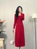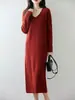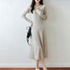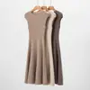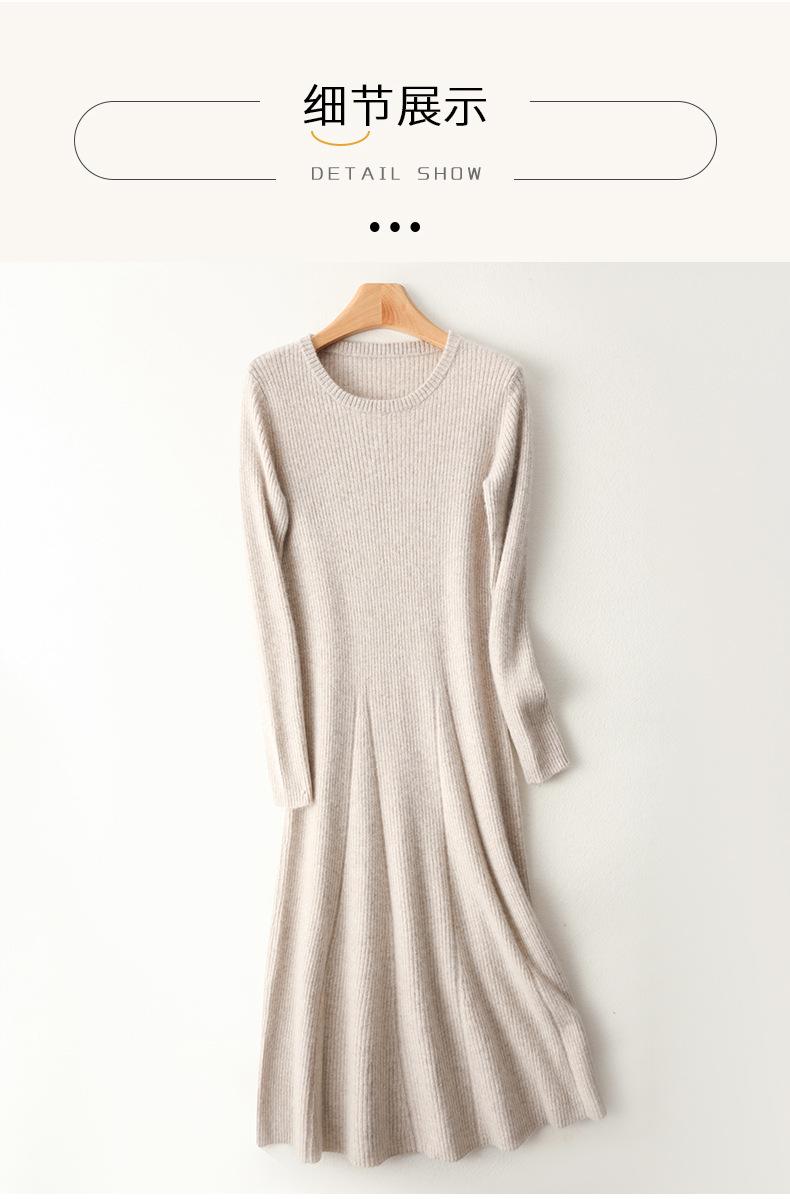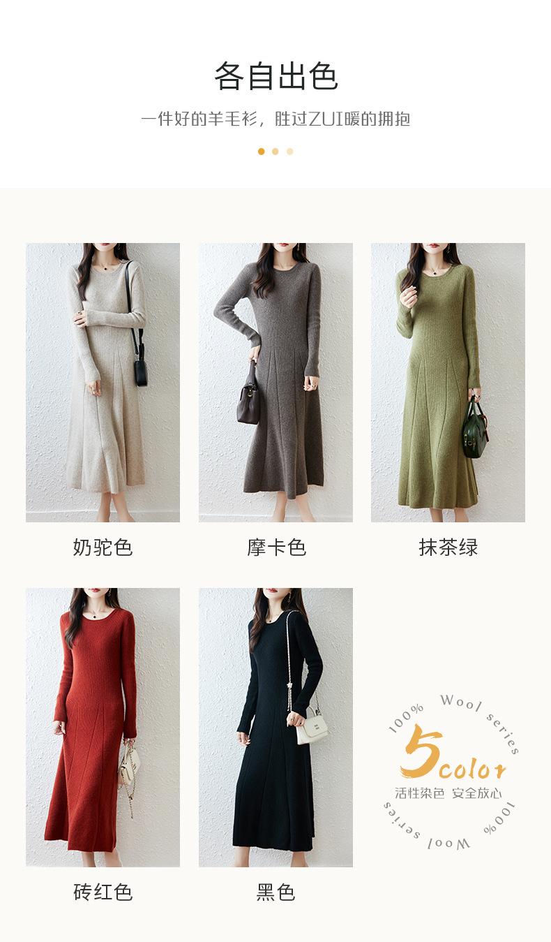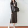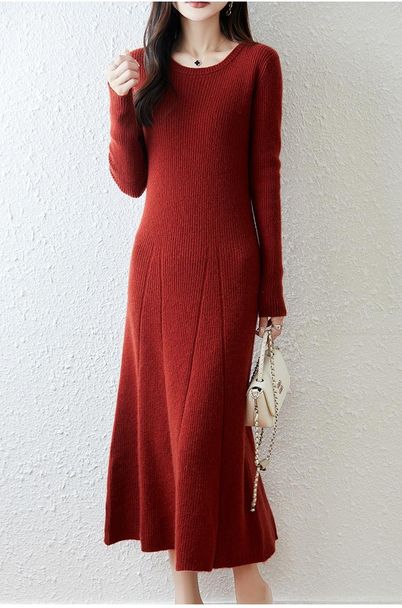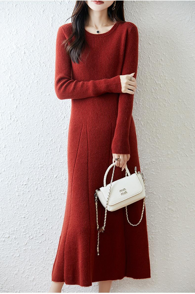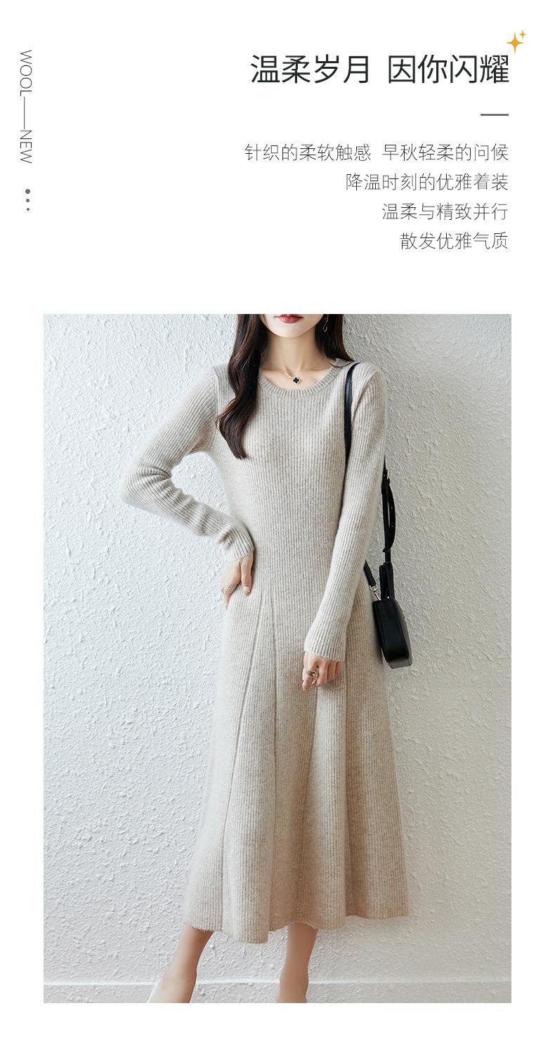Vestido de Punto de Lana Pura 100% de Cuello Redondo Francés para Mujer 2025 Nuevo Largo por Encima de la Rodilla Adelgazante Vestido de Lana Cashmere