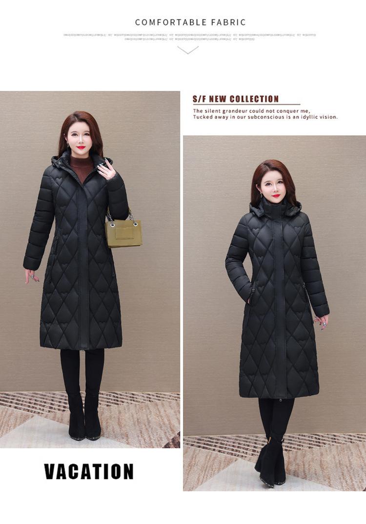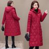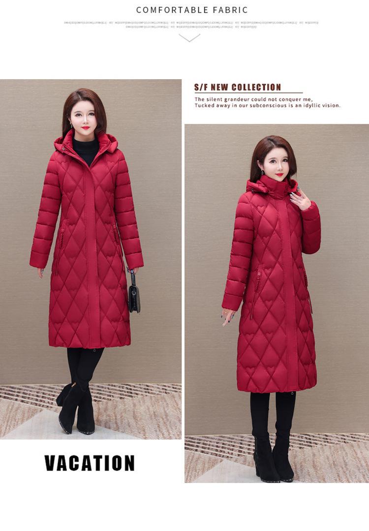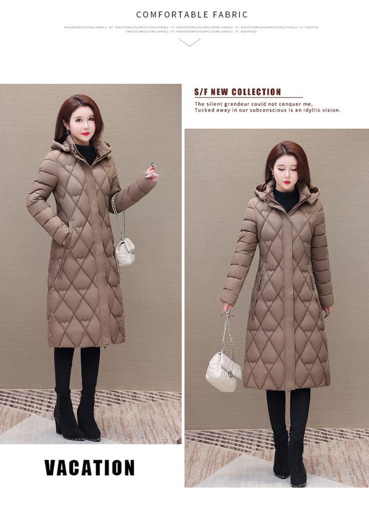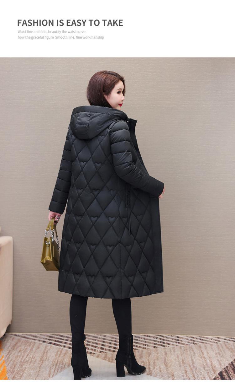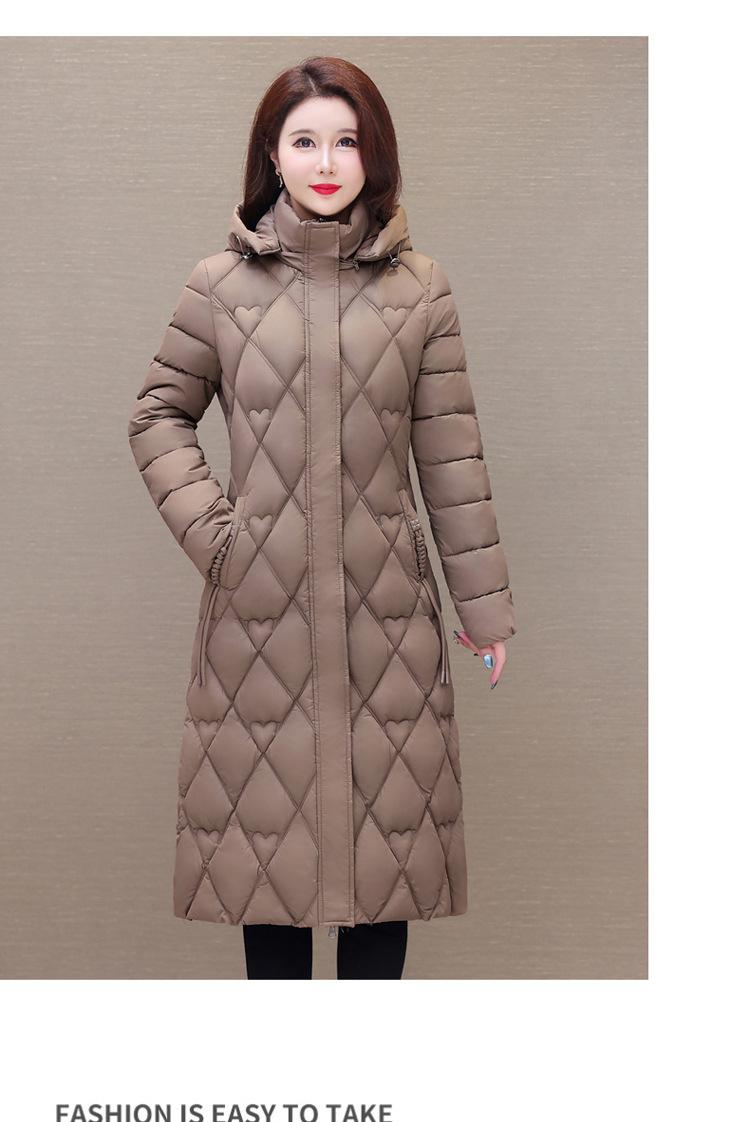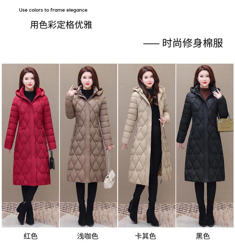 Abrigo de algodón para mujeres de mediana edad y ancianas, estilo largo hasta la rodilla, ligero, talla grande, ropa exterior, atuendo de mamá, invierno, adelgazante, grueso, abrigo de algodón acolchado