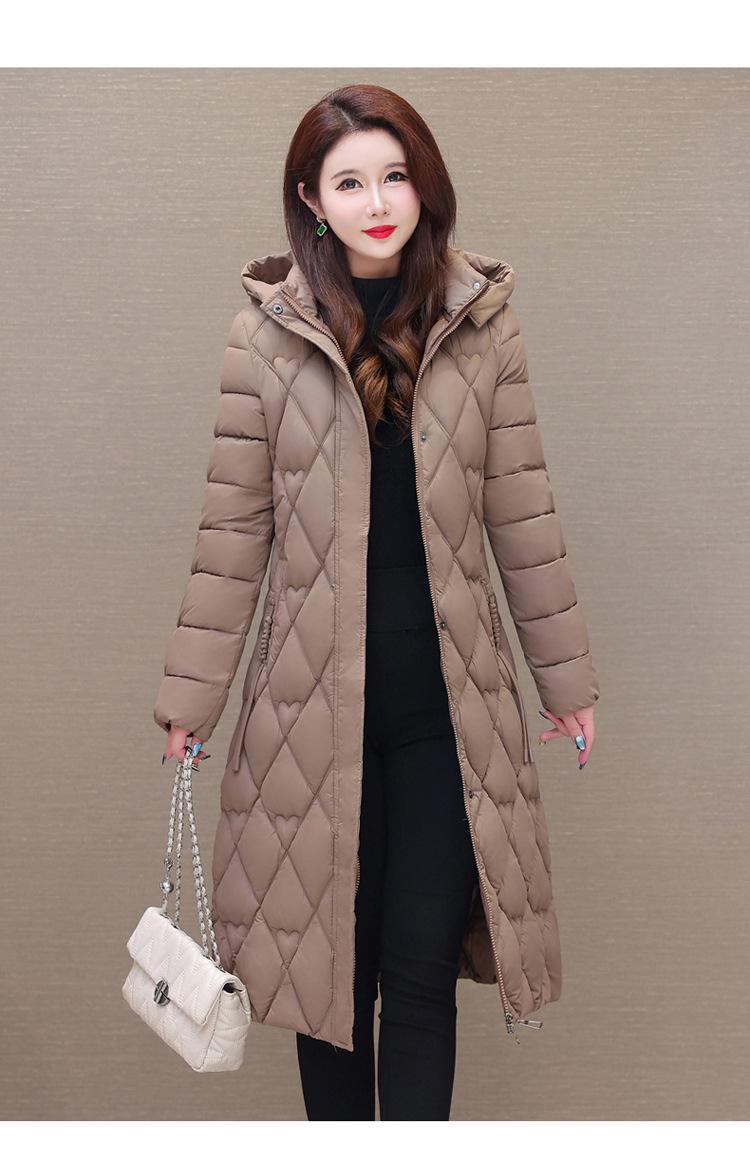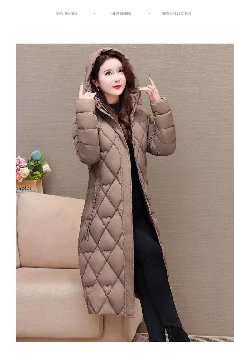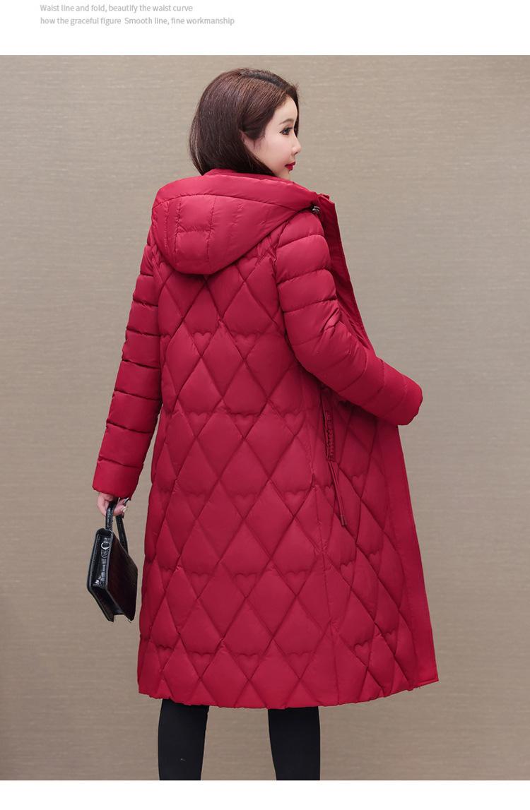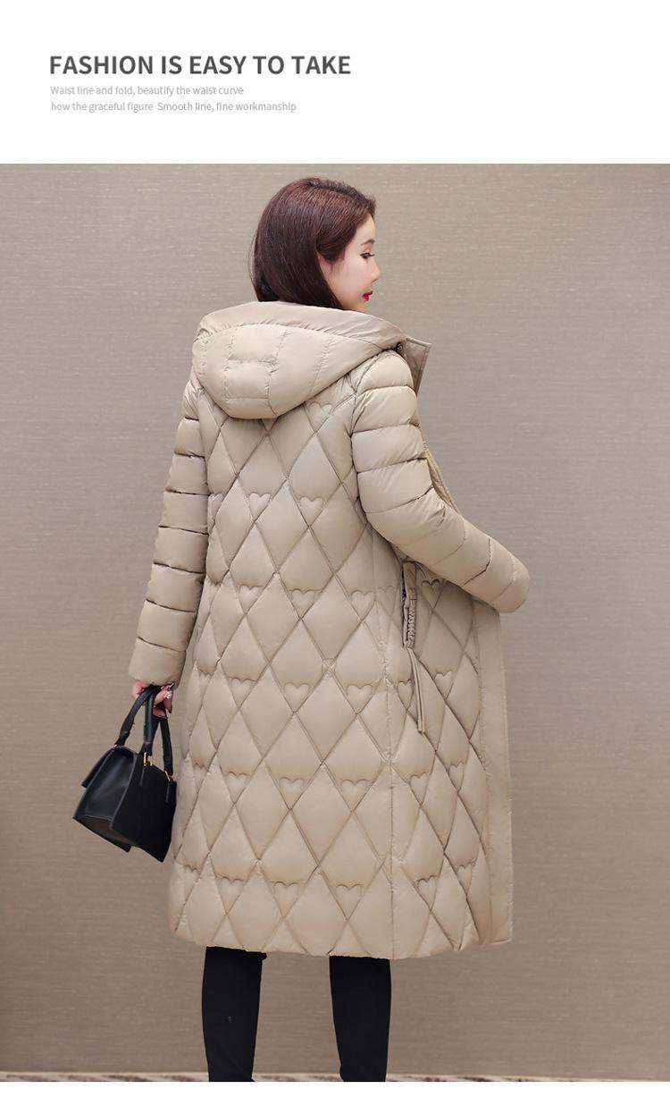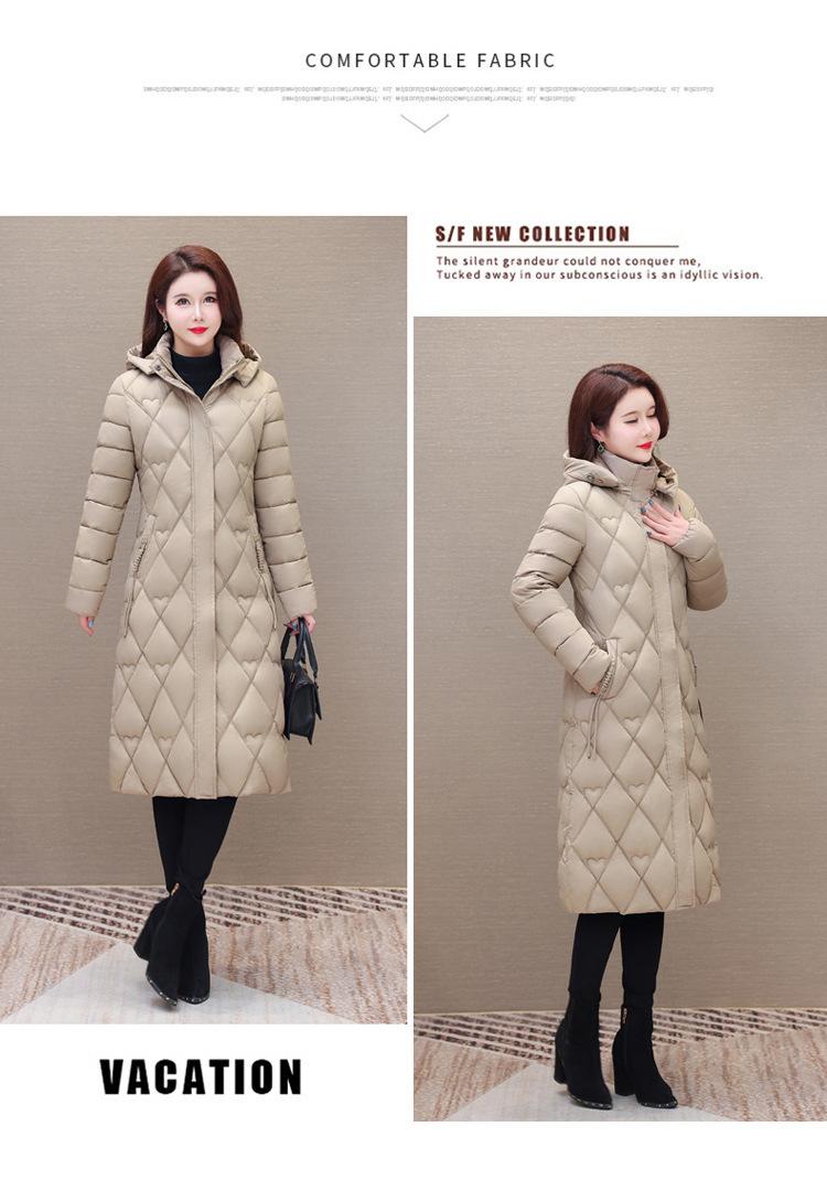 Abrigo de algodón para mujeres de mediana edad y ancianas, estilo largo hasta la rodilla, ligero, talla grande, ropa exterior, atuendo de mamá, invierno, adelgazante, grueso, abrigo de algodón acolchado