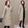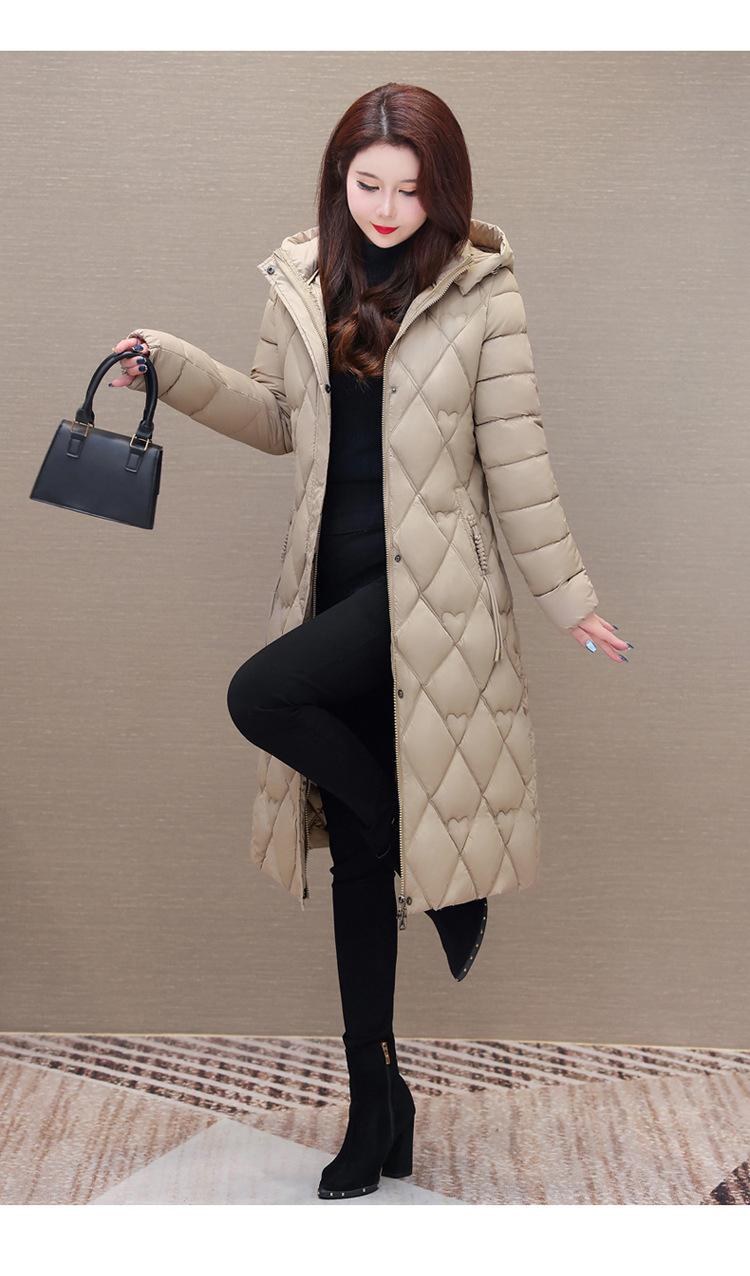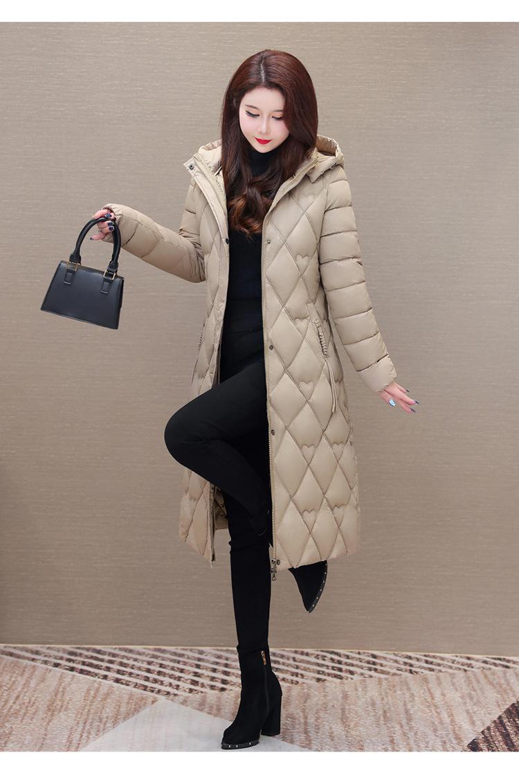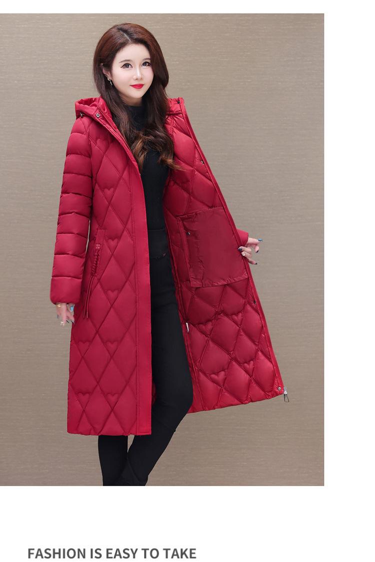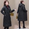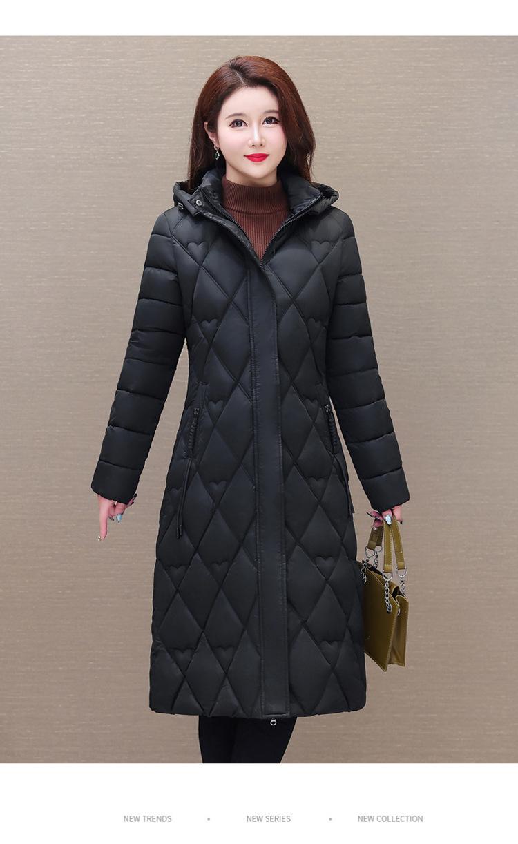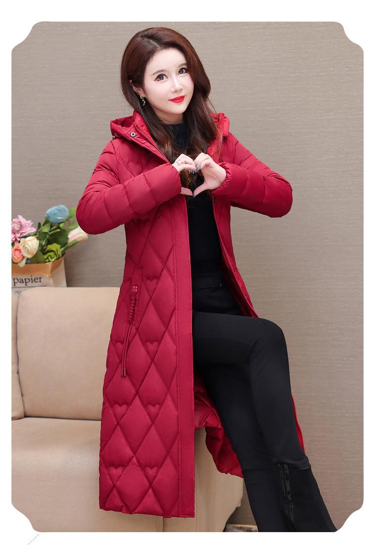 Abrigo de algodón para mujeres de mediana edad y ancianas, estilo largo hasta la rodilla, ligero, talla grande, ropa exterior, atuendo de mamá, invierno, adelgazante, grueso, abrigo de algodón acolchado