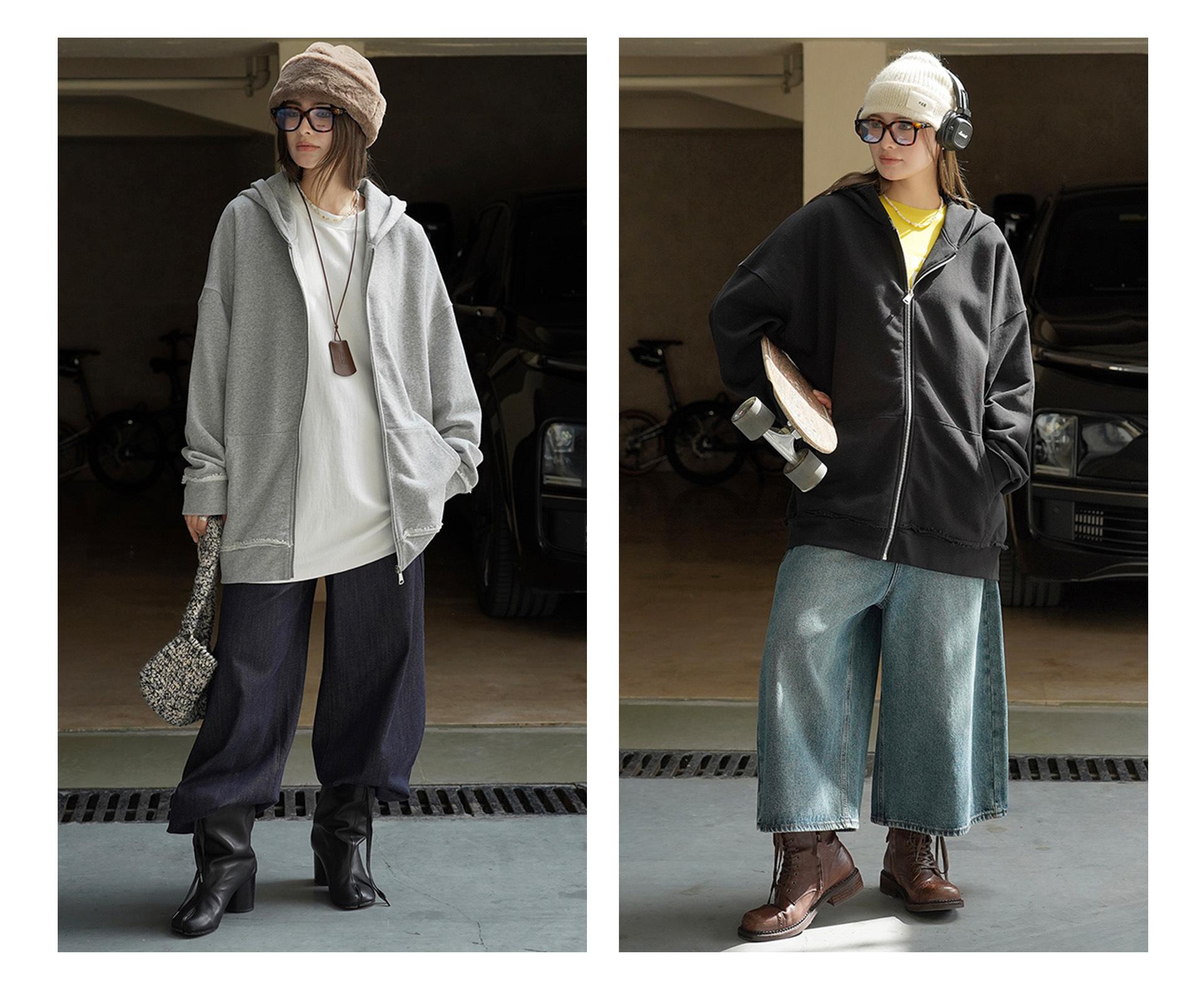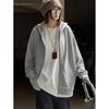 Principios de Otoño Nuevo Diseño Americano Urbano Sudadera con Capucha de Borde Crudo Desgastado Top Suelto Oversize Mujer