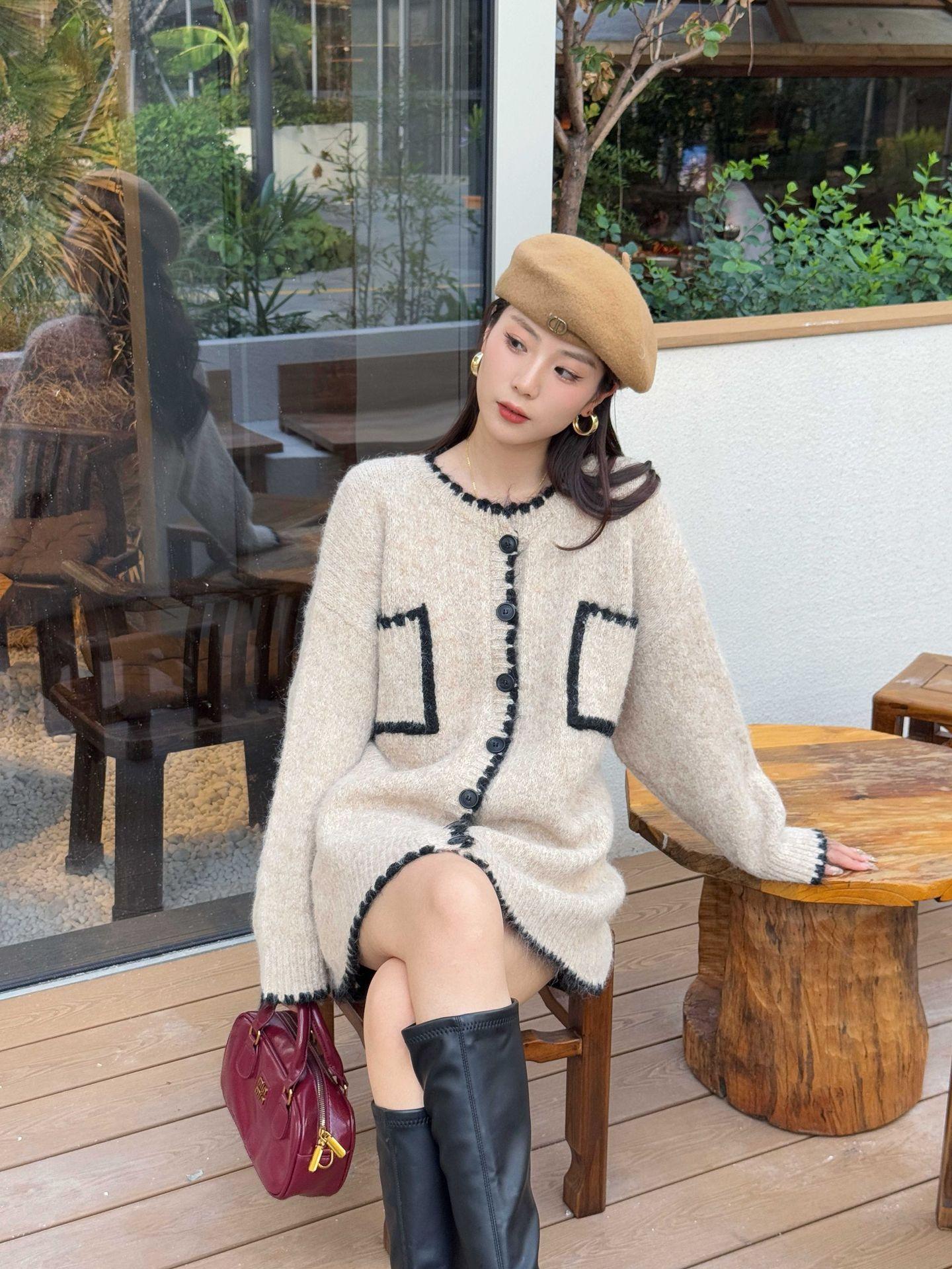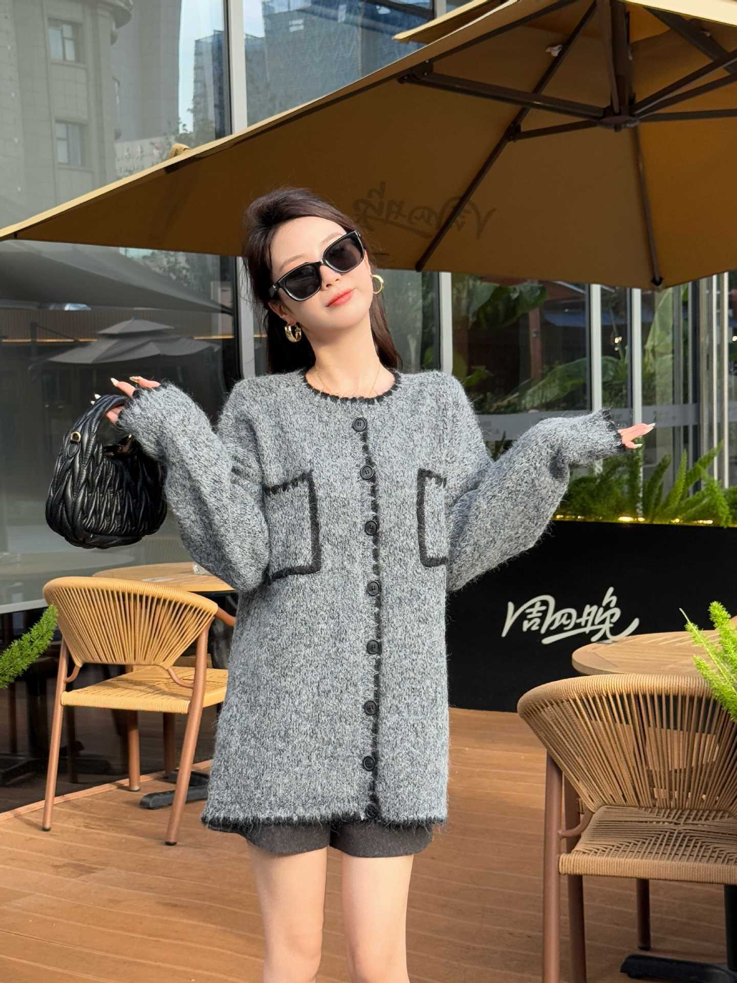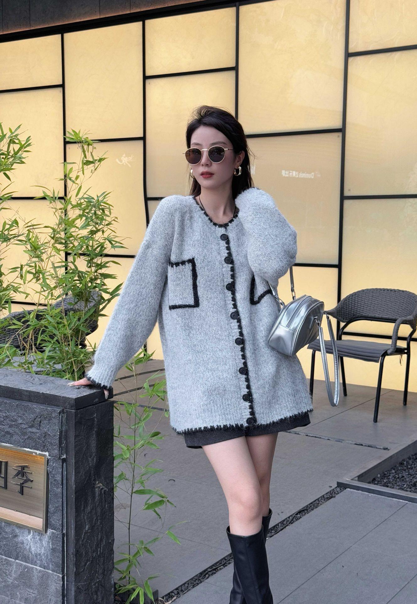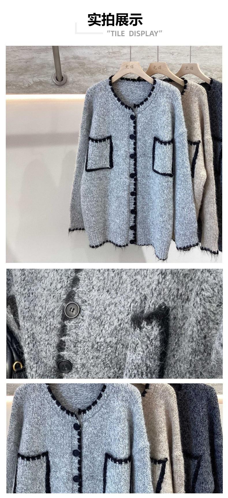 Nuevo Cárdigan de Punto Holgado y Perezoso de Comercio Exterior Transfronterizo Otoño/Invierno para Mujer, Estilo Coreano, Viento Ligeramente Fragante, Temperamento, Adelgazante, Abrigo Suéter