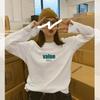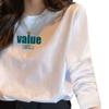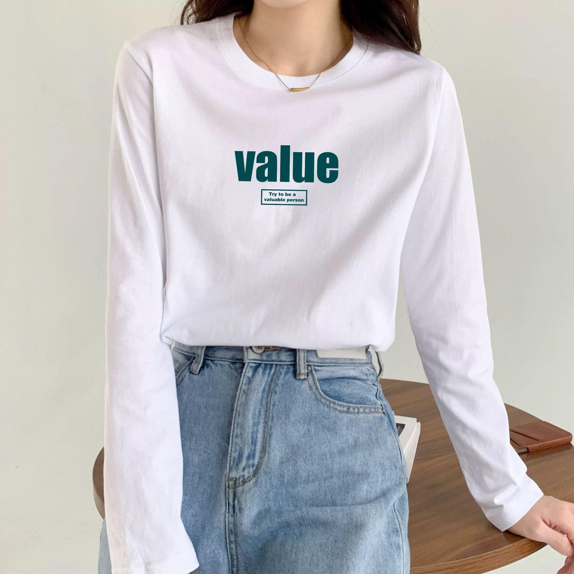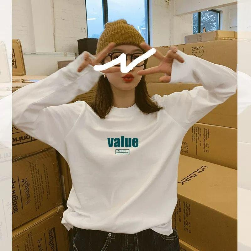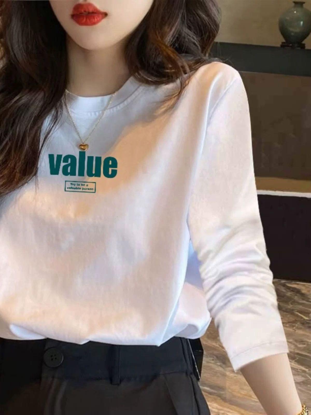Camiseta Blanca de Manga Larga para Mujer para Primavera/Otoño/Invierno, Capa Base de Algodón Puro de Terciopelo Alemán, Holgada, Sencilla, Top Versátil