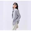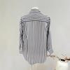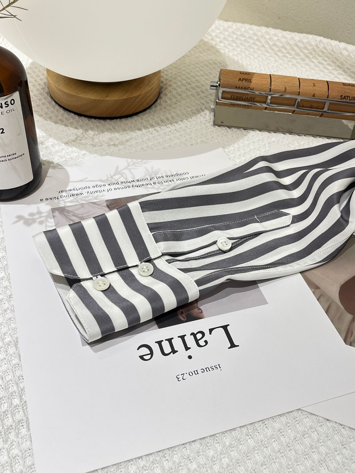 Camisa 100% Seda Mujer 2025 Primavera y Verano Nueva Camisa de Manga Larga de Crepé de China Estampada de Seda de Morera a Rayas Blancas y Negras