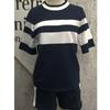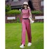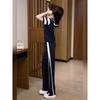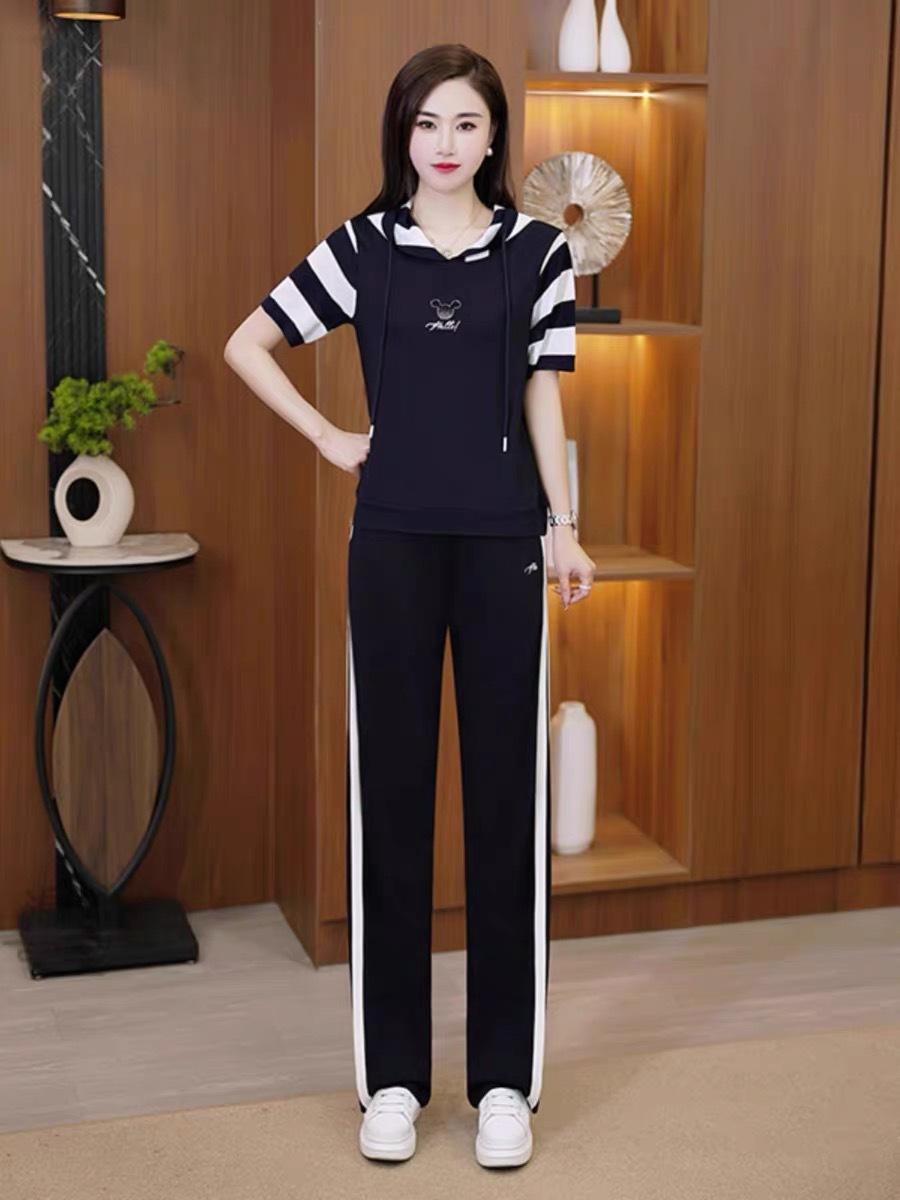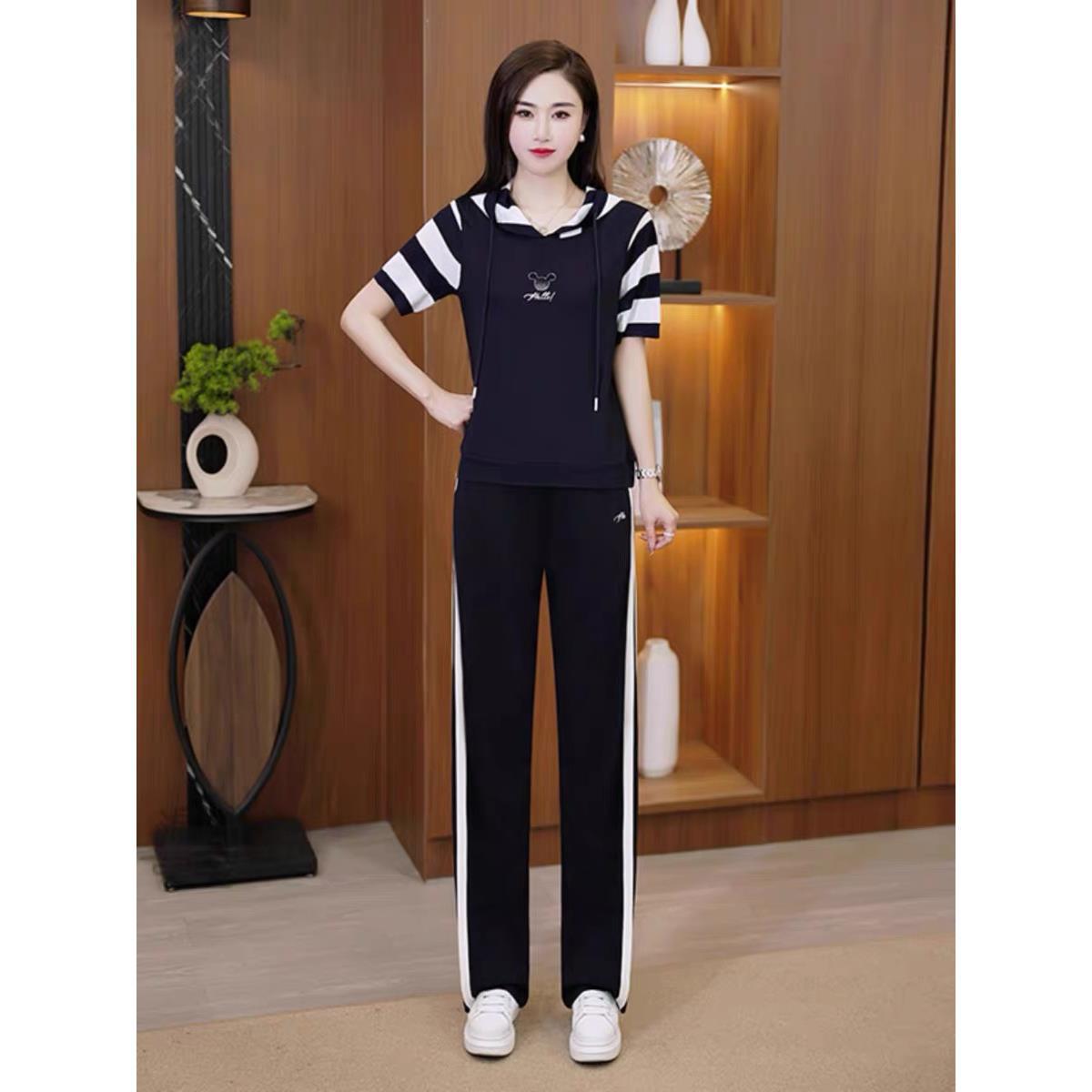 Traje Deportivo Casual de Este Año 2025 Nuevo Verano Look Adelgazante que Reduce la Edad Azul Cuello Redondo Manga Corta Dos Piezas Traje de Mujer