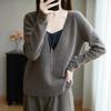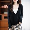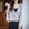 25 Otoño/Invierno Nuevo Suéter de Punto de Cachemira para Mujer con Cuello en V Suave y Delicado con la Piel 100% Lana Pura