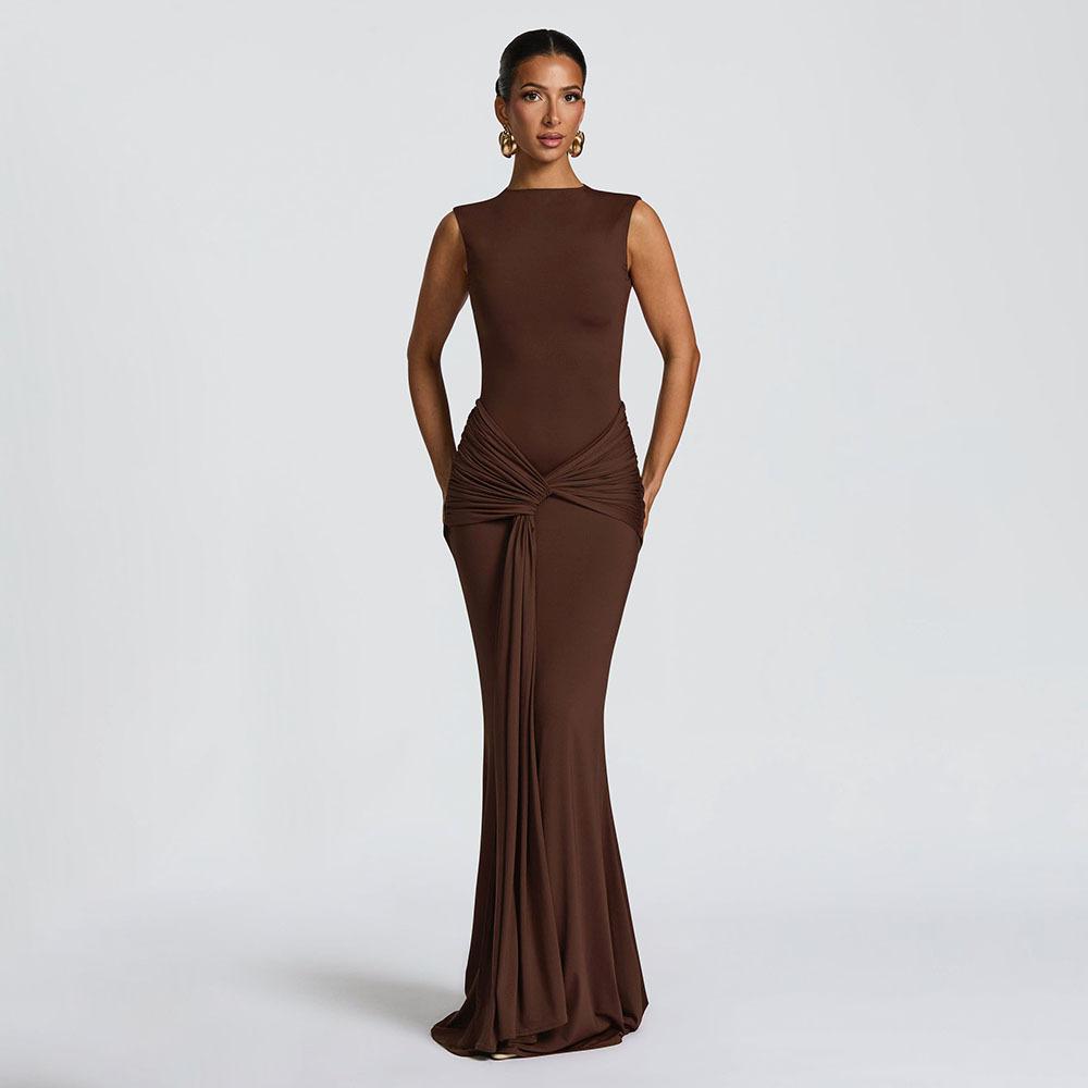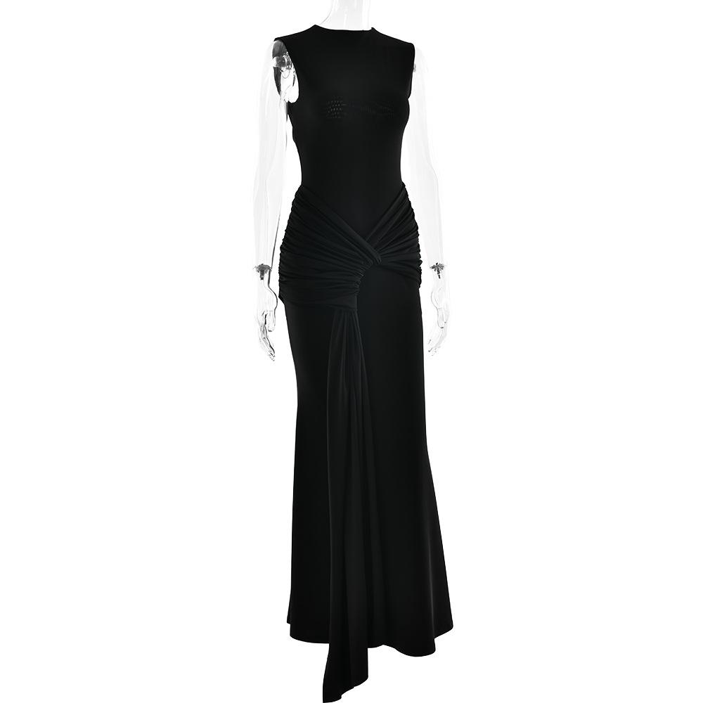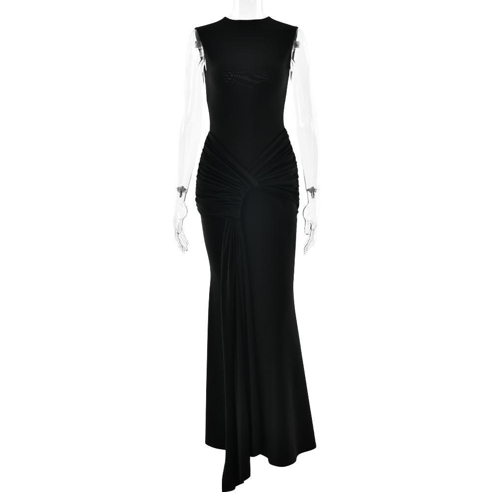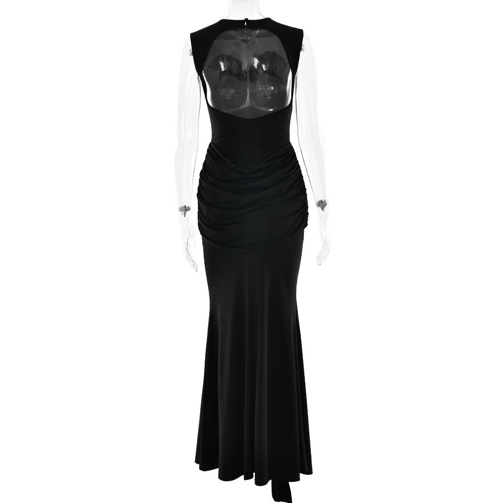 2025 Otoño Nuevo Moda Europea y Americana Transfronteriza para Mujer Color Sólido Cuello Redondo Sin Mangas Atado Ajustado Ceñido a las Caderas Vestido sin Espalda