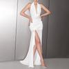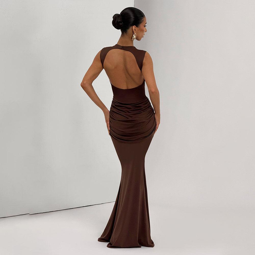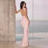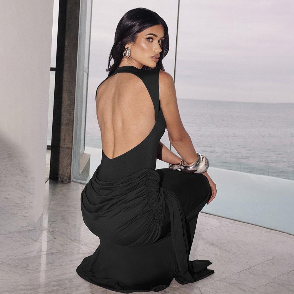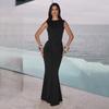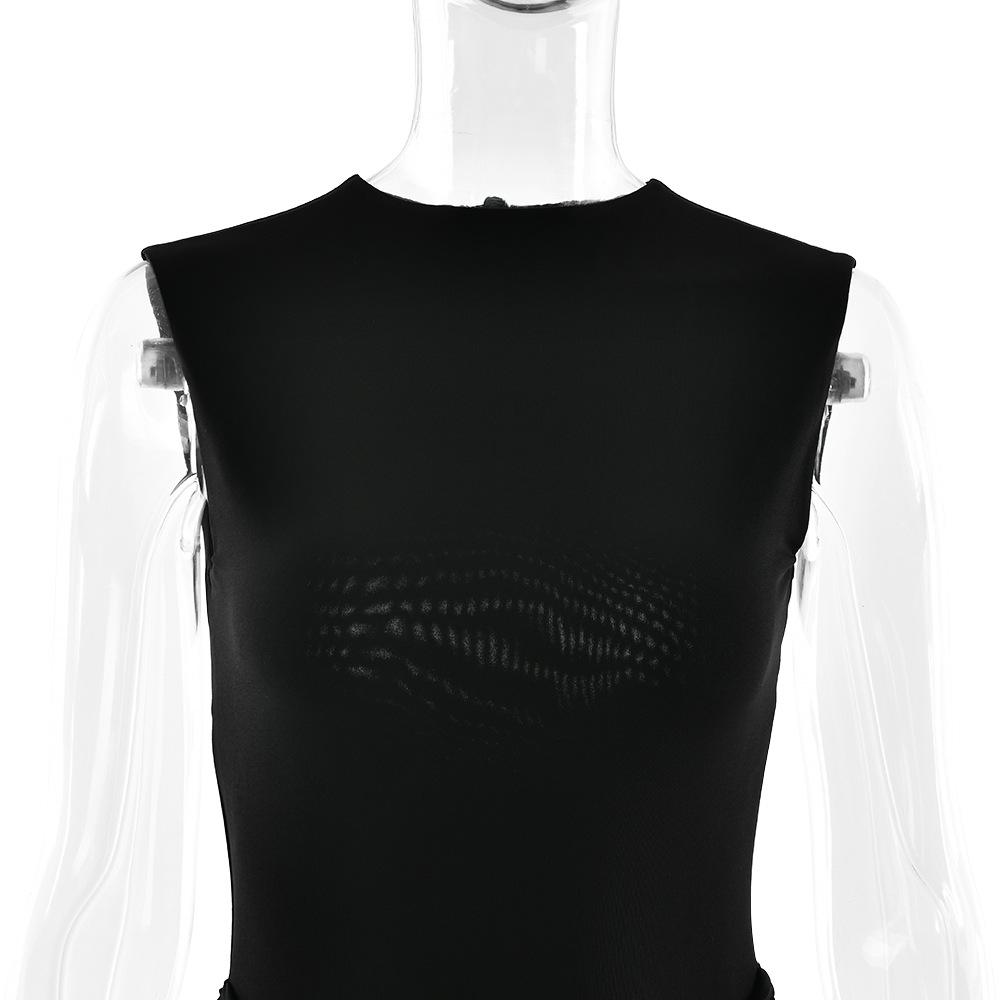 2025 Otoño Nuevo Moda Europea y Americana Transfronteriza para Mujer Color Sólido Cuello Redondo Sin Mangas Atado Ajustado Ceñido a las Caderas Vestido sin Espalda