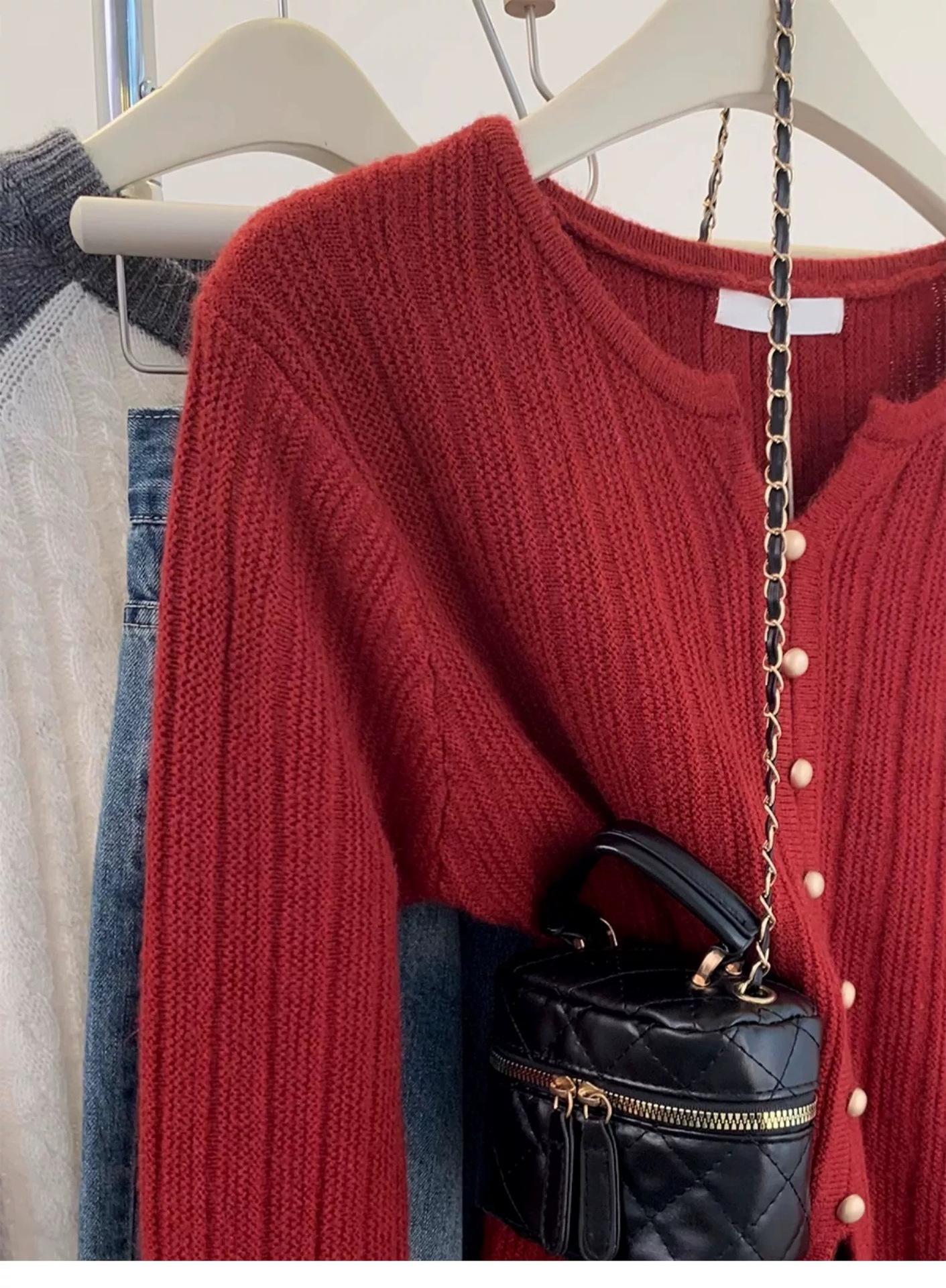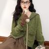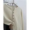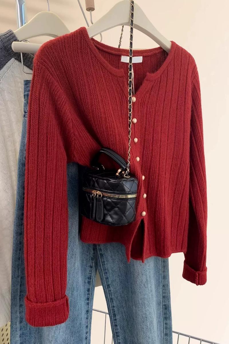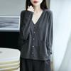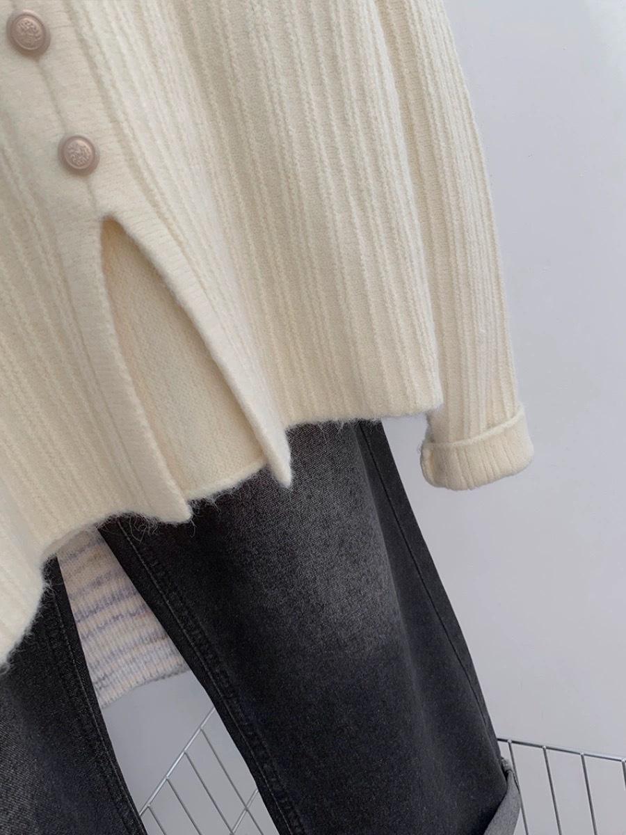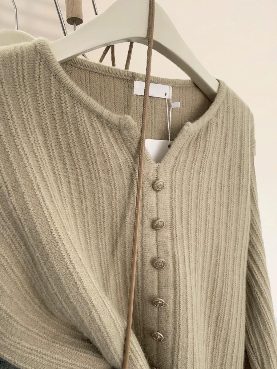 Cárdigan de Lana con Cuello en V Color Avena para Mujer Otoño 2025 Nuevo Capa Base Interior Estilo Relajado Abertura Tejido de Punto Suelto