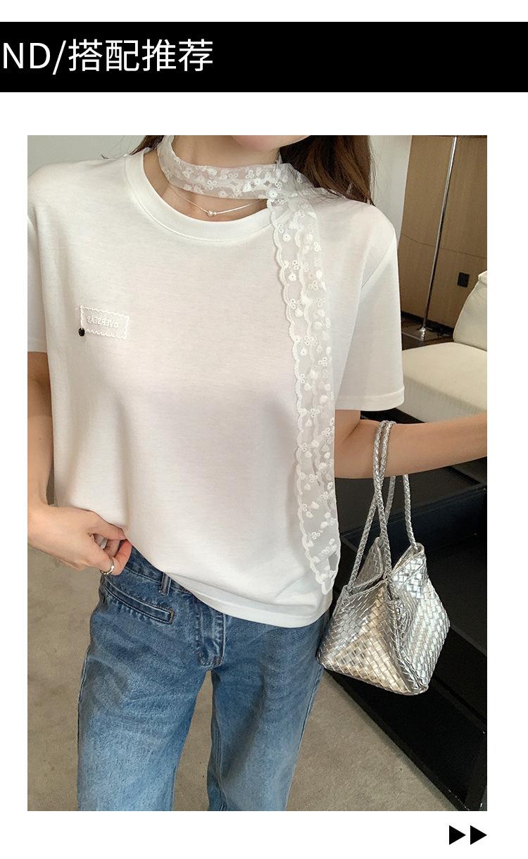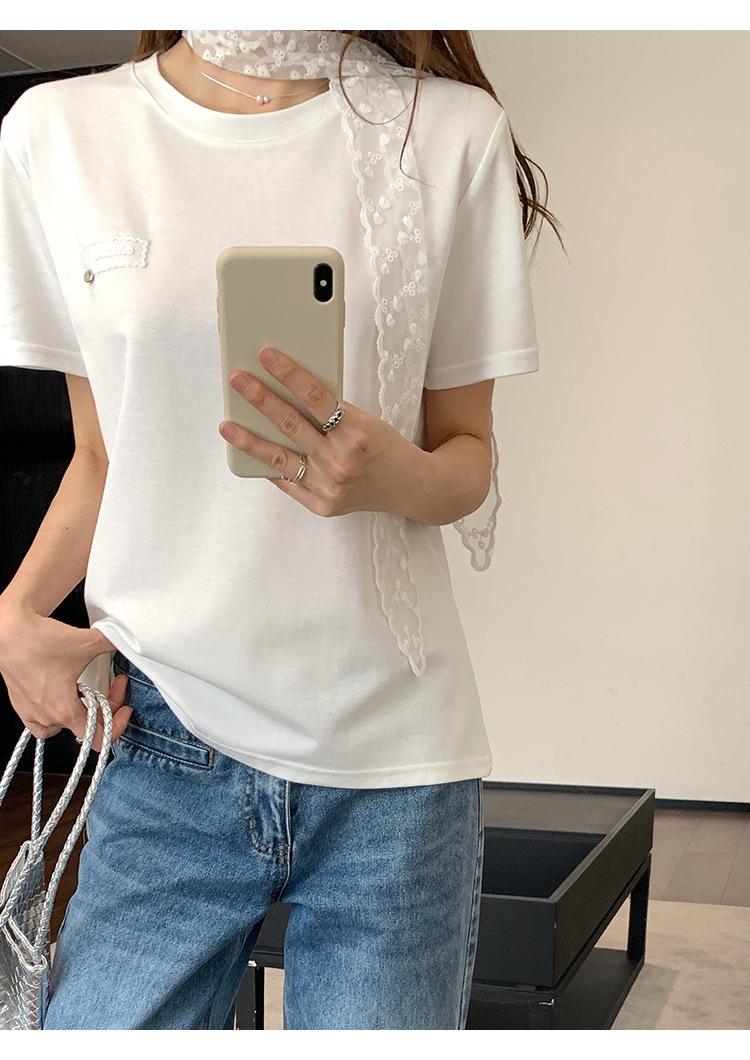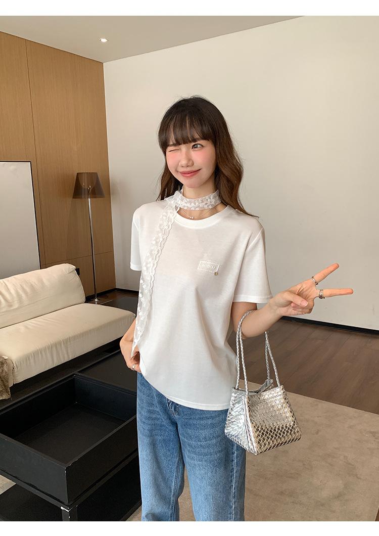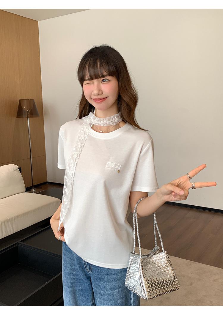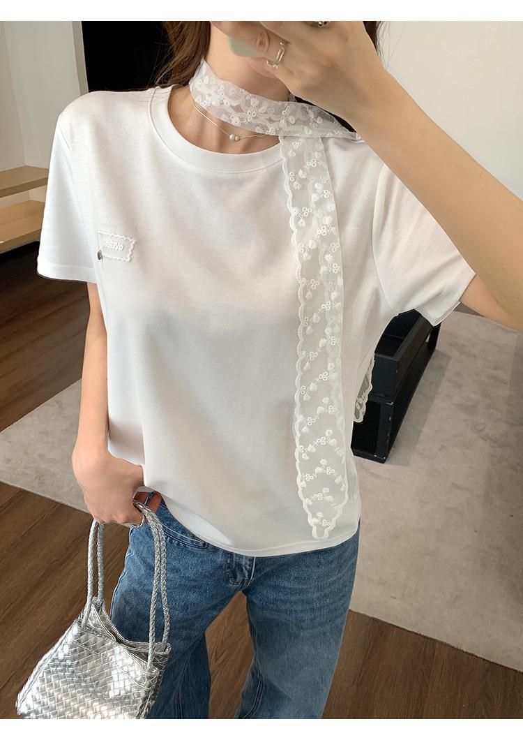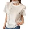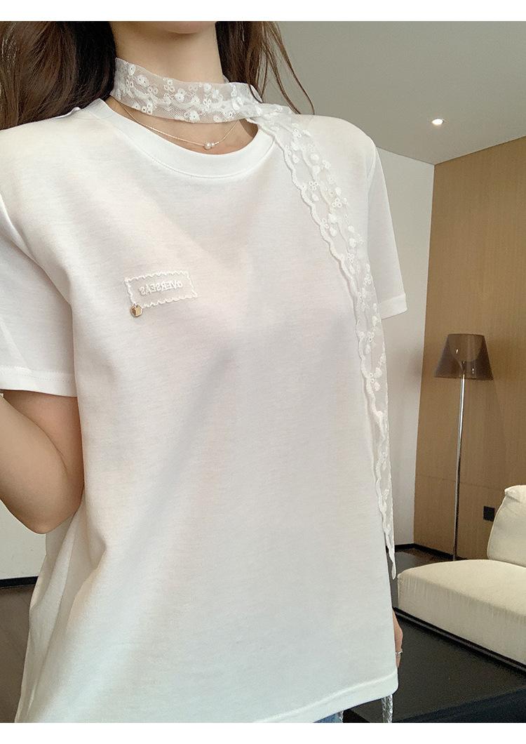 Camiseta de Encaje Blanco con Tirantes para el Hombro de Manga Corta para Mujer Verano 2025 Nuevo Diseño Sensación Holgada Manga Media Top