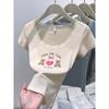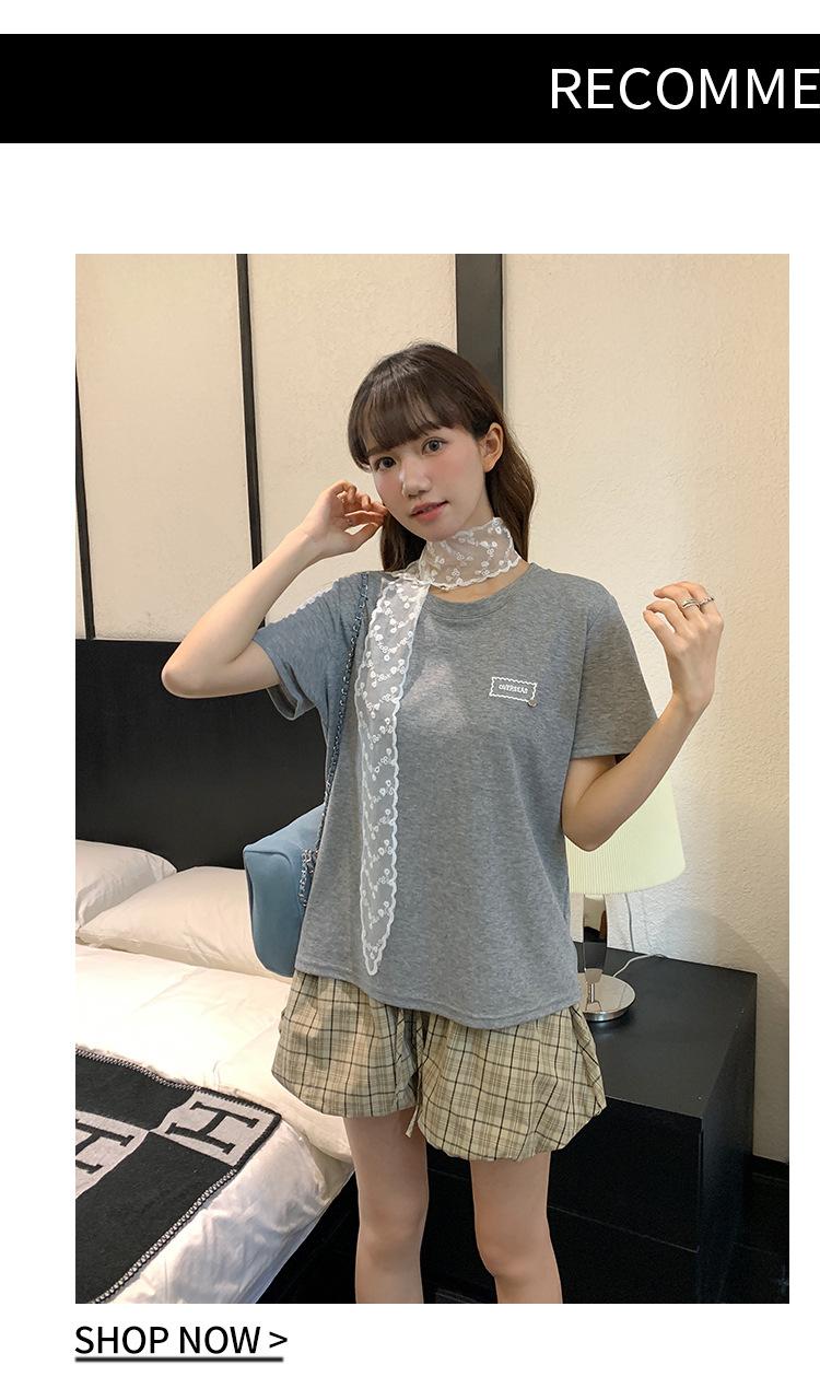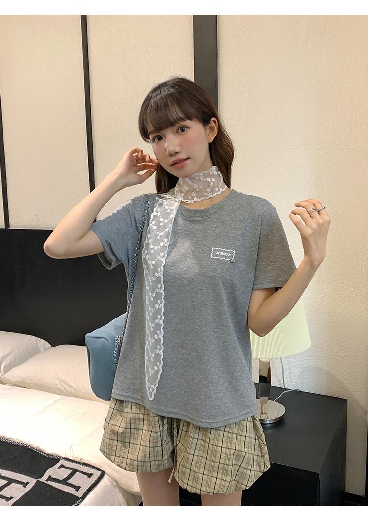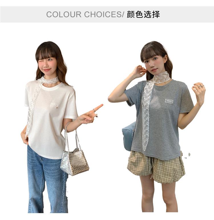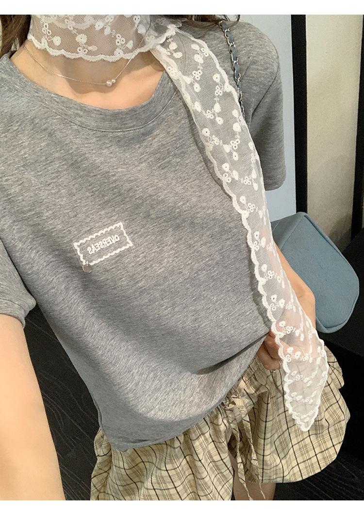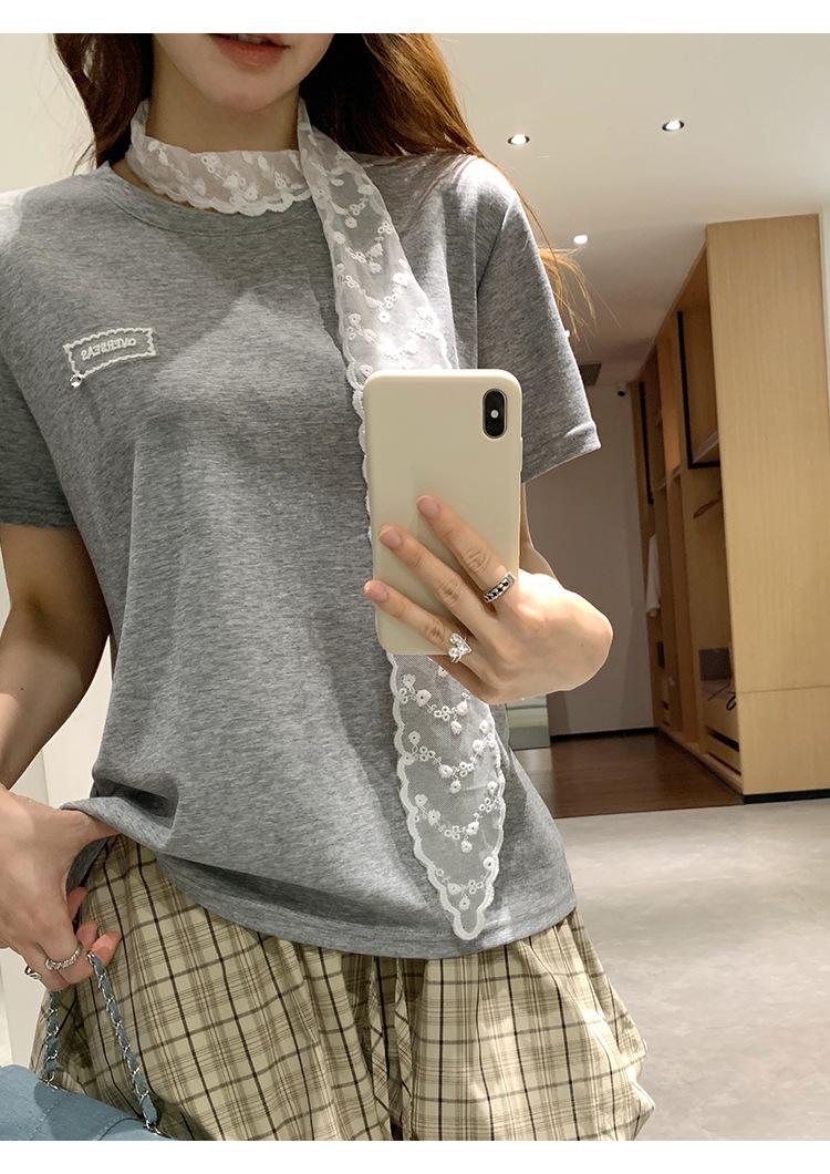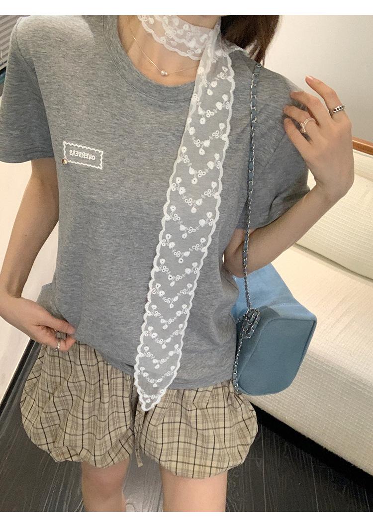 Camiseta de Encaje Blanco con Tirantes para el Hombro de Manga Corta para Mujer Verano 2025 Nuevo Diseño Sensación Holgada Manga Media Top