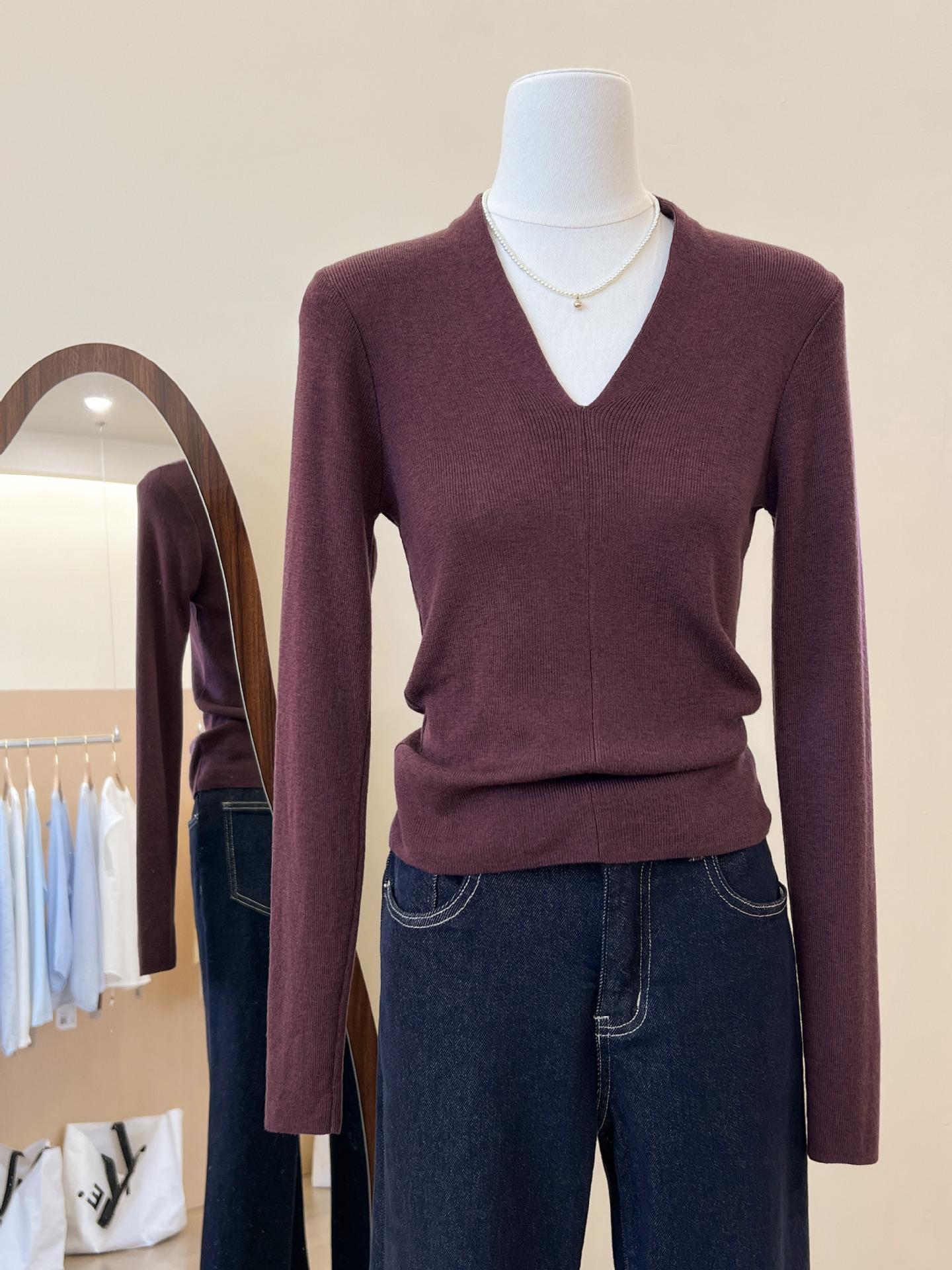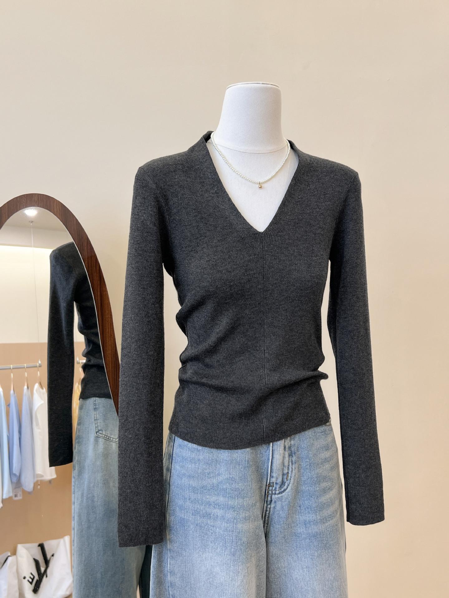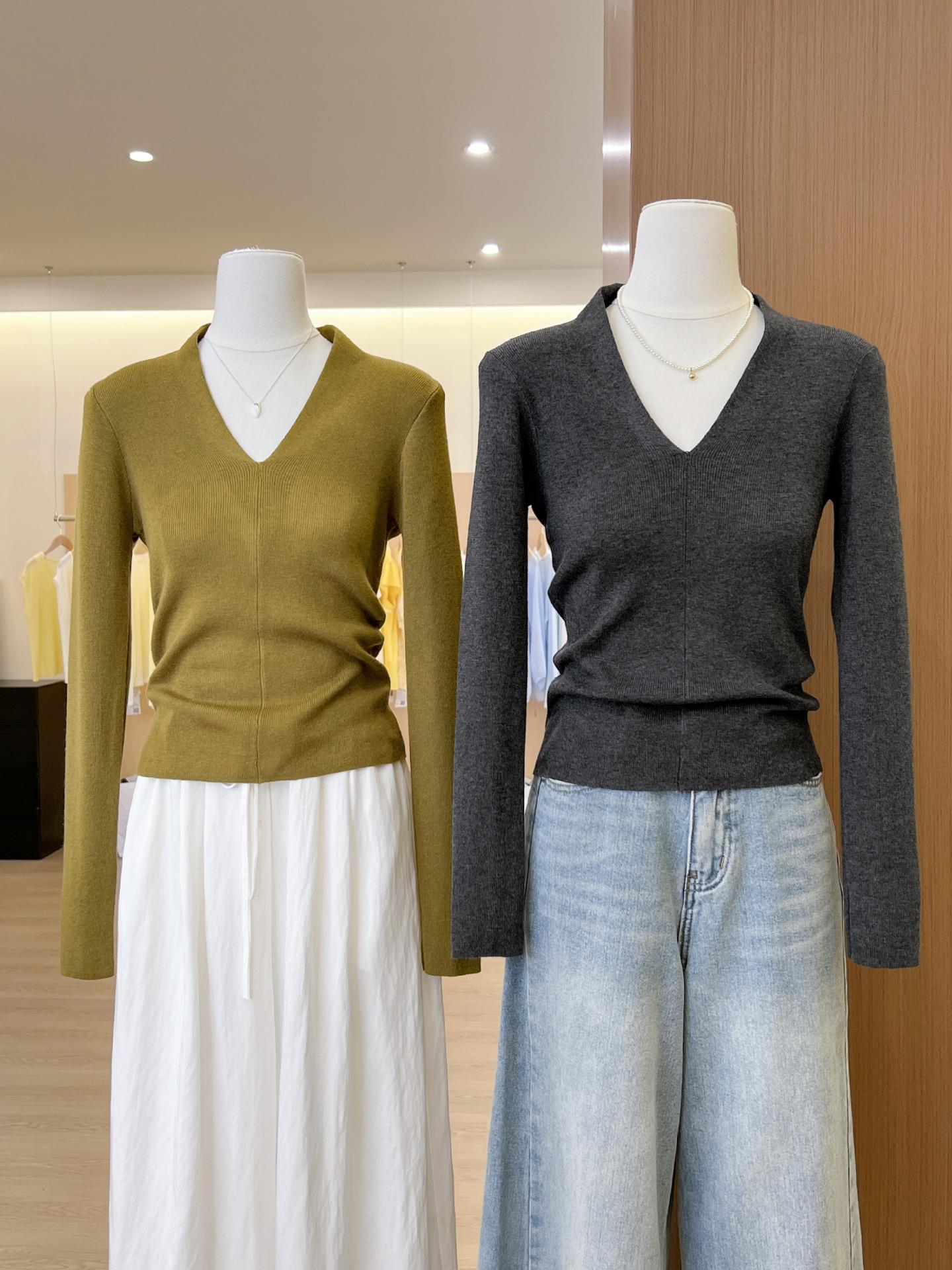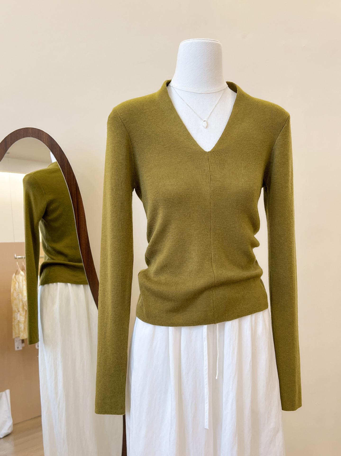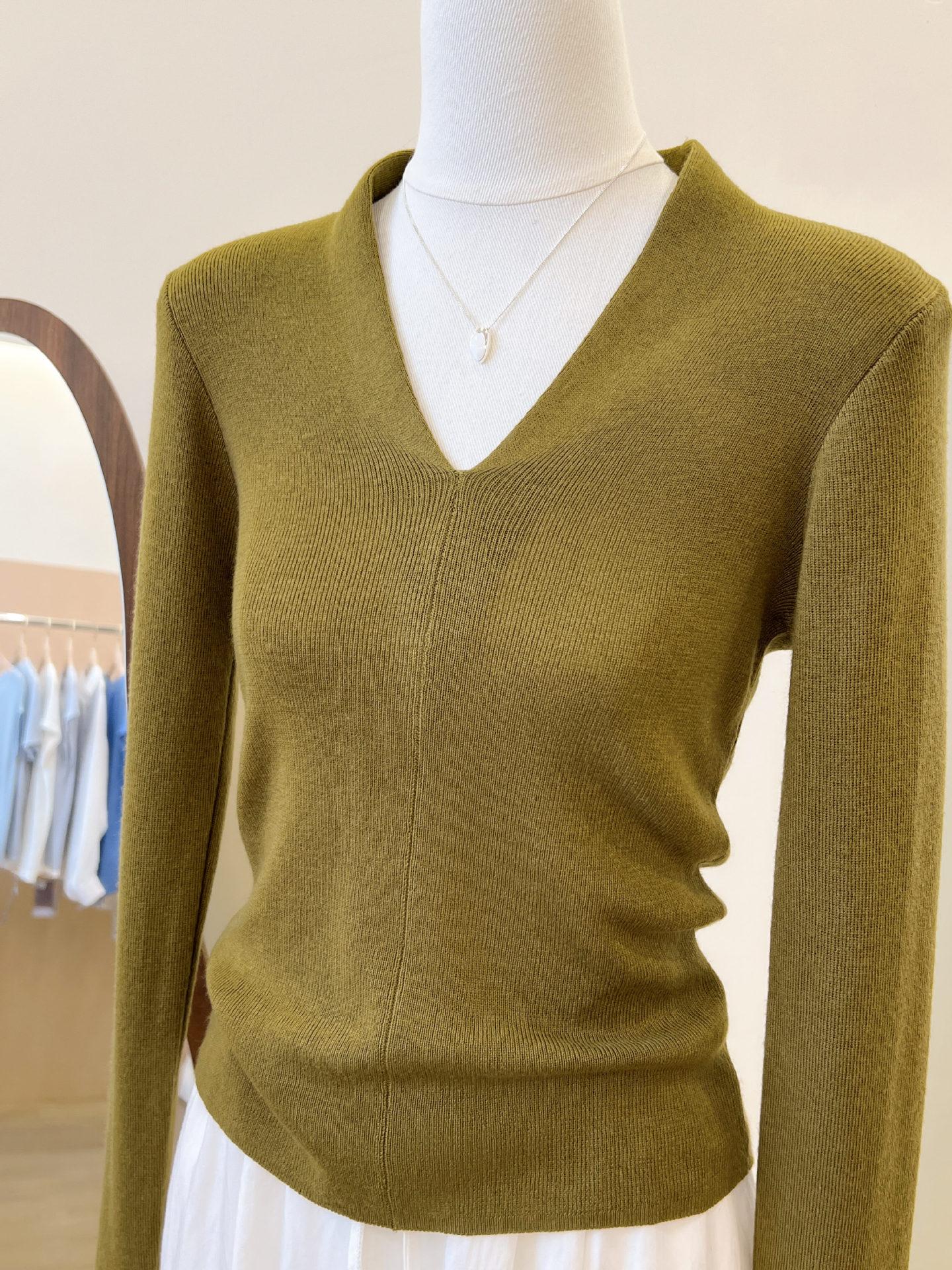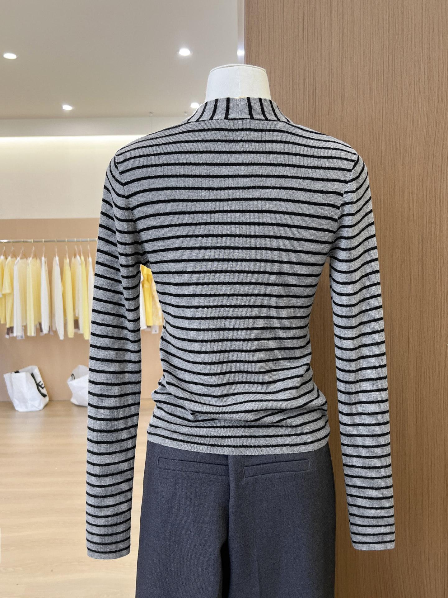 Playera de Punto de Manga Larga a Rayas con Bloque de Color para Mujer 2025 Primavera y Otoño Nueva Interior Cuello en V Adelgazante Camiseta Básica Top Marea